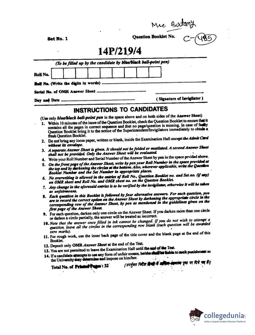 BHU PET 2014 M.SC BOTANY Question paper with answer key pdf is available for download. The exam was successfully organized by Banaras Hindu University (BHU). The question paper comprised a total of 150 questions.