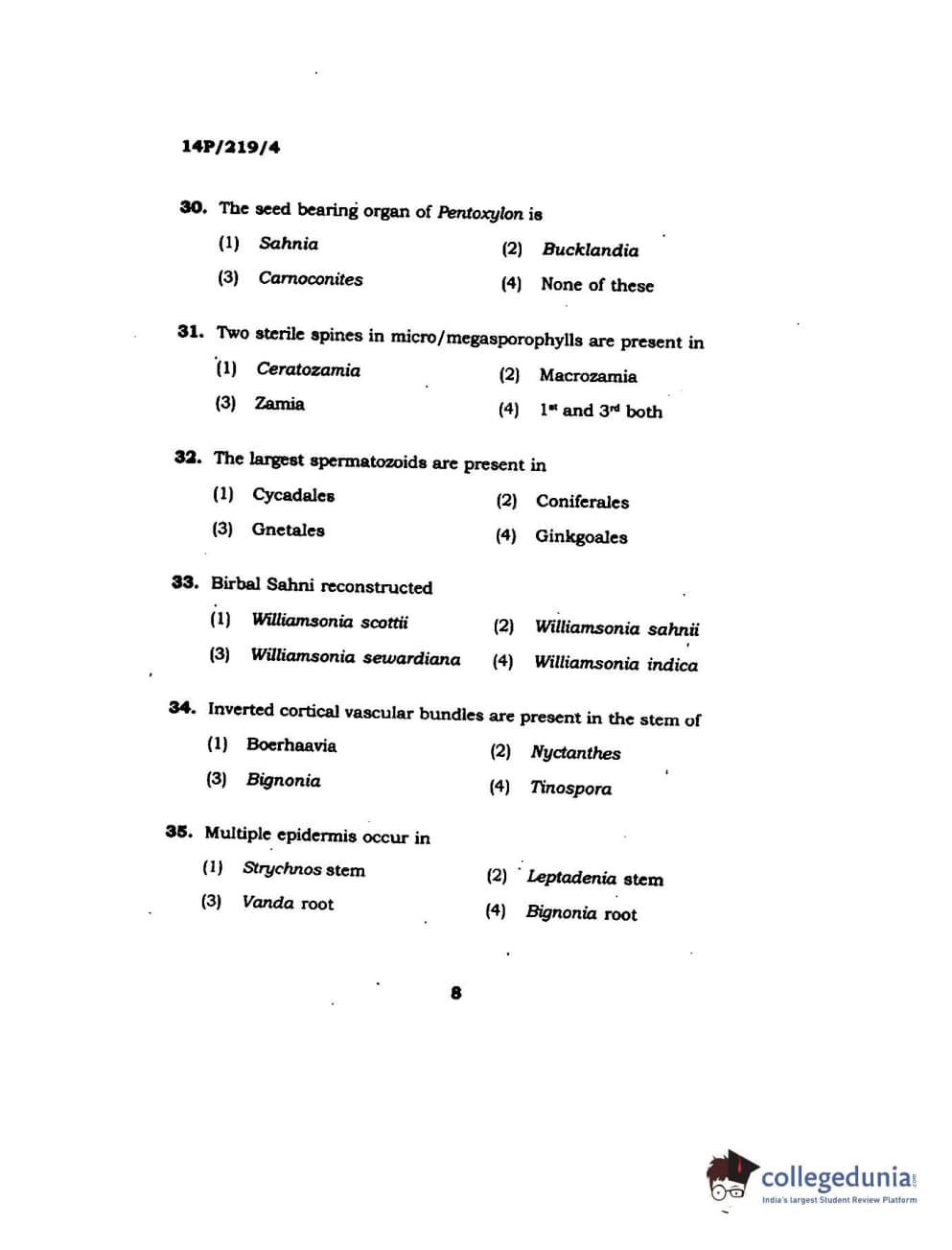 BHU PET 2014 M.SC BOTANY Question Paper with Answer Key PDFs