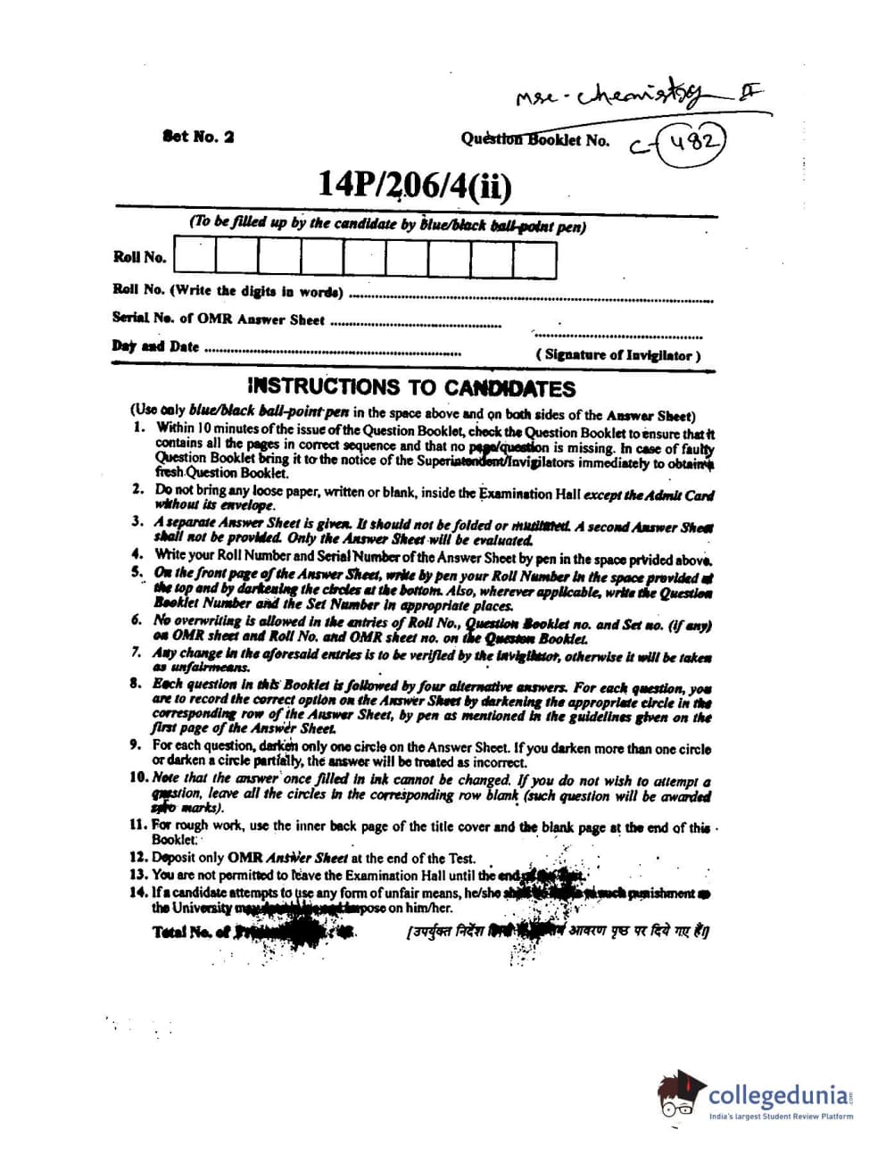 BHU PET 2014 M.Sc Chemistry Set-2 Question paper with answer key pdf is available for download. The exam was successfully organized by Banaras Hindu University (BHU). The question paper comprised a total of 150 questions.
