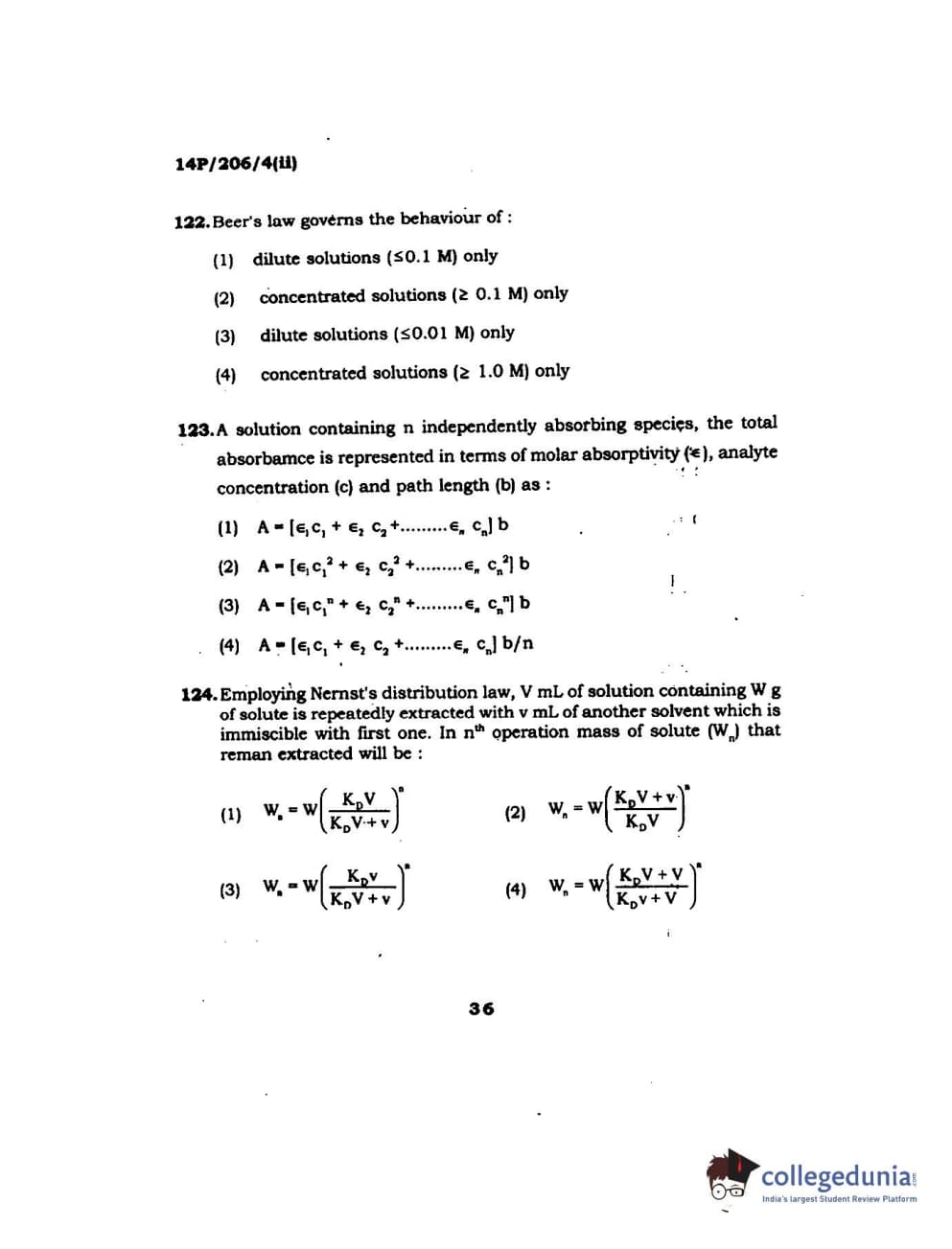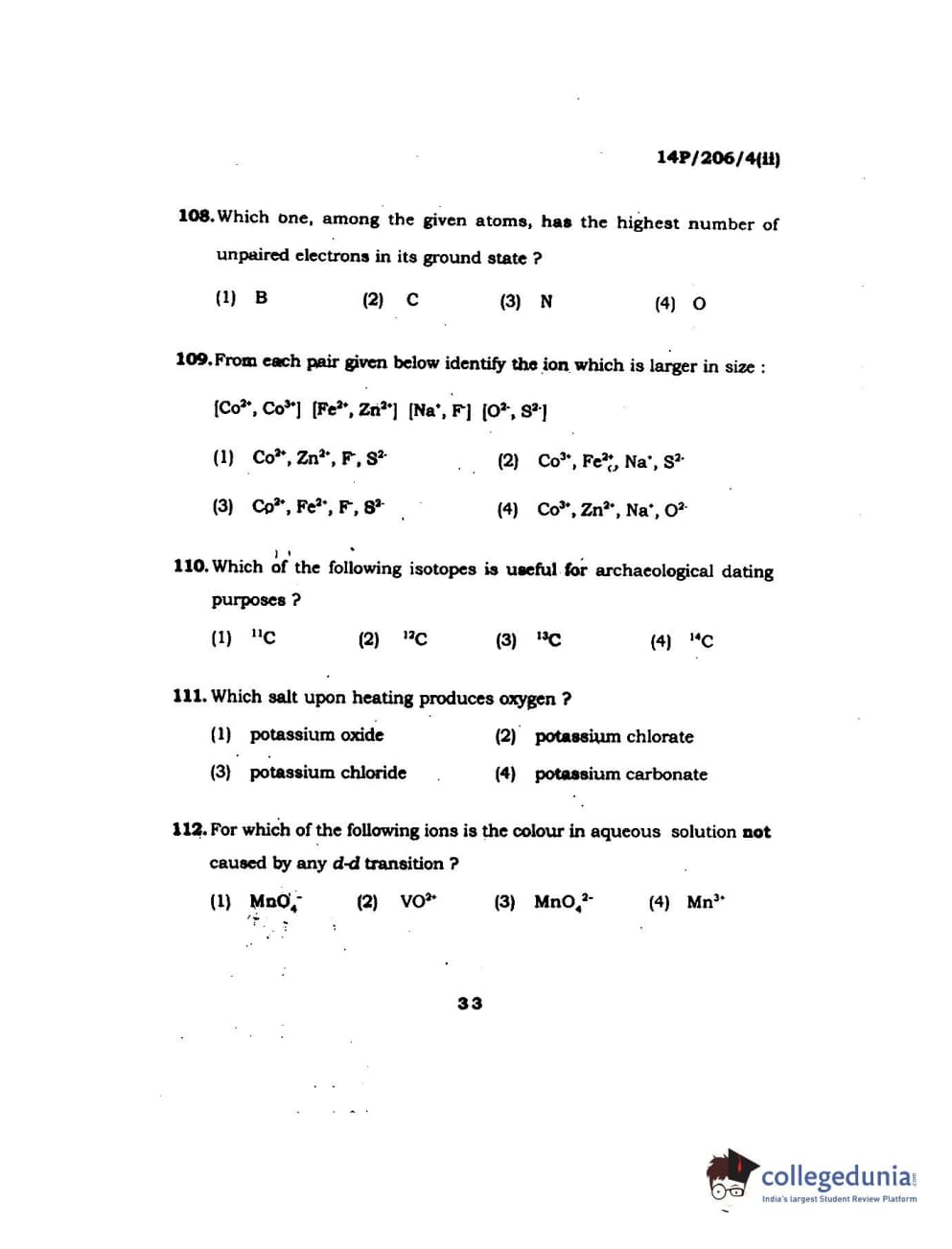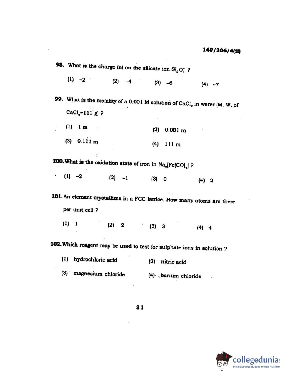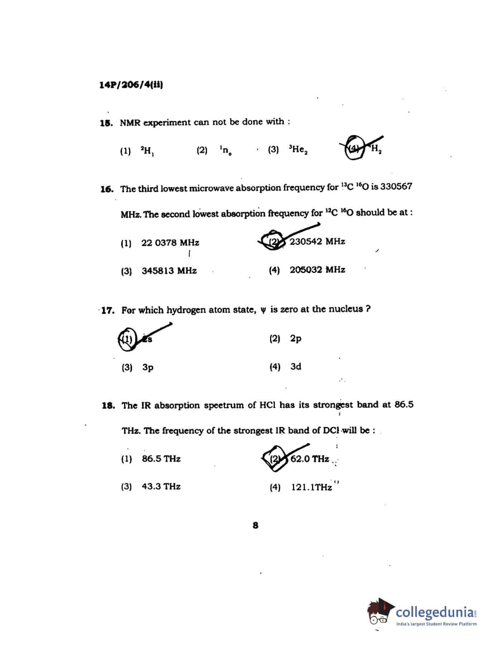 BHU PET 2014 M.Sc Chemistry Set-2 Question Paper with Answer Key PDFs