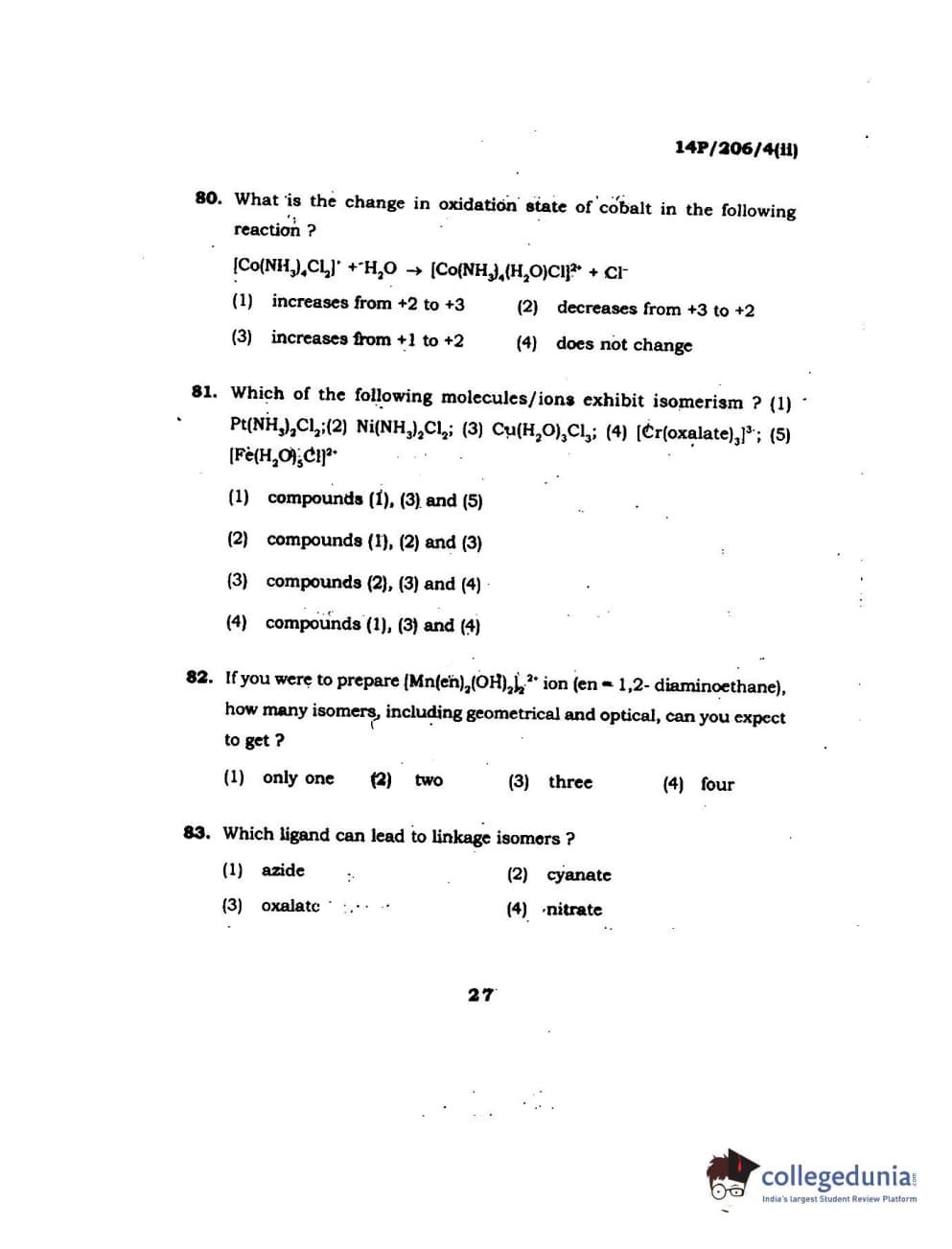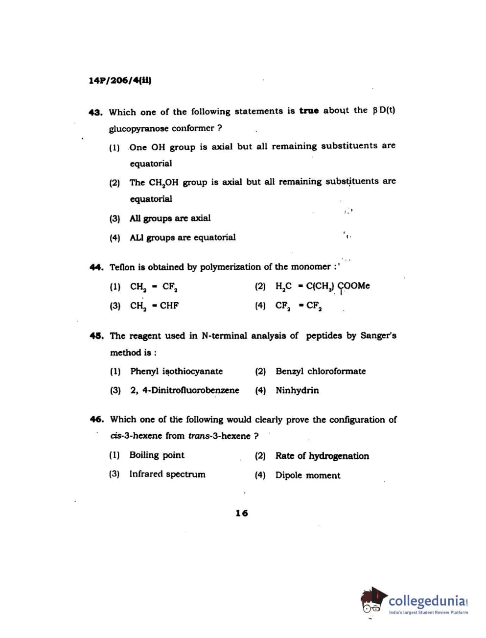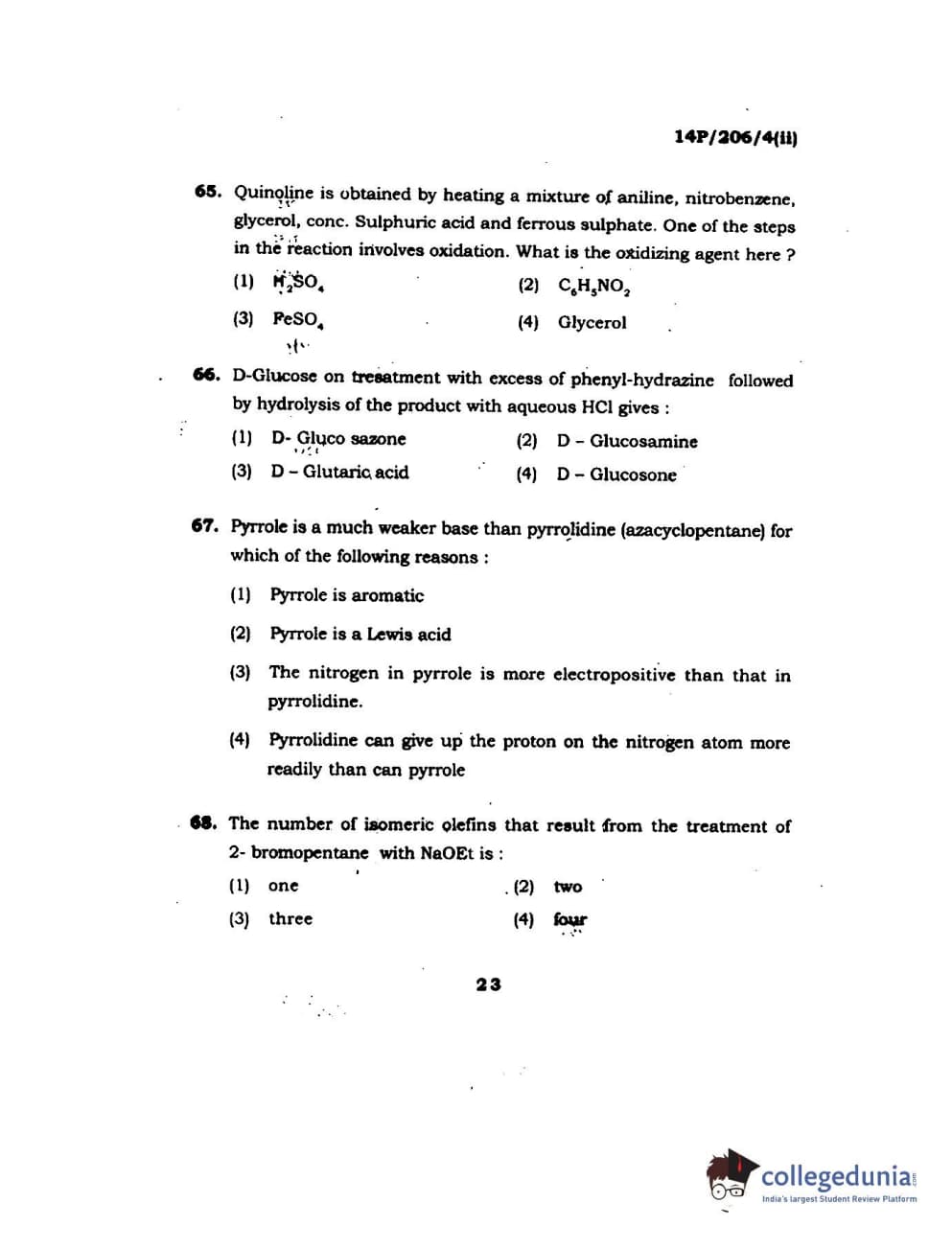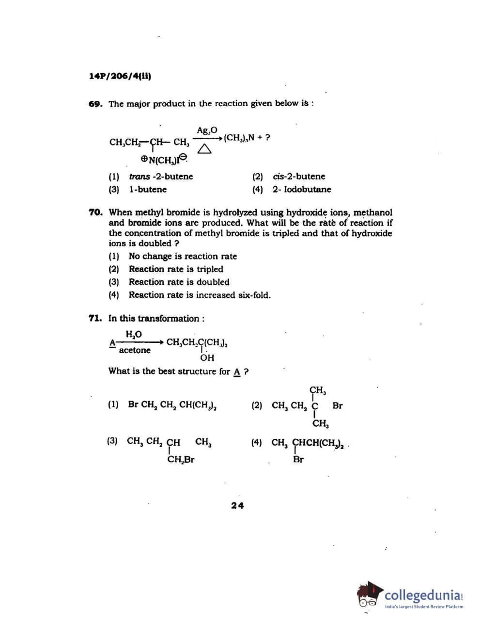 BHU PET 2014 M.Sc Chemistry Set-2 Question Paper with Answer Key PDFs
