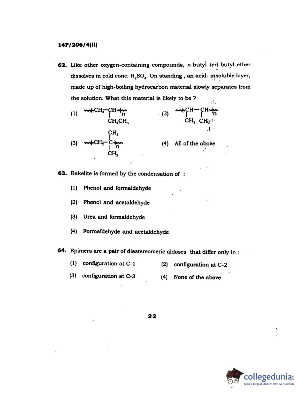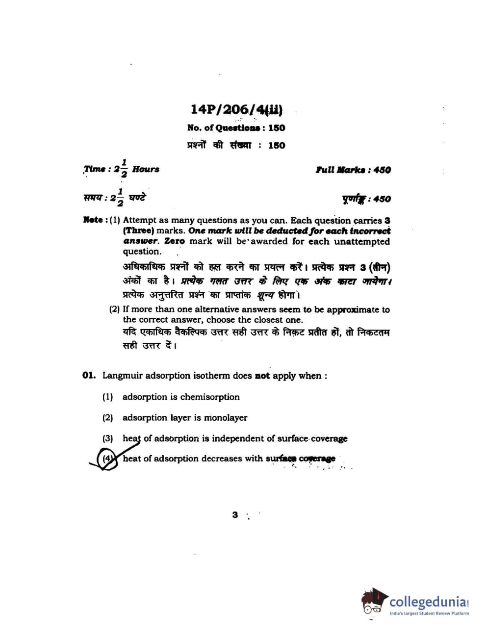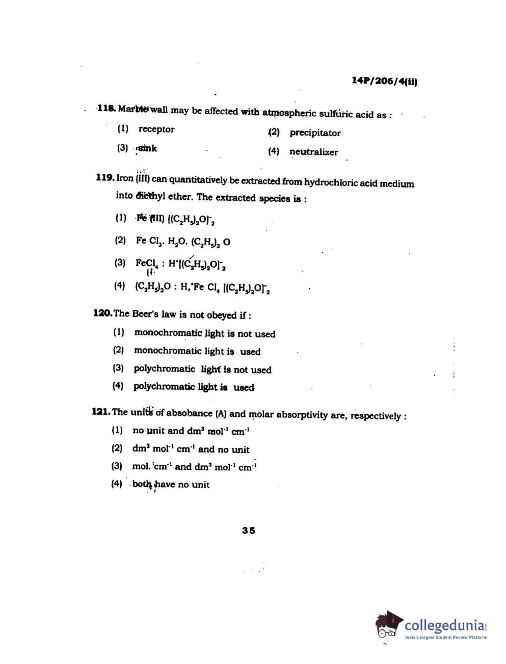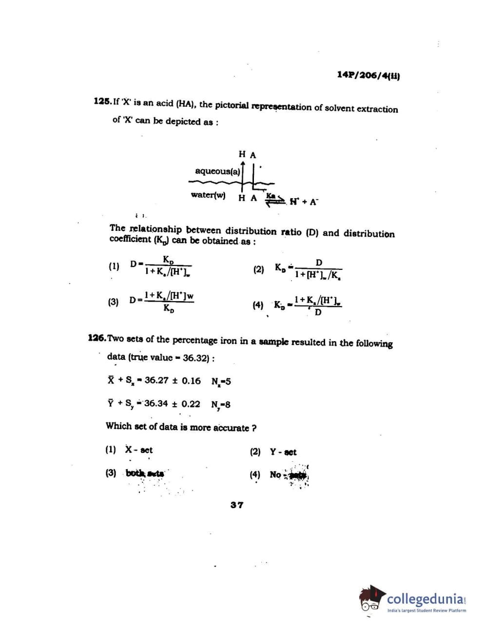 BHU PET 2014 M.Sc Chemistry Set-2 Question Paper with Answer Key PDFs