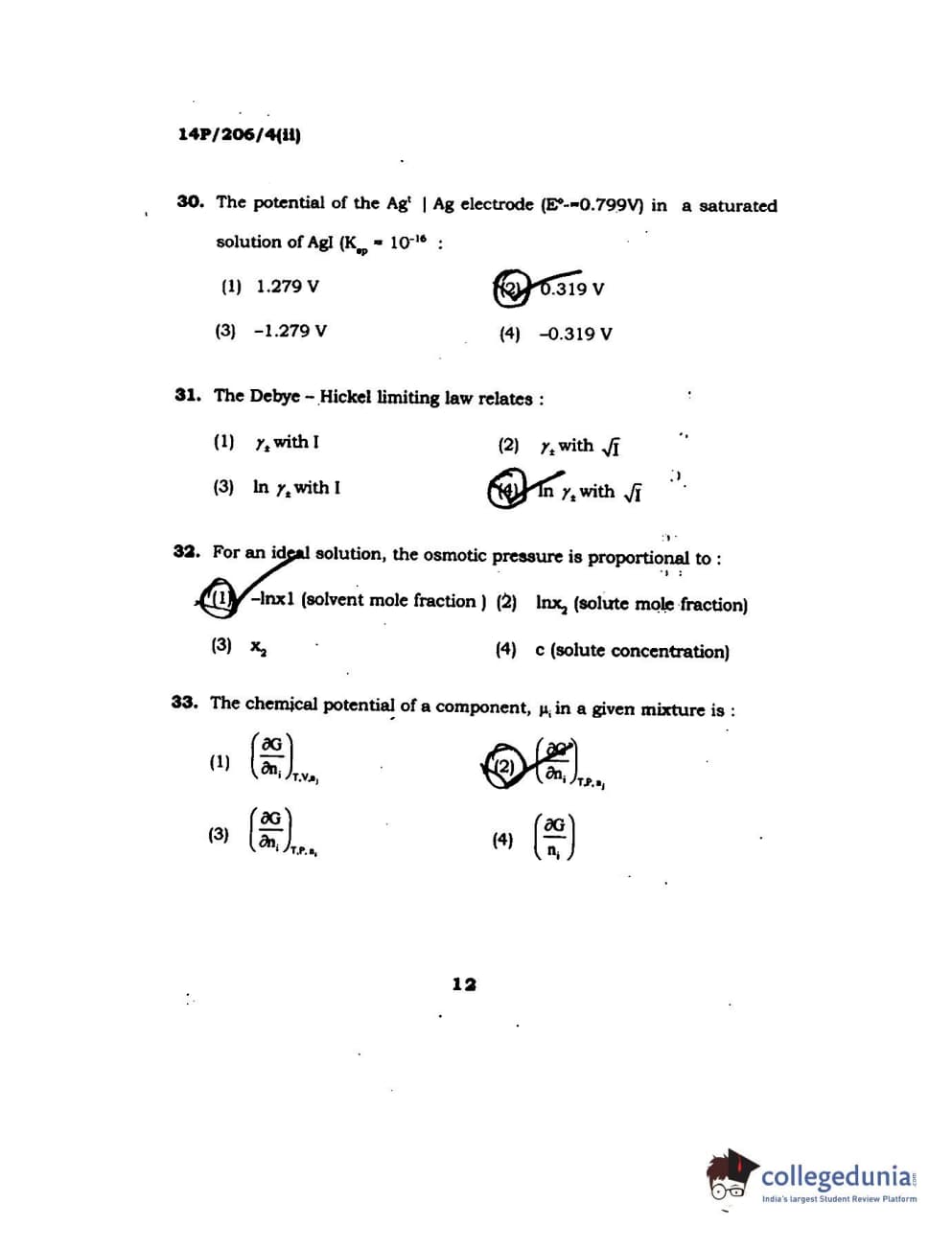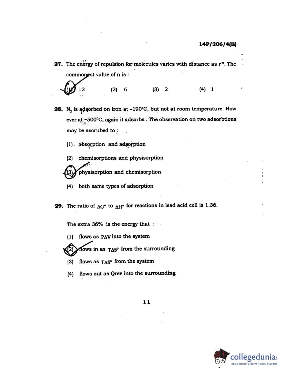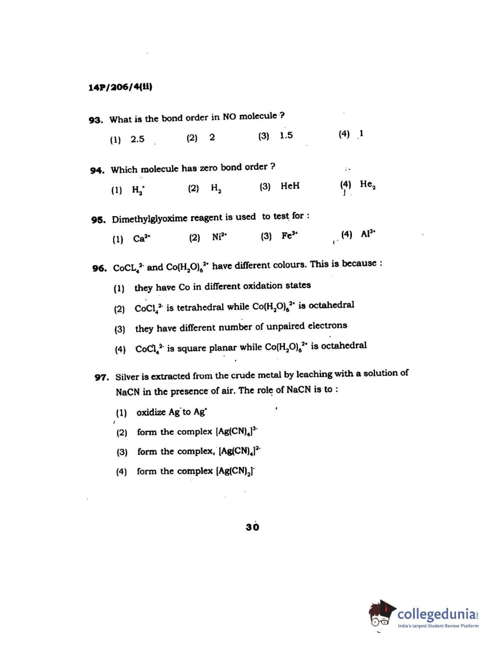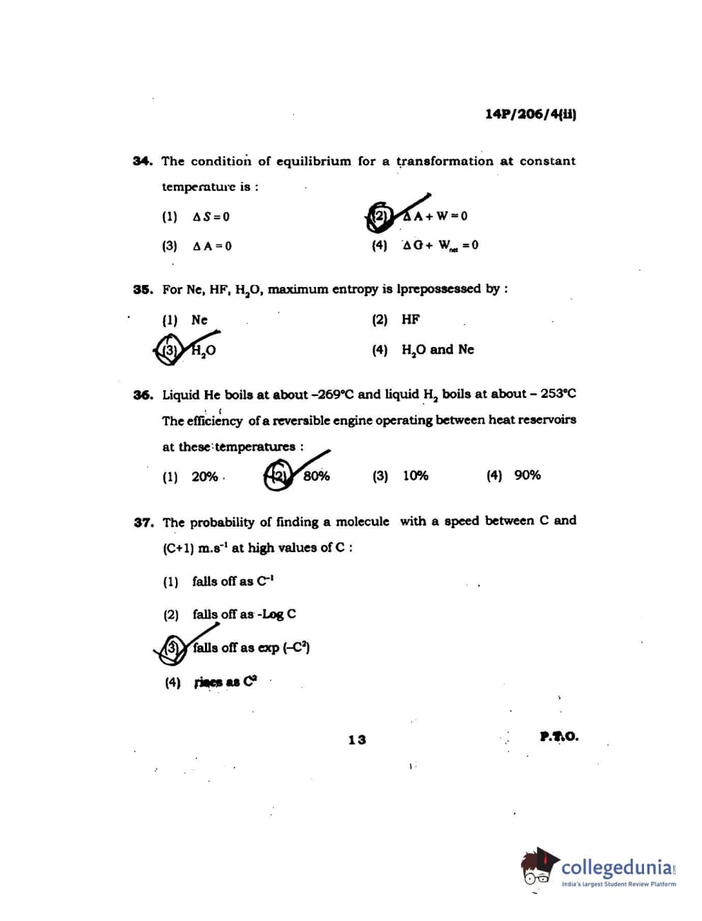 BHU PET 2014 M.Sc Chemistry Set-2 Question Paper with Answer Key PDFs