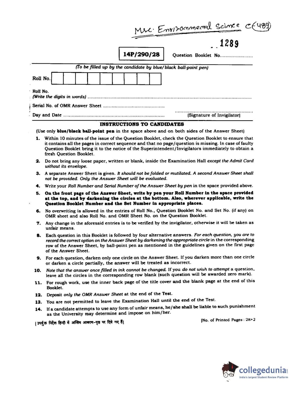 BHU PET 2014 M.Sc Environmental Science Question paper with answer key pdf is available for download. The exam was successfully organized by Banaras Hindu University (BHU). The question paper comprised a total of 150 questions.
