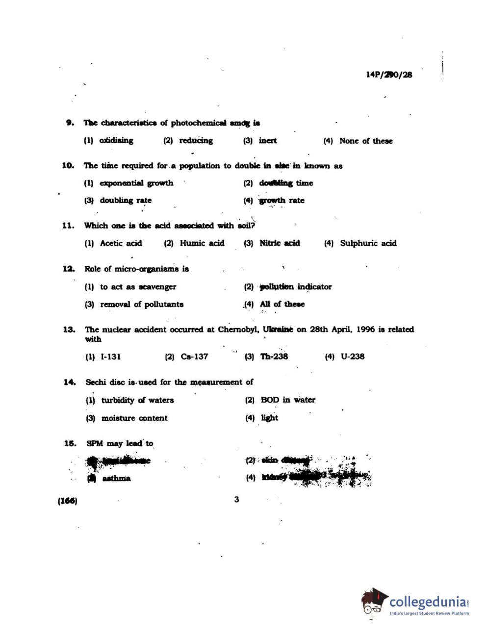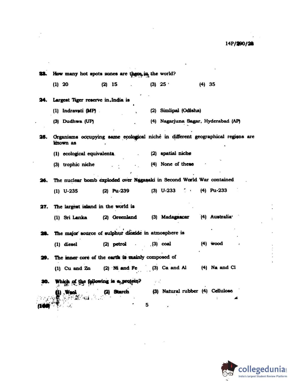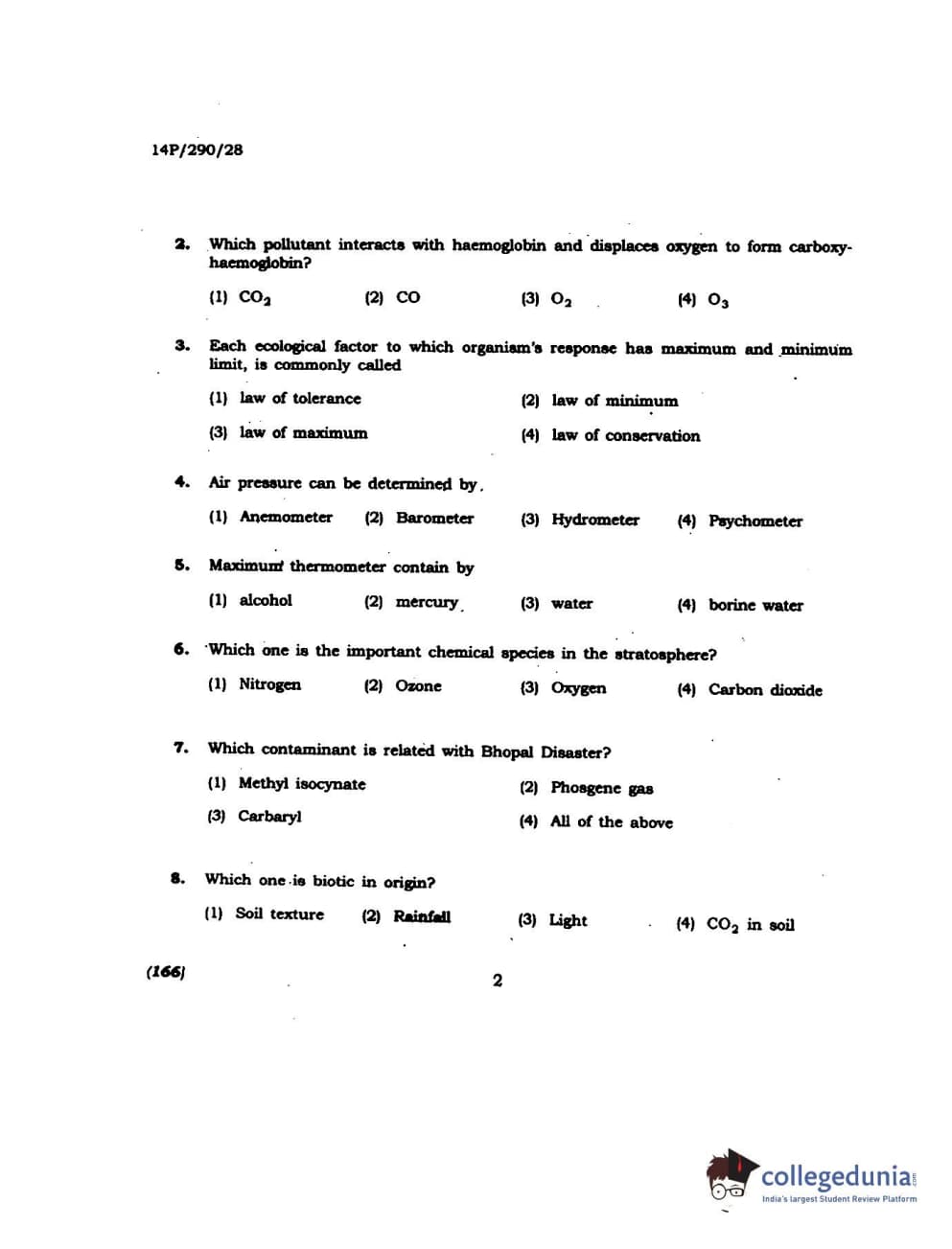 BHU PET 2014 M.Sc Environmental Science Question Paper with Answer Key PDFs