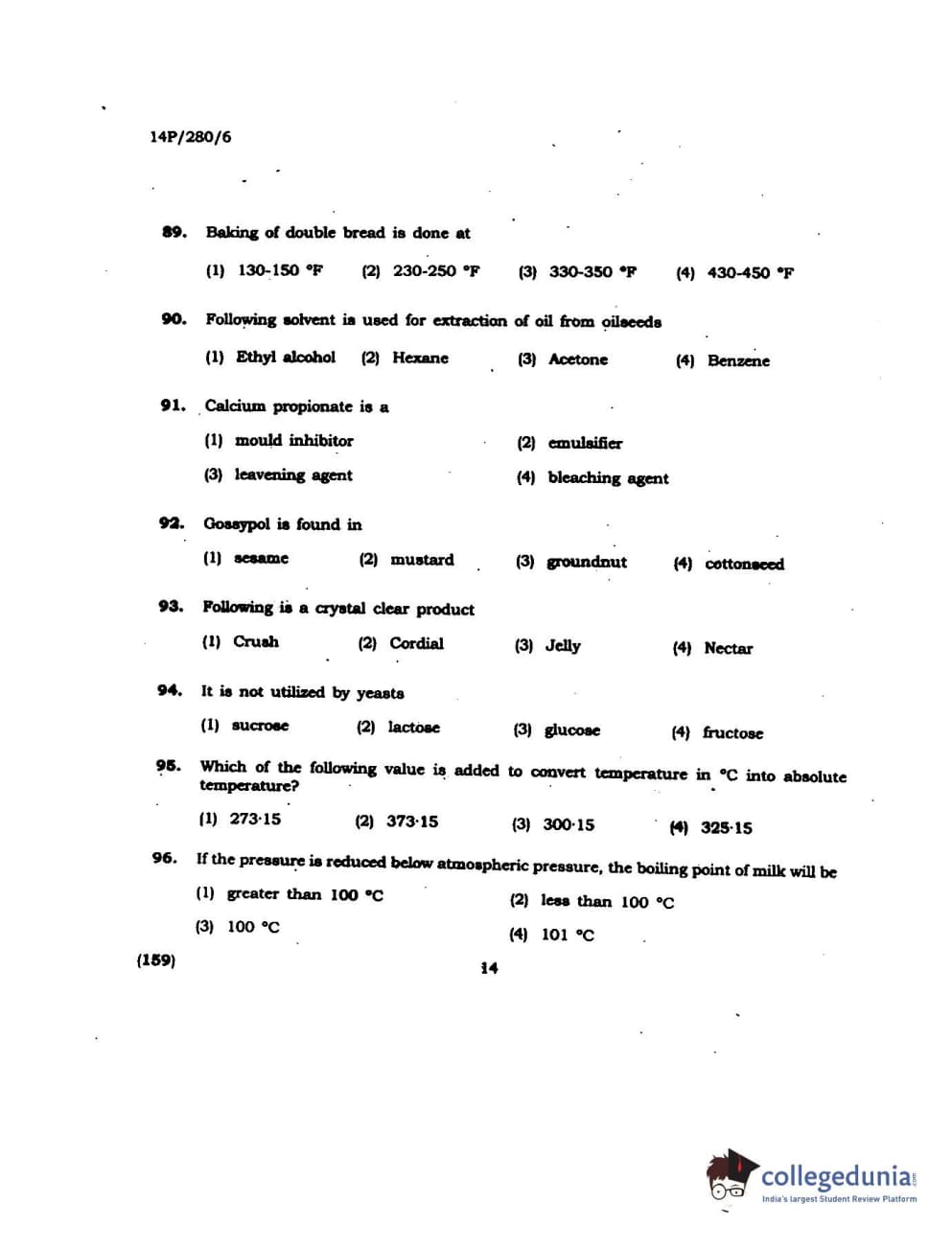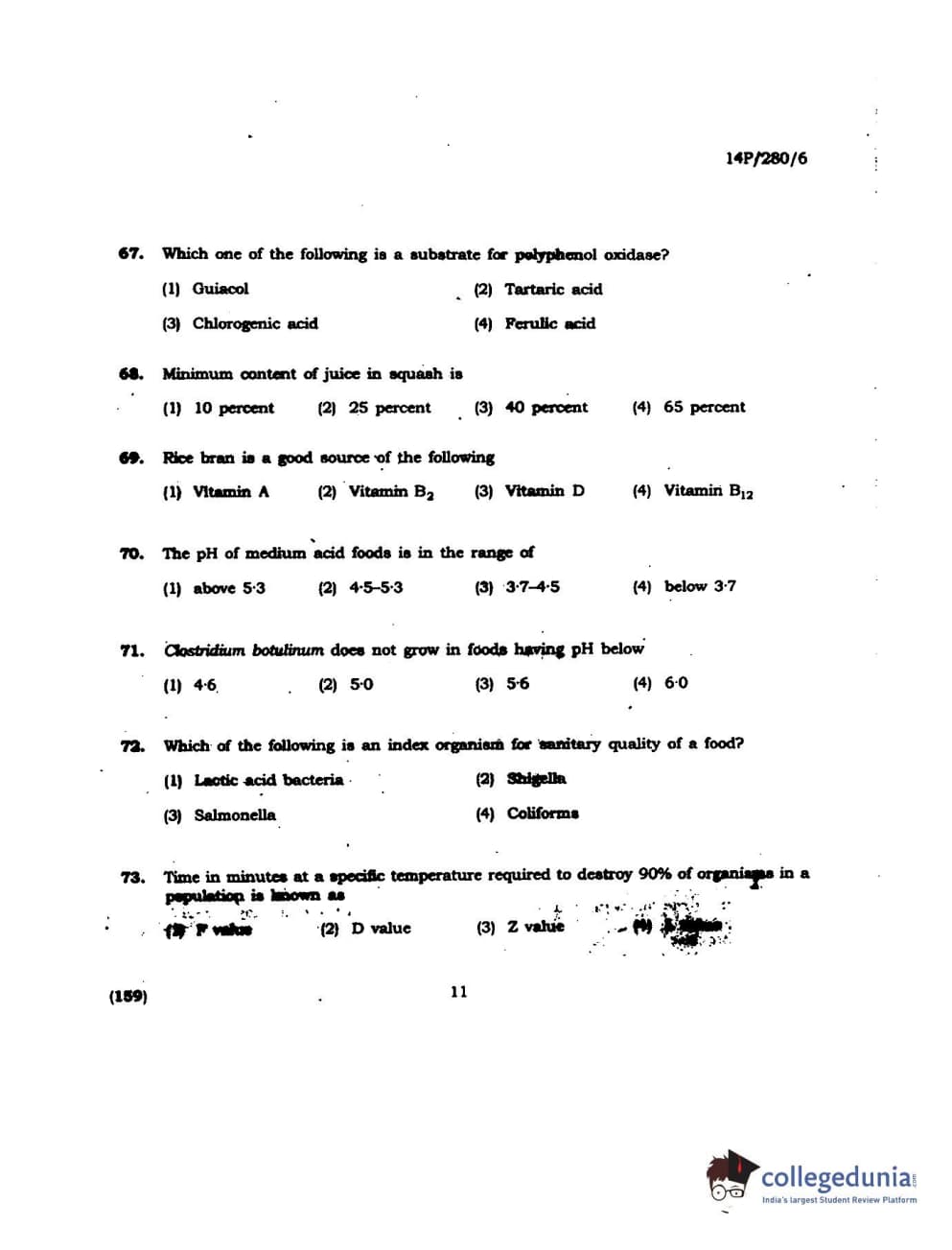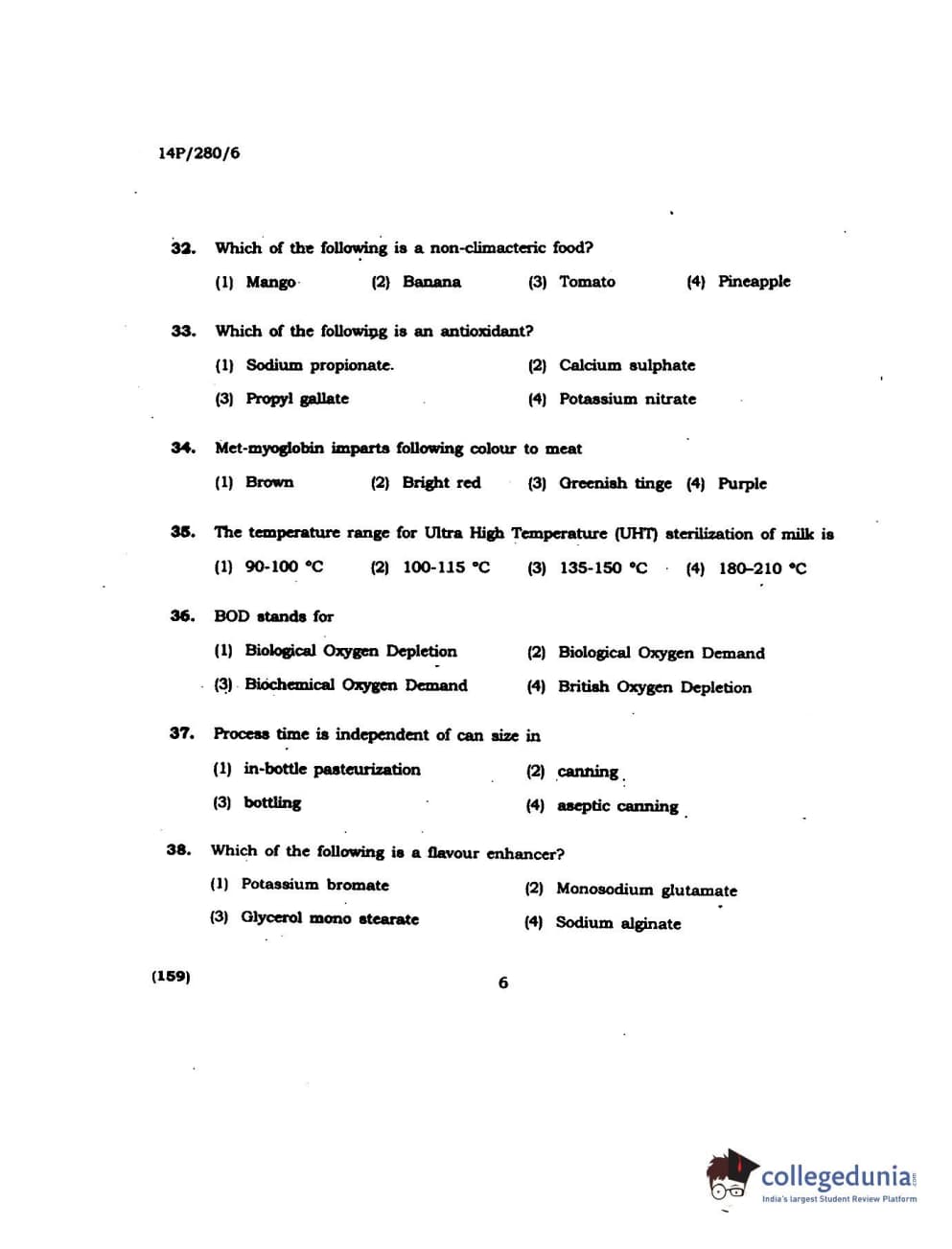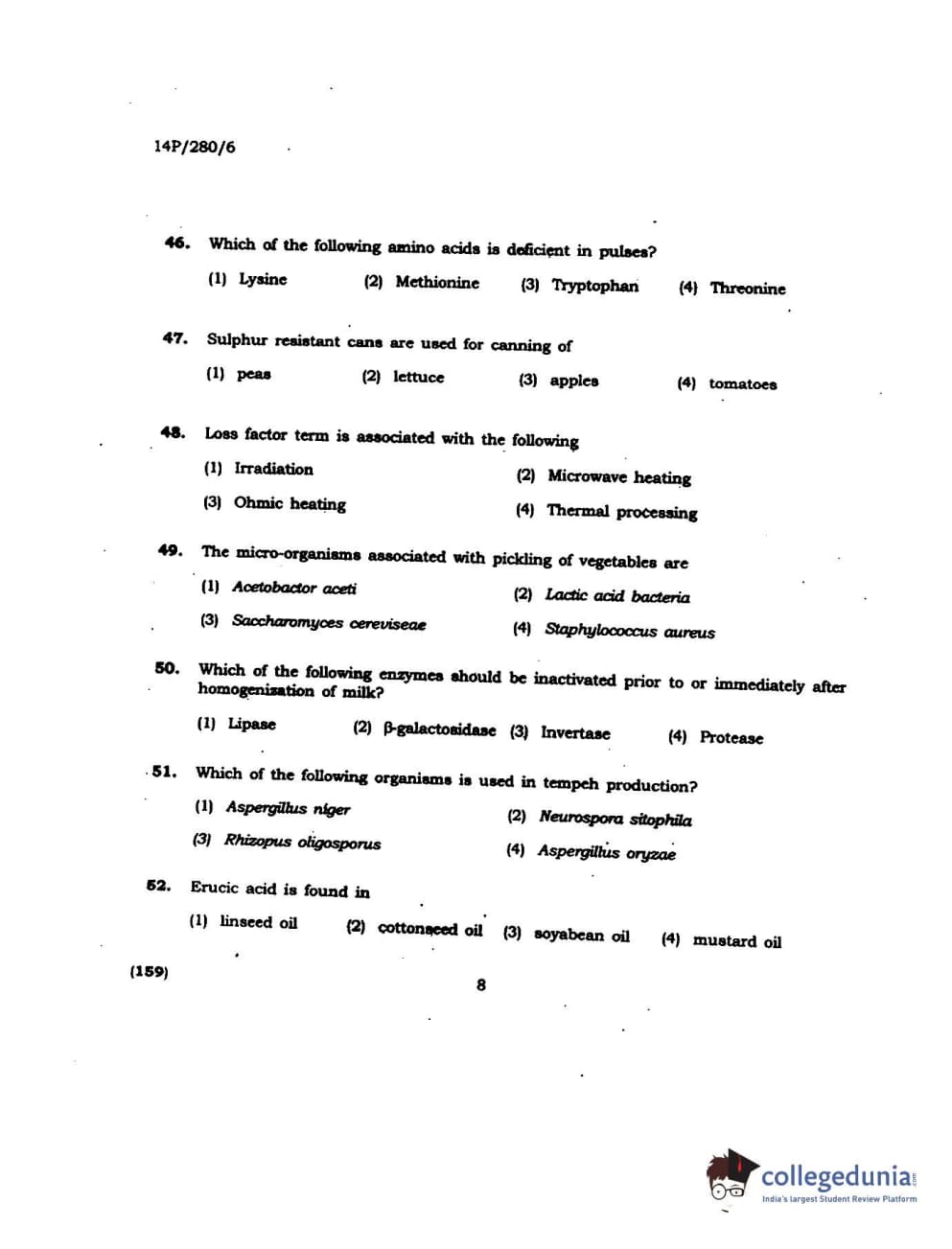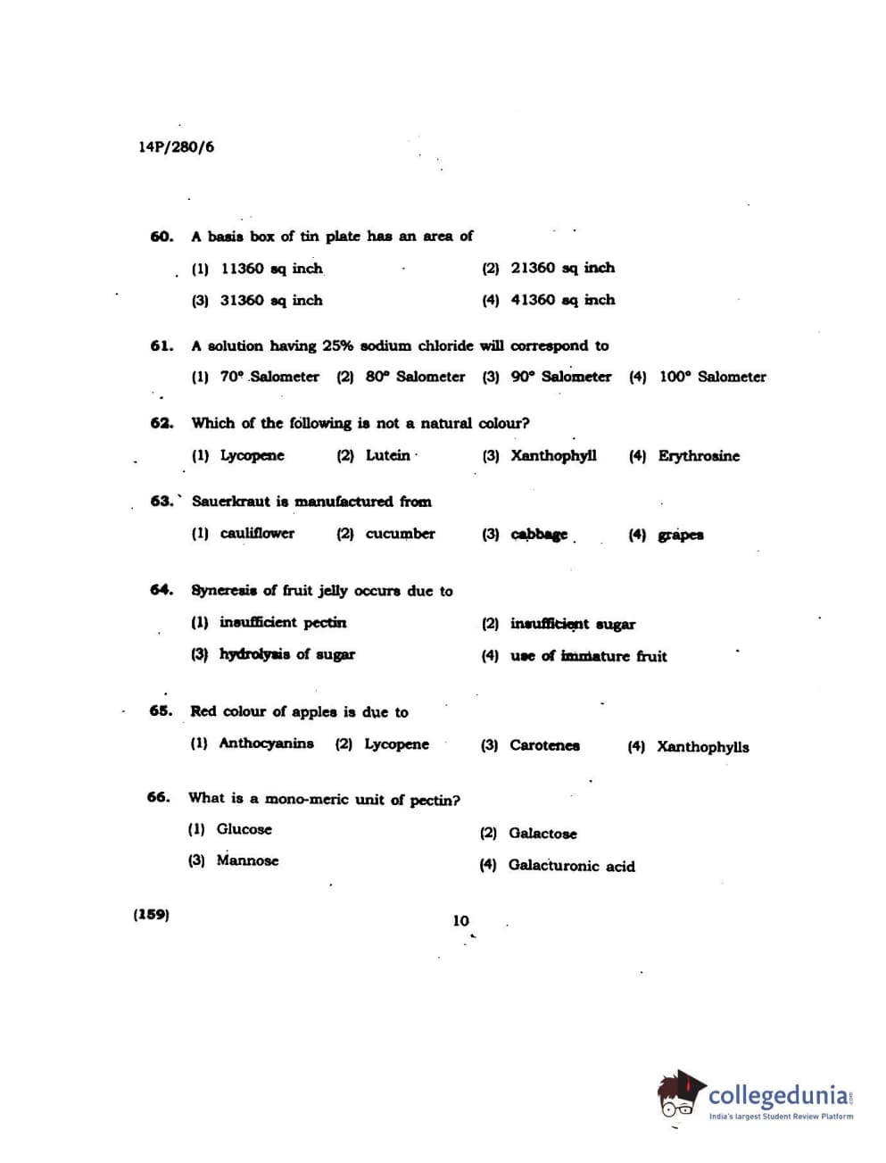 BHU PET 2014 M.Sc Food & Technology Question Paper with Answer Key PDFs