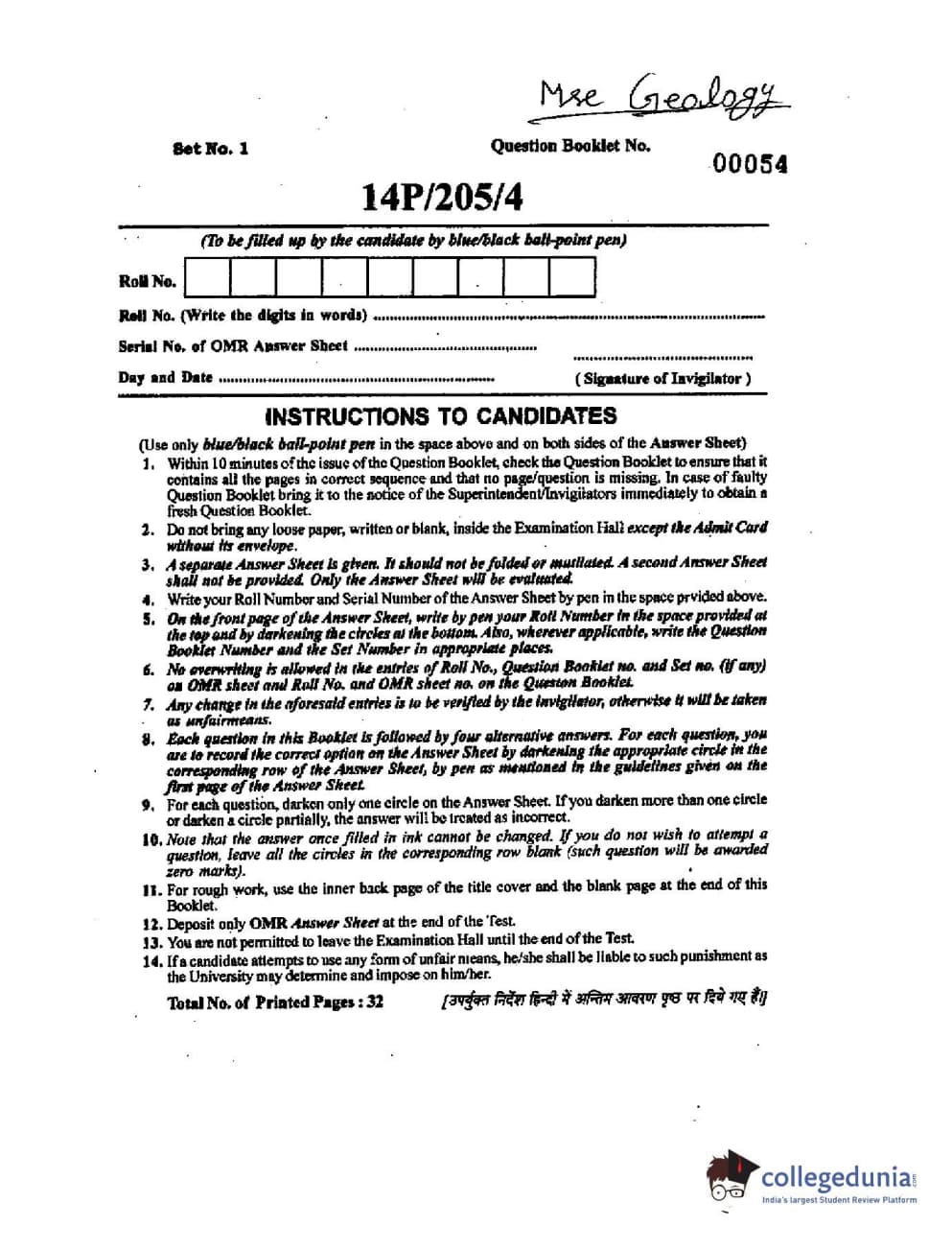 | BHU PET 2014 M.Sc Geology Question Paper PDF | BHU PET 2014 M.Sc Geology Answer Key PDF |