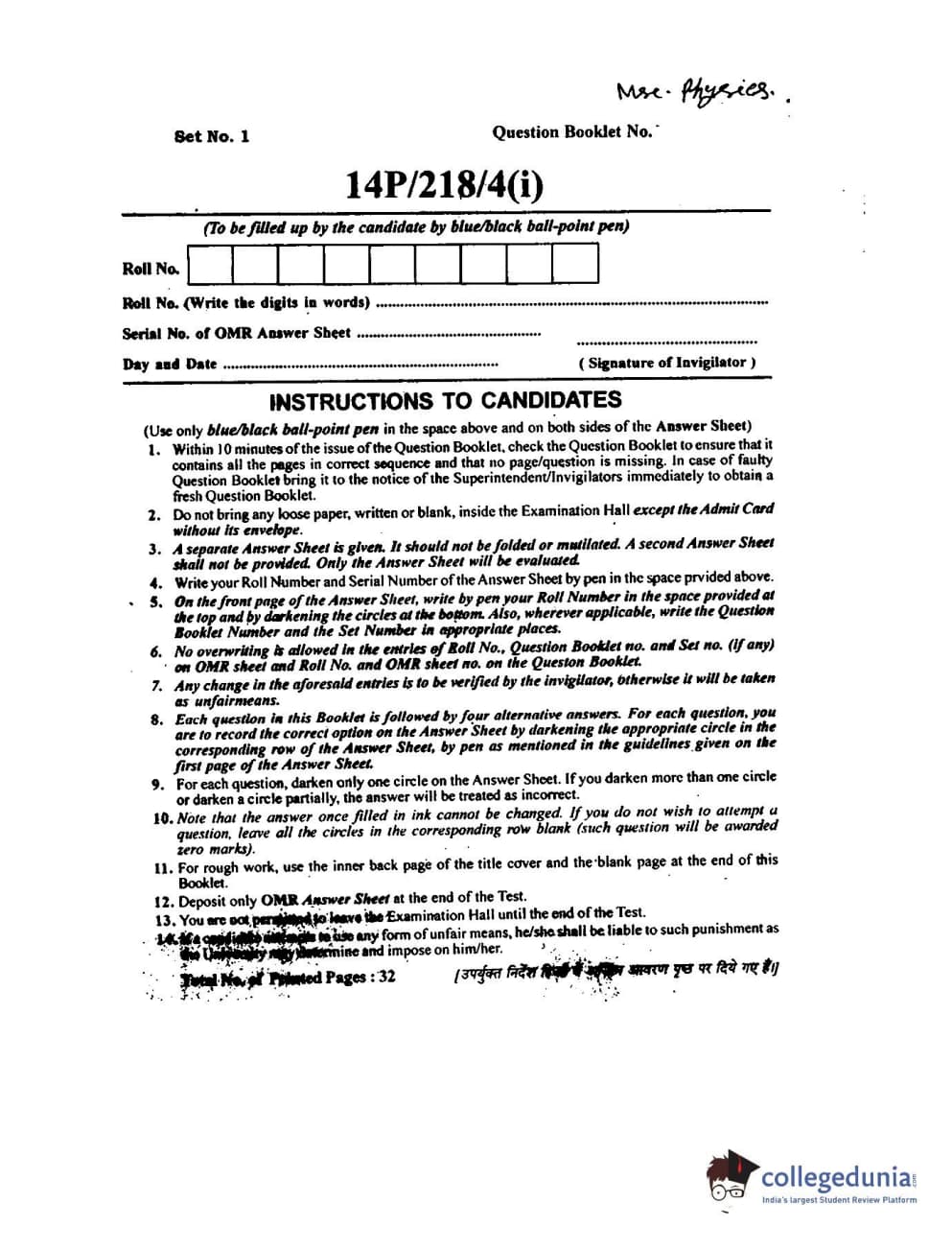 | BHU PET 2014 M.Sc Physics Set-1 Question Paper PDF | BHU PET 2014 M.Sc Physics Set-1 Answer Key PDF |