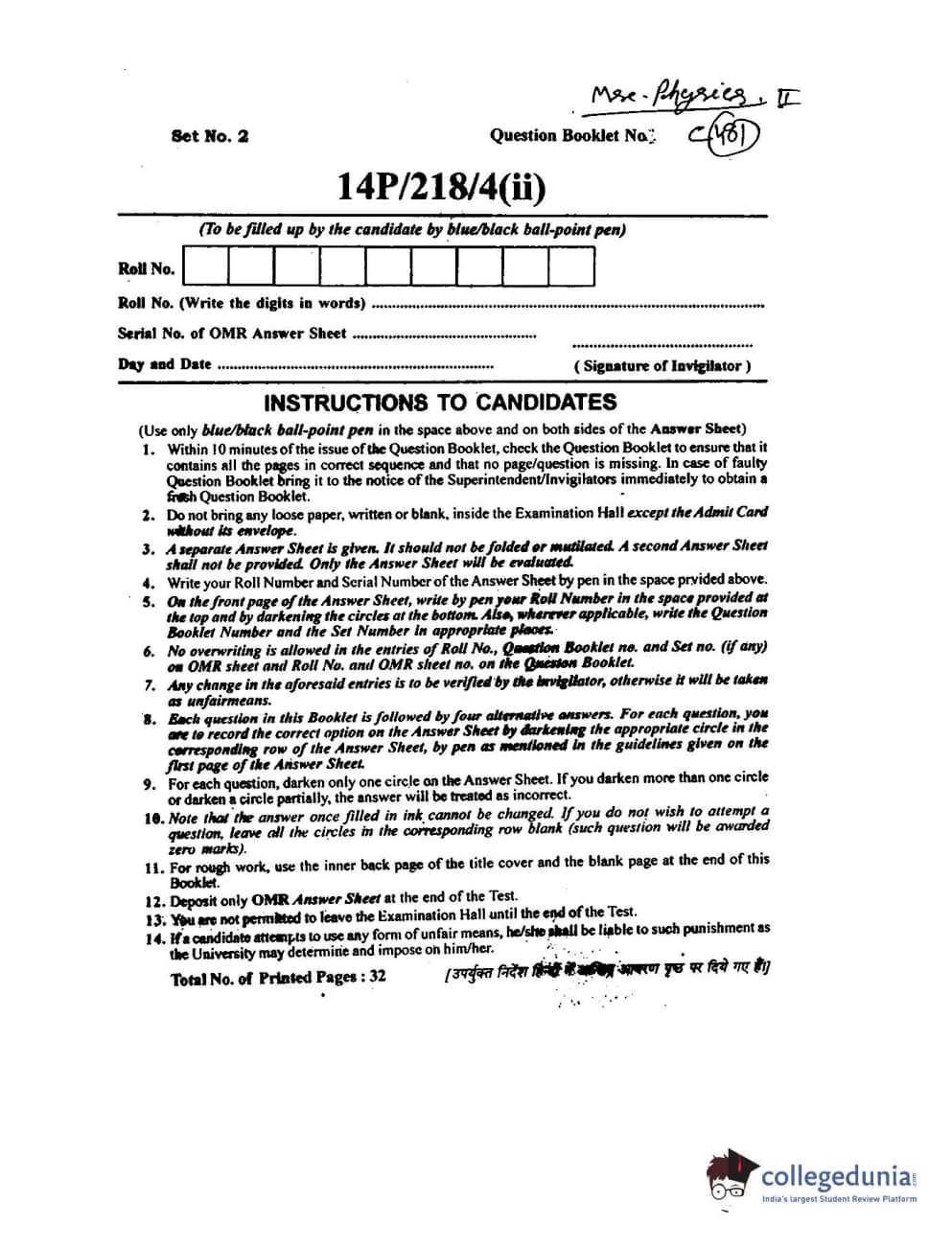 | BHU PET 2014 M.Sc Physics Set-2 Question Paper PDF | BHU PET 2014 M.Sc Physics Set-2 Answer Key PDF |