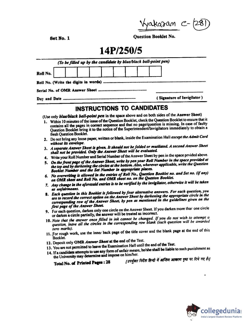 BHU PET 2014 Vyakaran Question paper with answer key pdf is available for download. The exam was successfully organized by Banaras Hindu University (BHU). The question paper comprised a total of 150 questions.