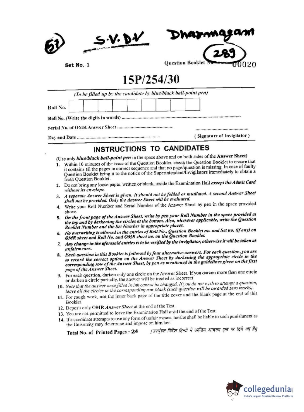 BHU PET 2015 Dharmagam Question paper with answer key pdf is available for download. The exam was successfully organized by Banaras Hindu University (BHU). The question paper comprised a total of 150 questions.