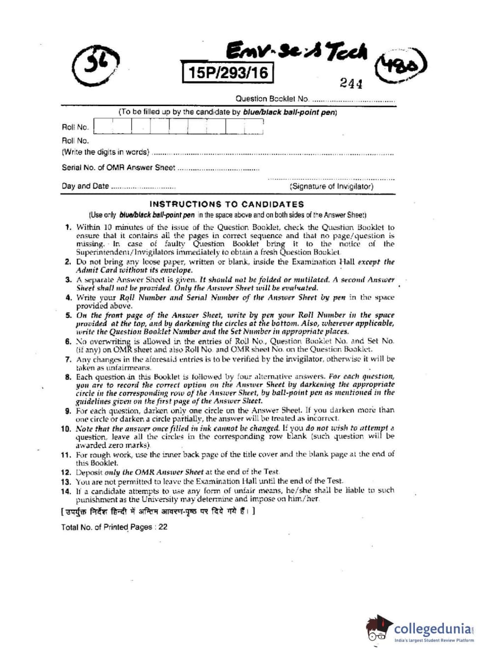 BHU PET 2015 Environment Science and Tech Question paper with answer key pdf is available for download. The exam was successfully organized by Banaras Hindu University (BHU). The question paper comprised a total of 150 questions.