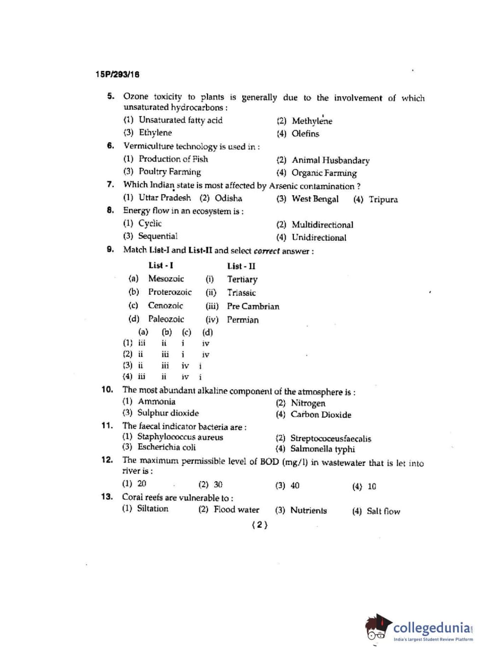 BHU PET 2015 Environment Science and Tech Question Paper with Answer Key PDFs