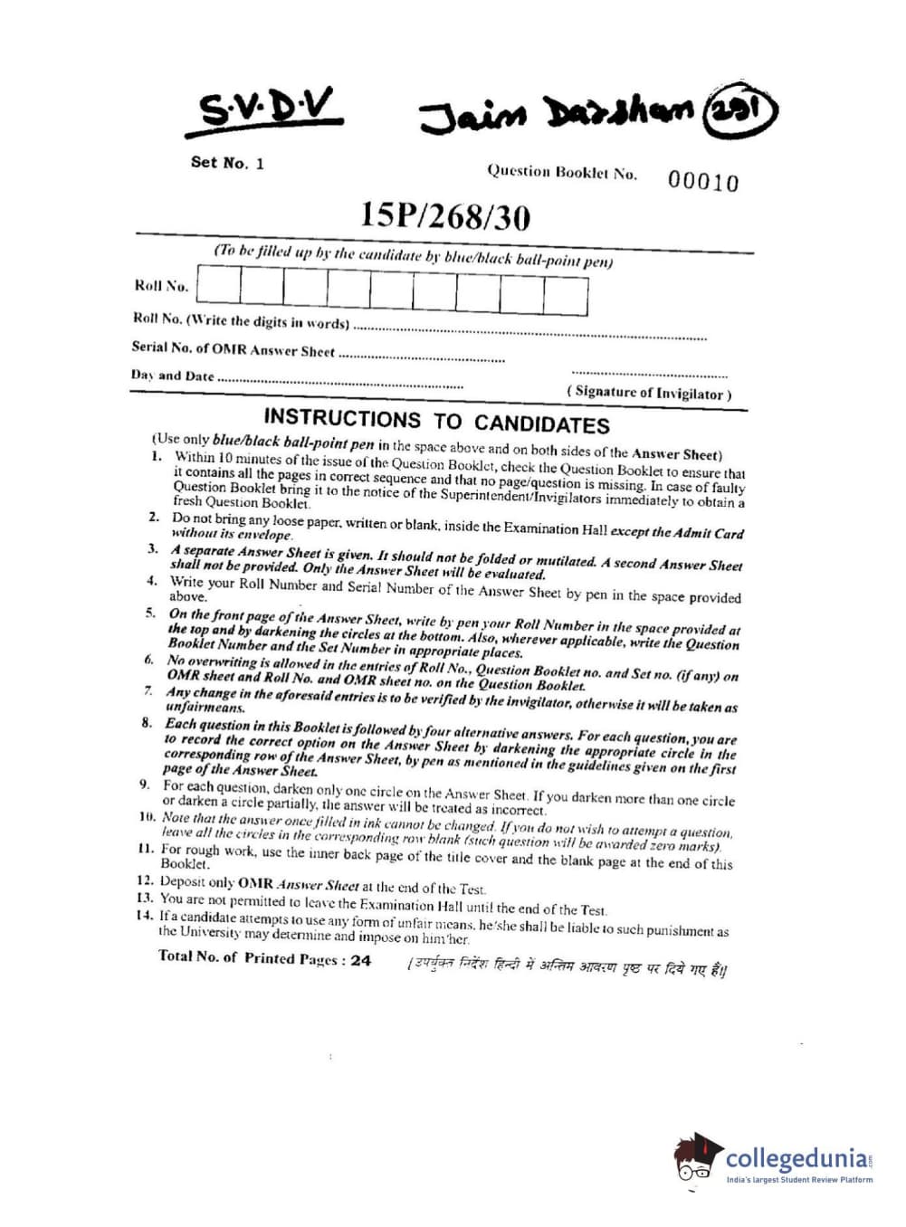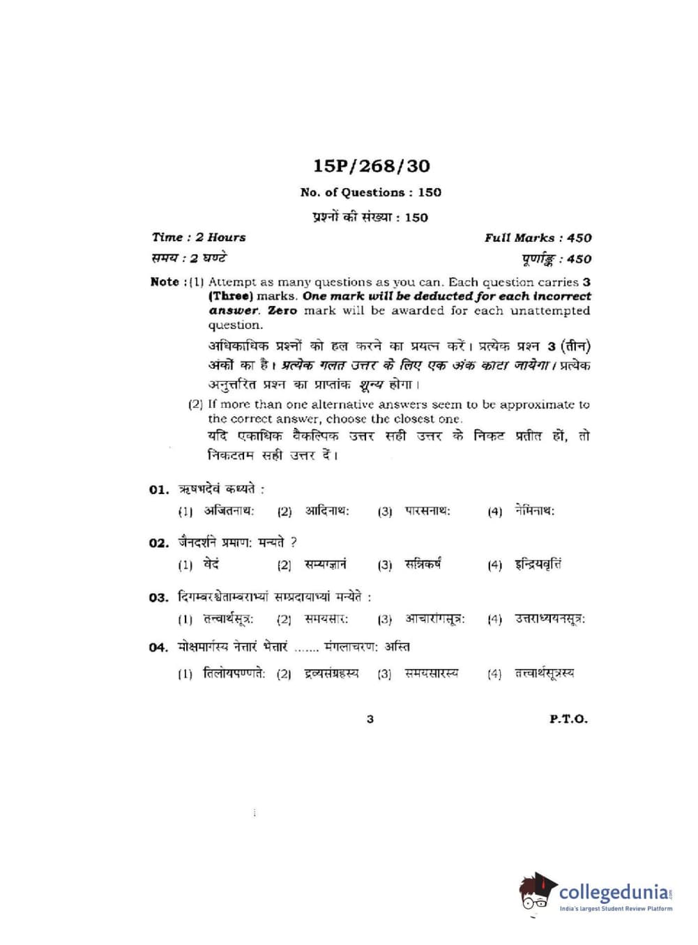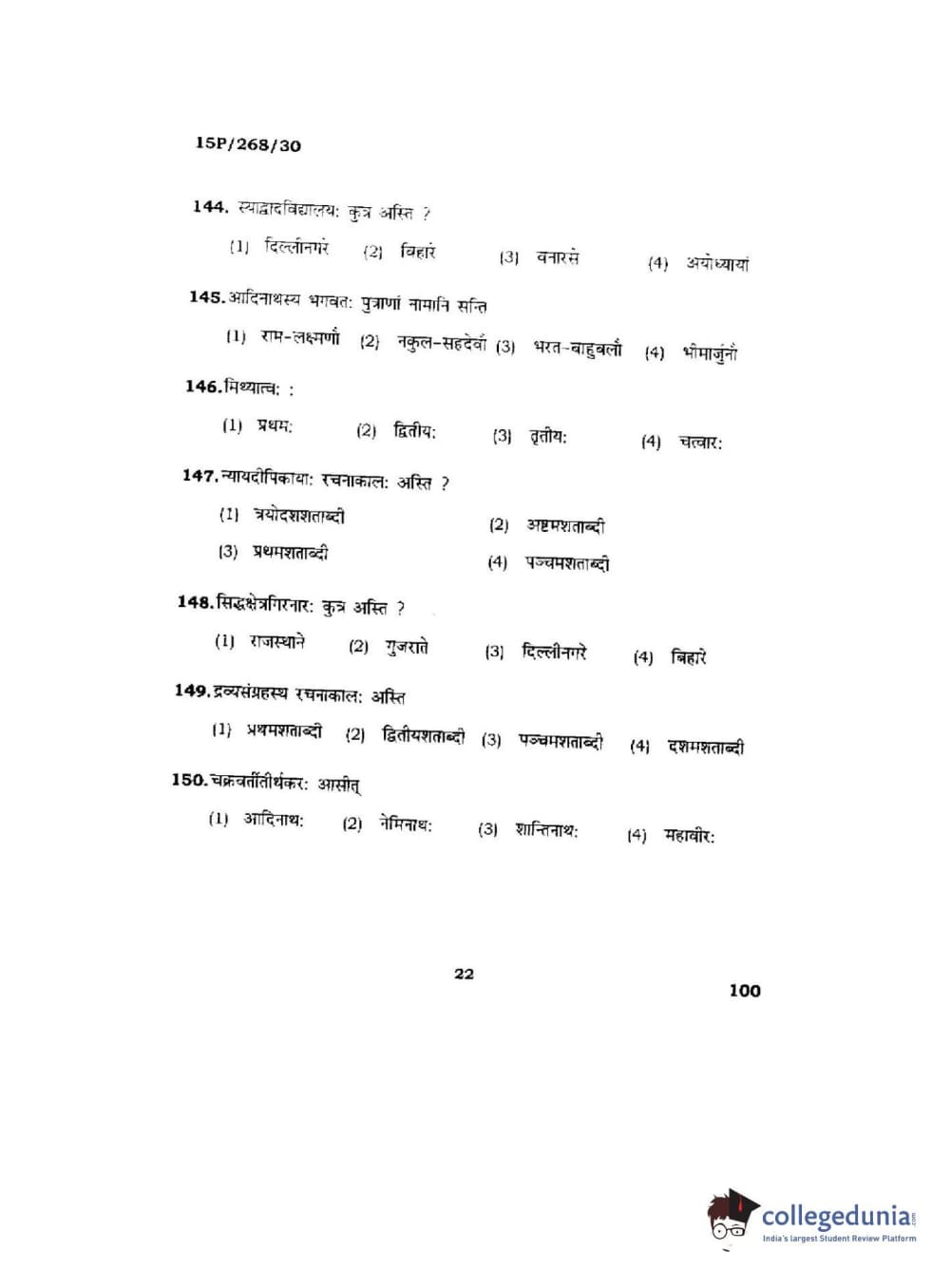 BHU PET 2015 Jain Darshan Question paper with answer key pdf is available for download. The exam was successfully organized by Banaras Hindu University (BHU). The question paper comprised a total of 150 questions.
