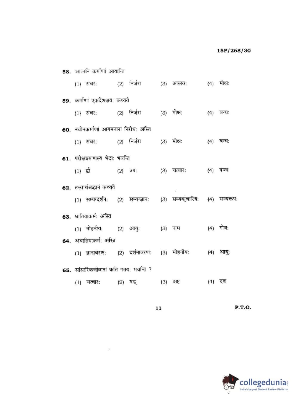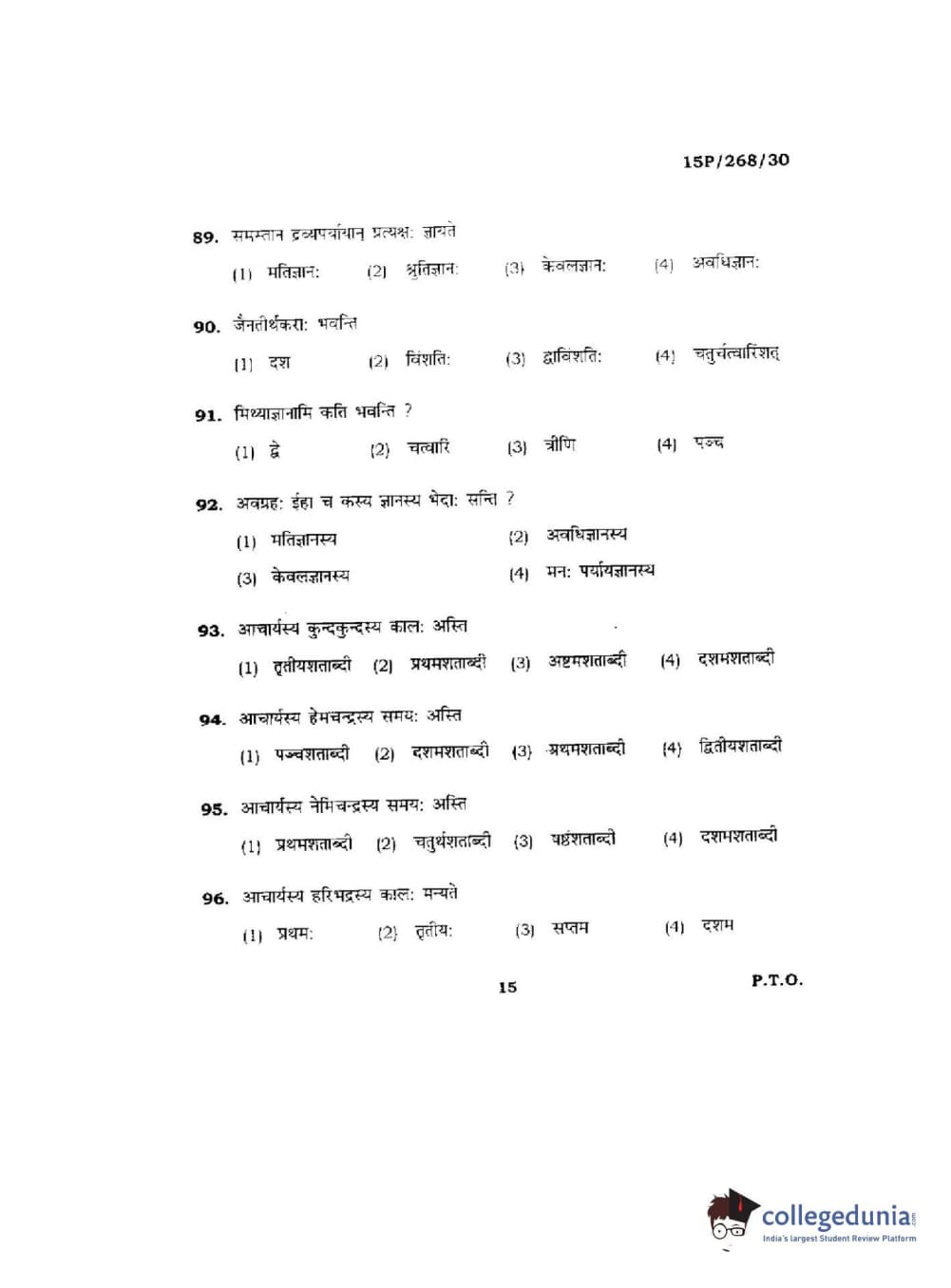 BHU PET 2015 Jain Darshan Question Paper with Answer Key PDFs