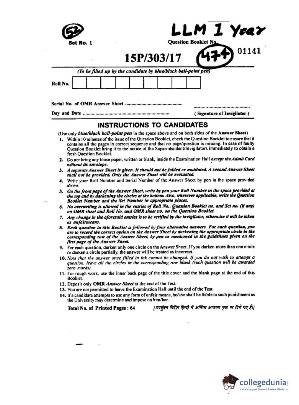 BHU PET 2015 LLM 1 Year Question paper with answer key pdf is available for download. The exam was successfully organized by Banaras Hindu University (BHU). The question paper comprised a total of 150 questions.