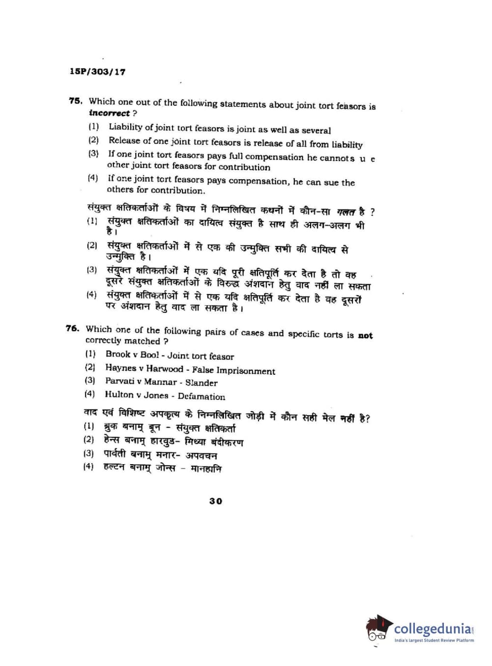 BHU PET 2015 LLM 1 Year Question Paper with Answer Key PDFs