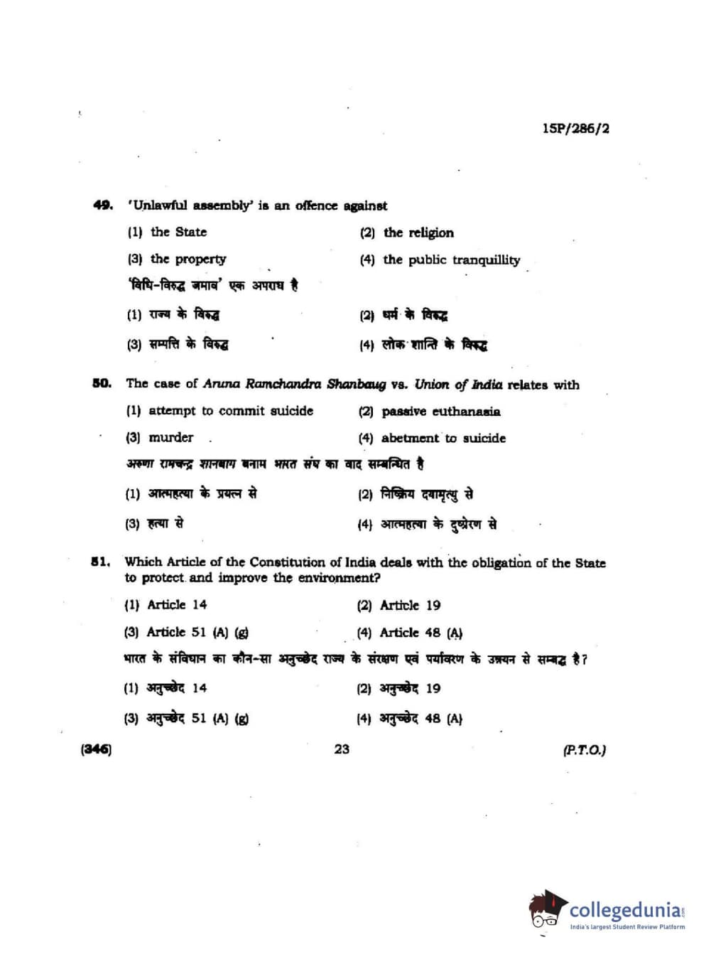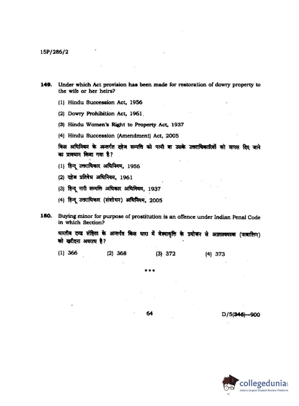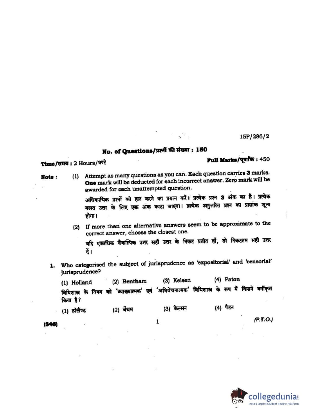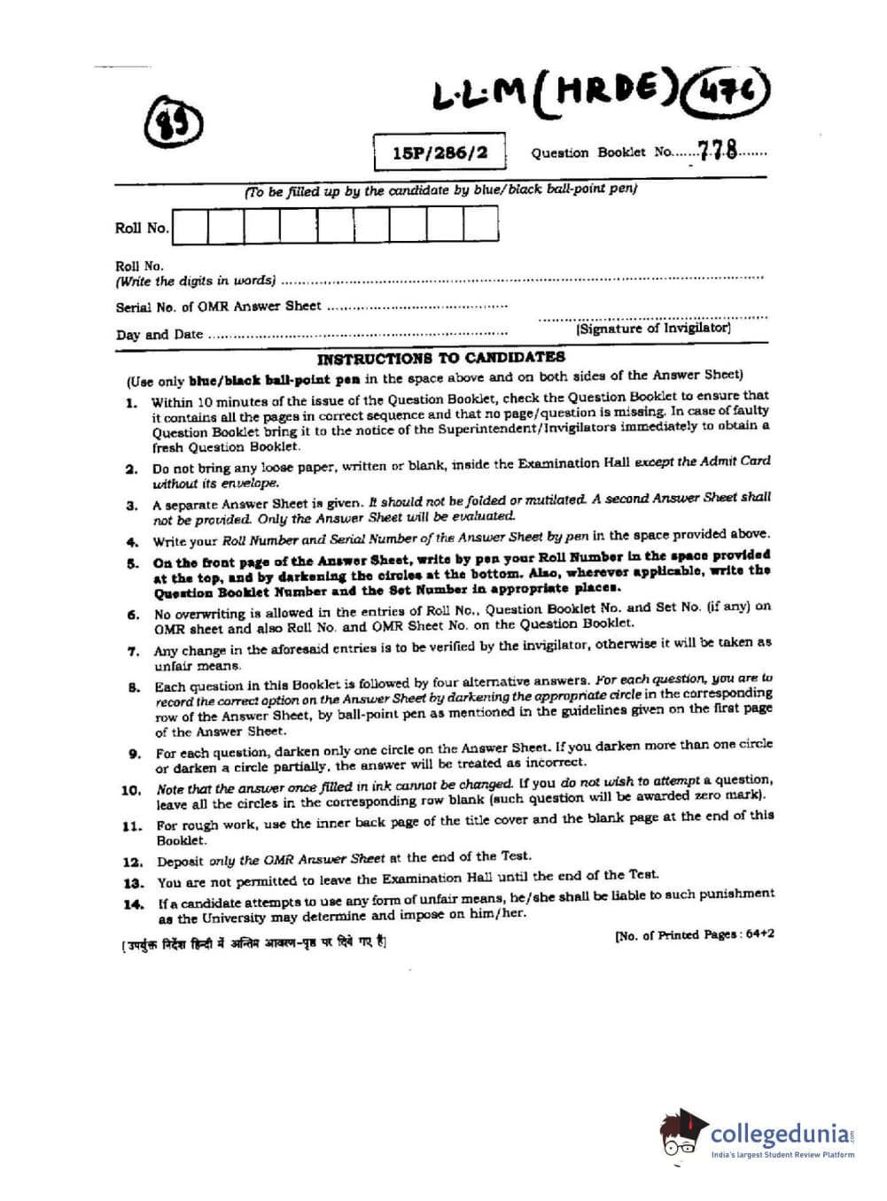 BHU PET 2015 LLM (HRDE) Question paper with answer key pdf is available for download. The exam was successfully organized by Banaras Hindu University (BHU). The question paper comprised a total of 150 questions.
