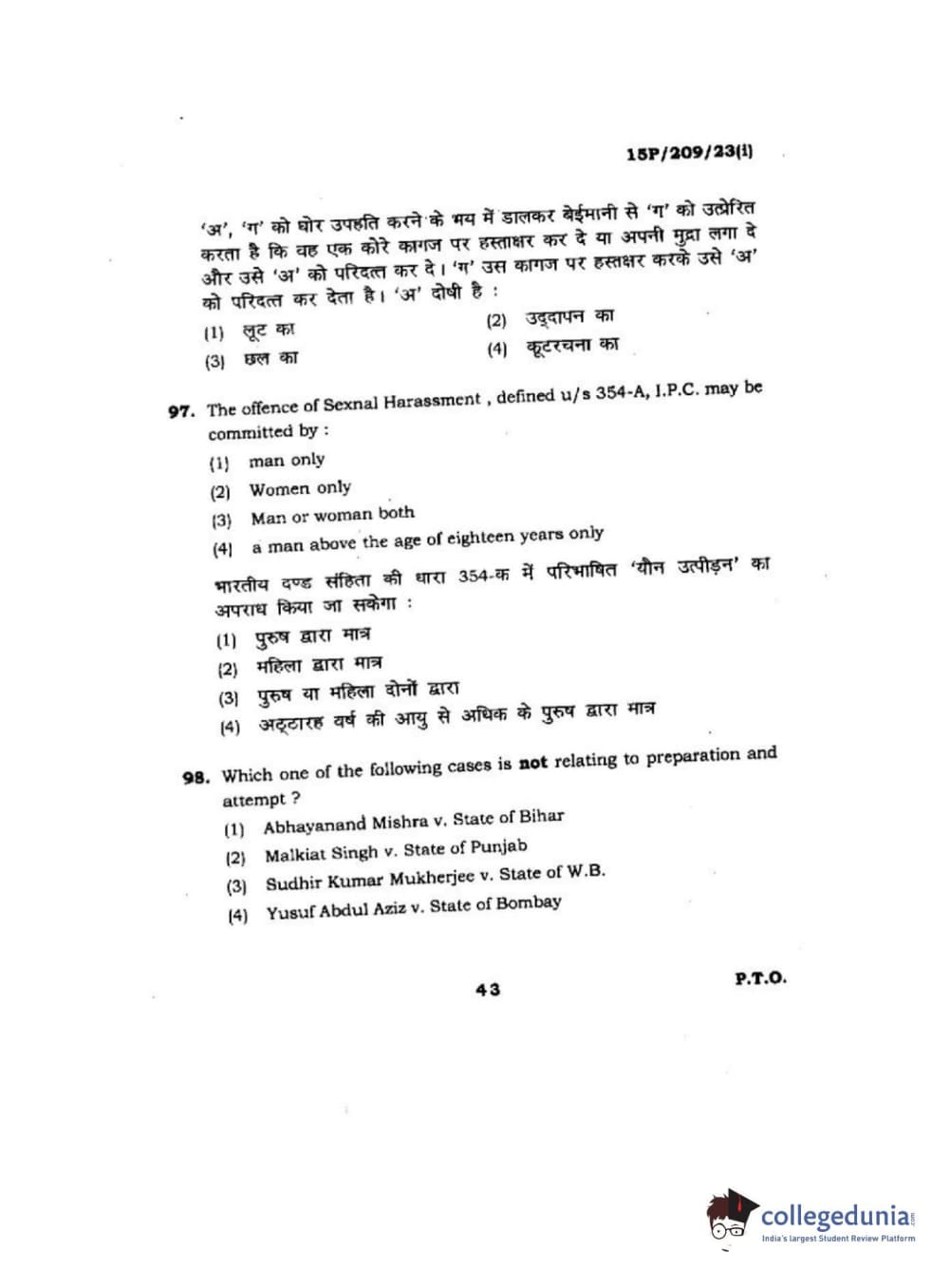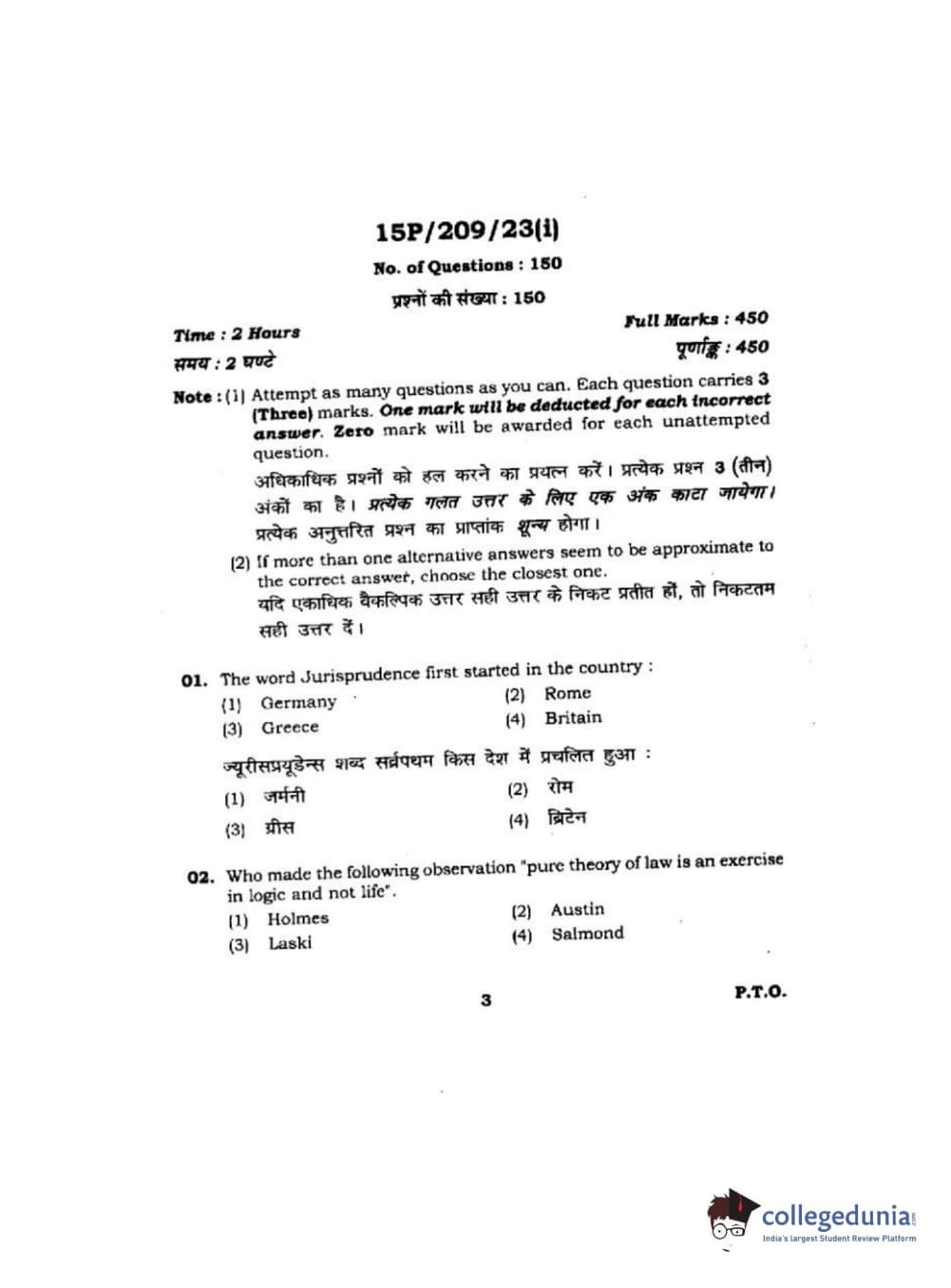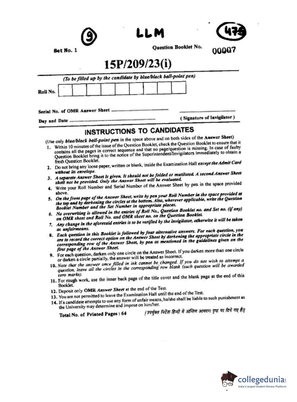 BHU PET 2015 LLM Question paper with answer key pdf is available for download. The exam was successfully organized by Banaras Hindu University (BHU). The question paper comprised a total of 150 questions.