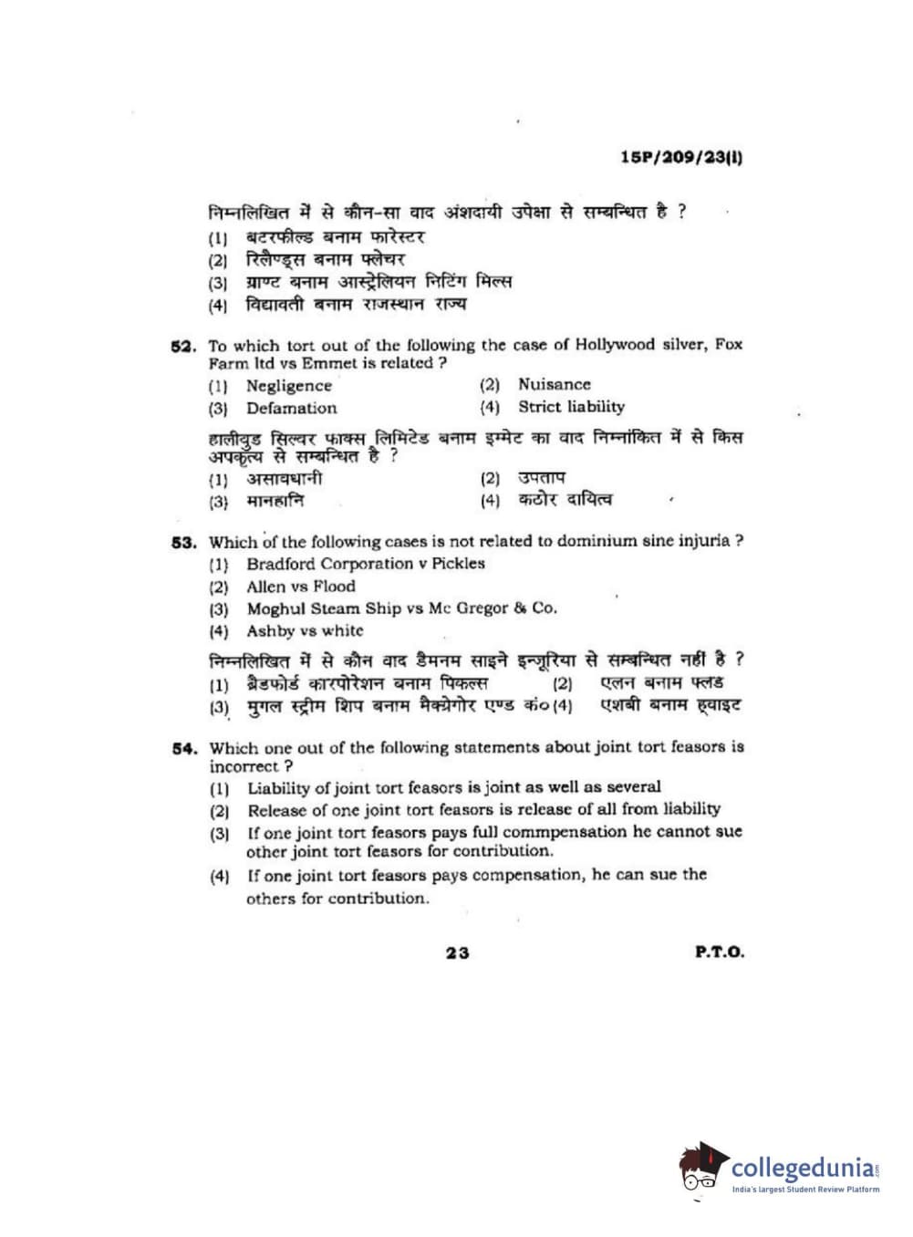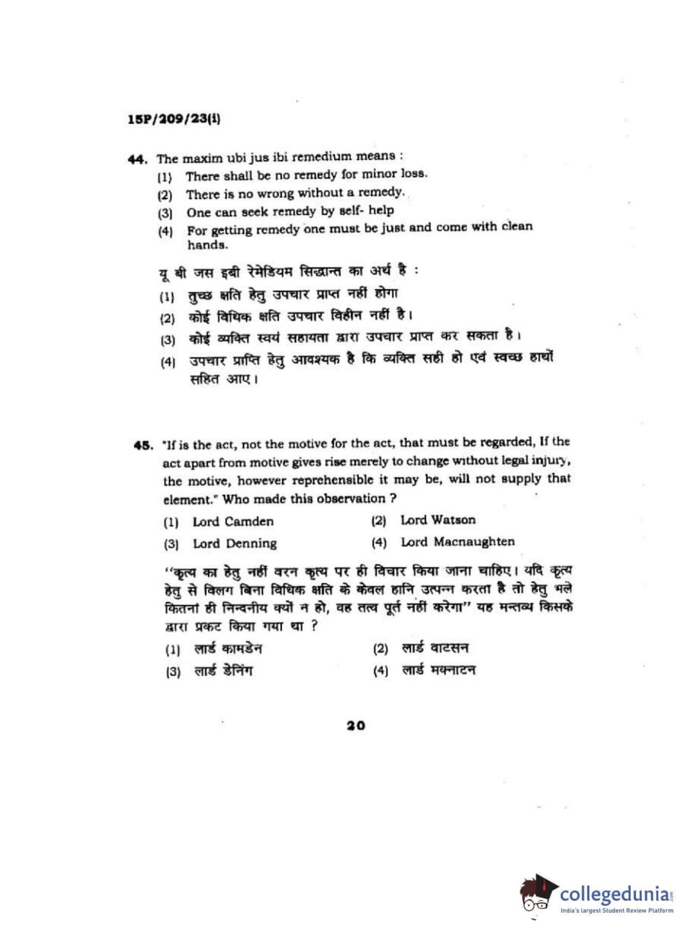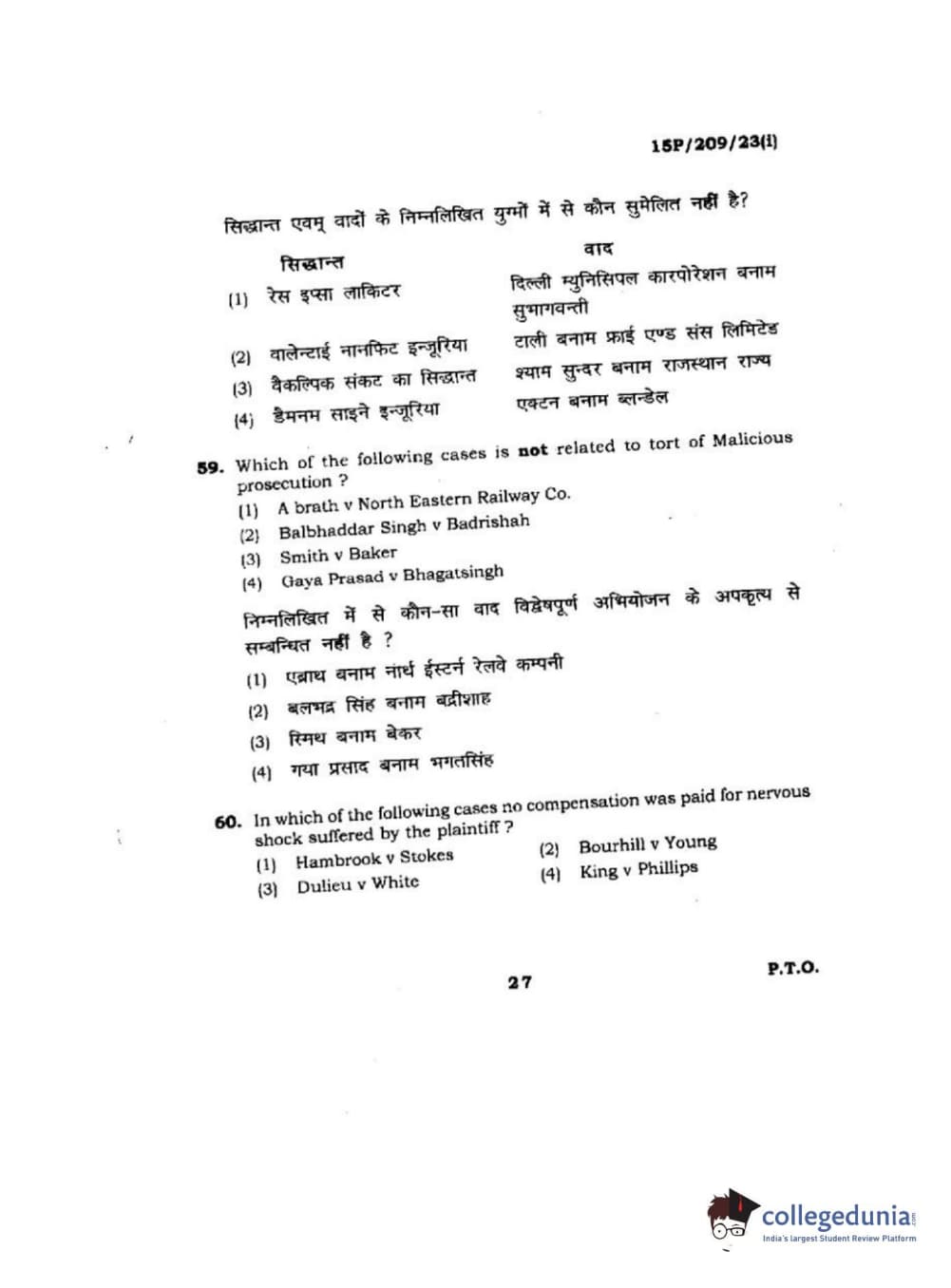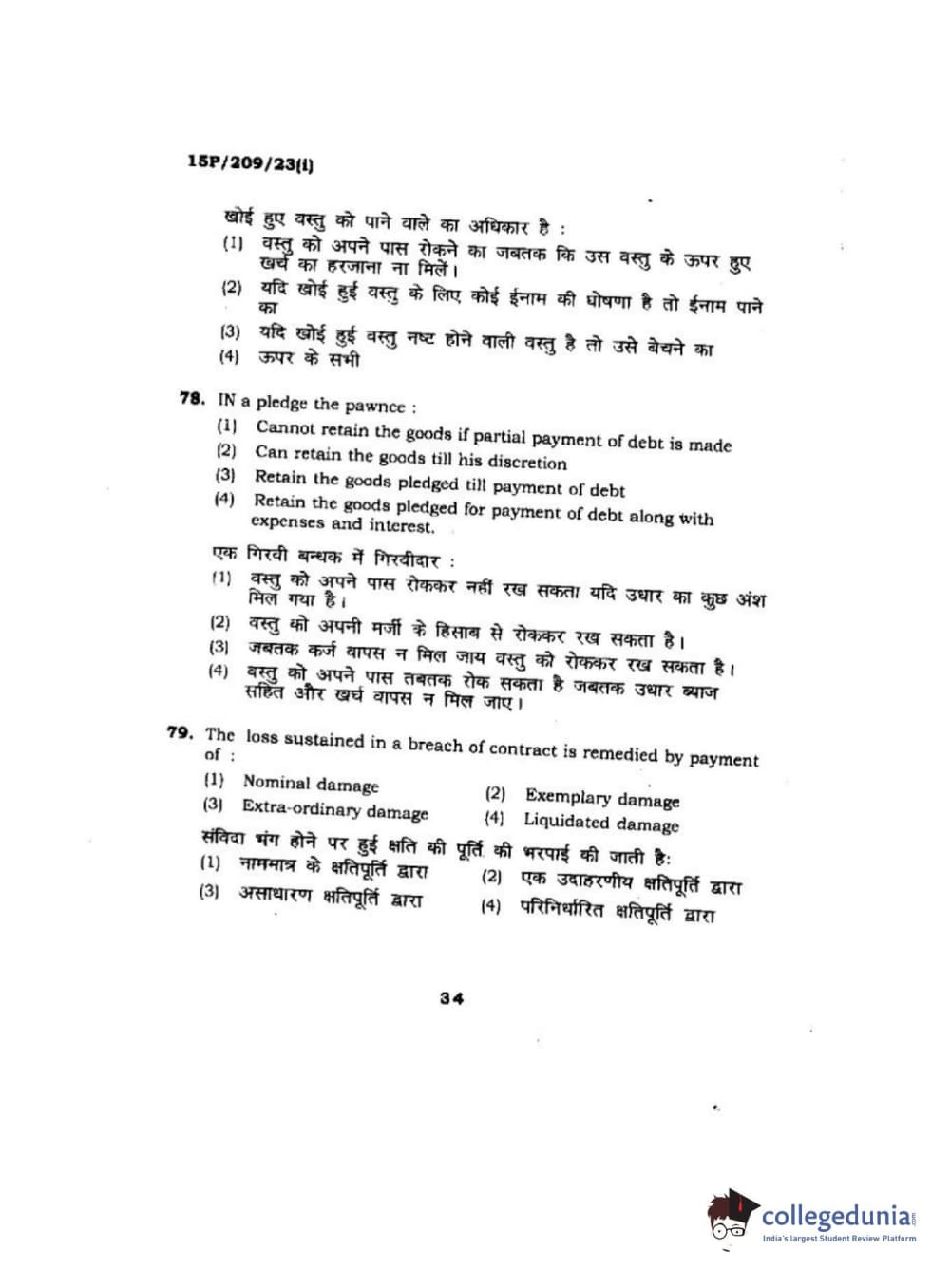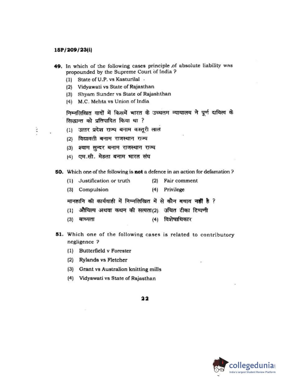 BHU PET 2015 LLM Question Paper with Answer Key PDFs