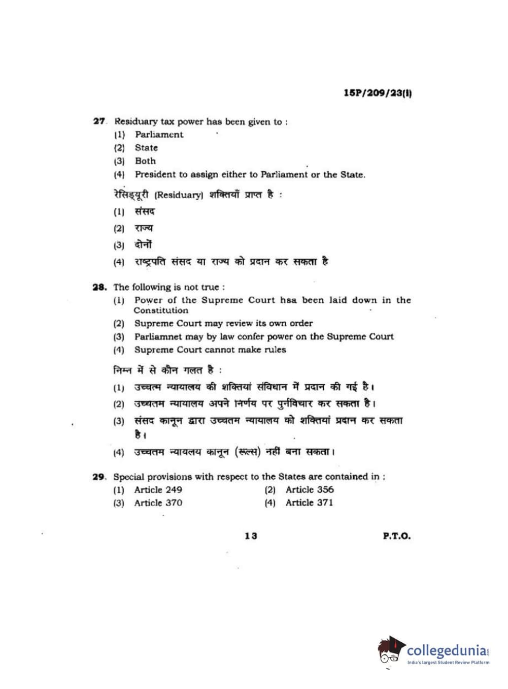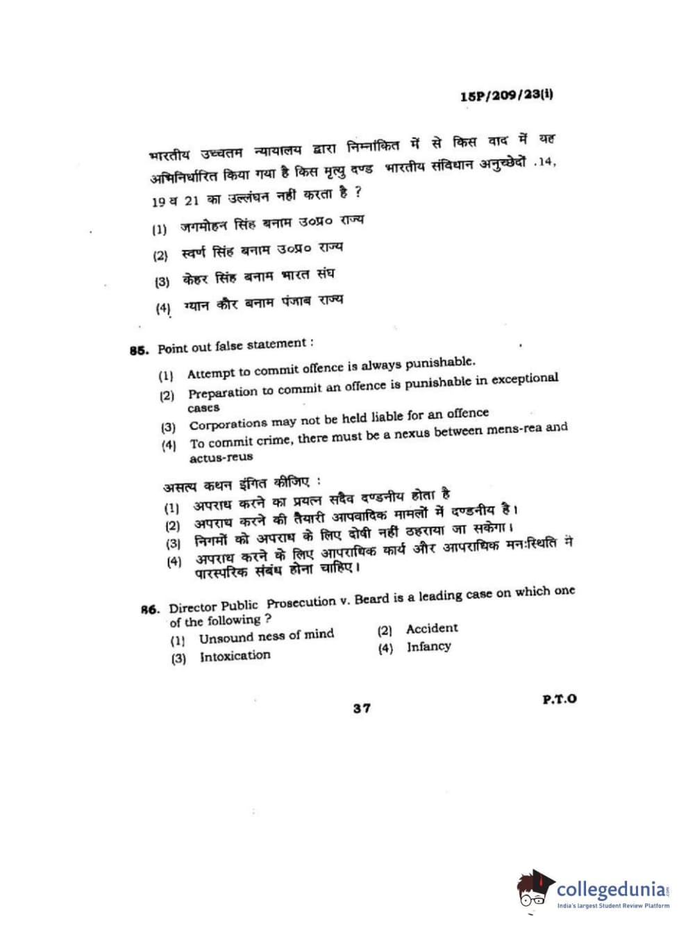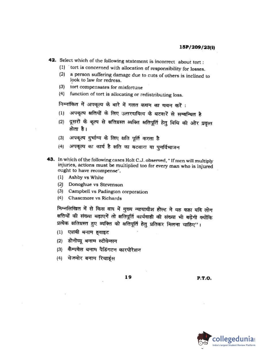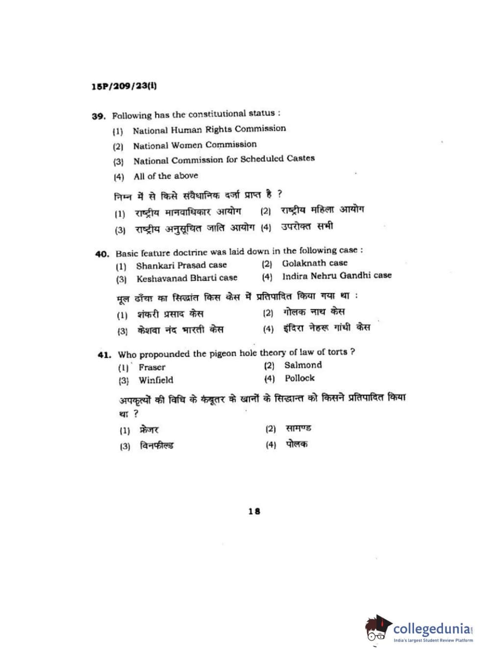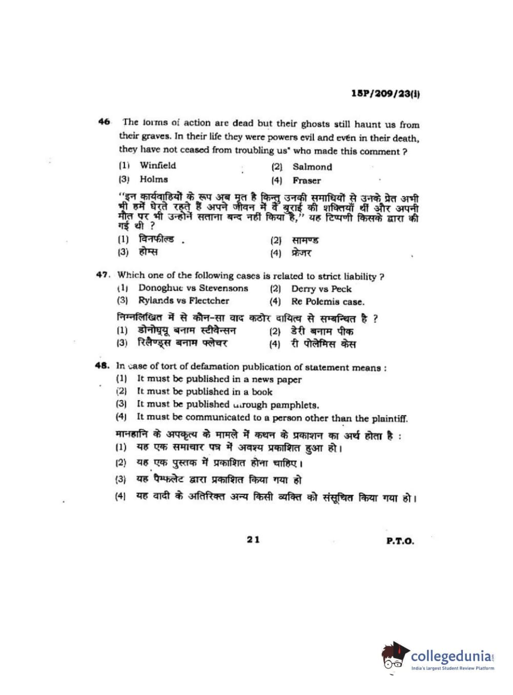 BHU PET 2015 LLM Question Paper with Answer Key PDFs