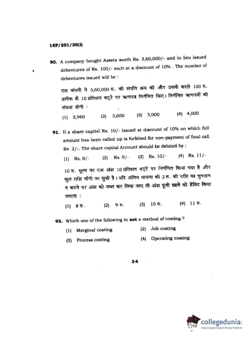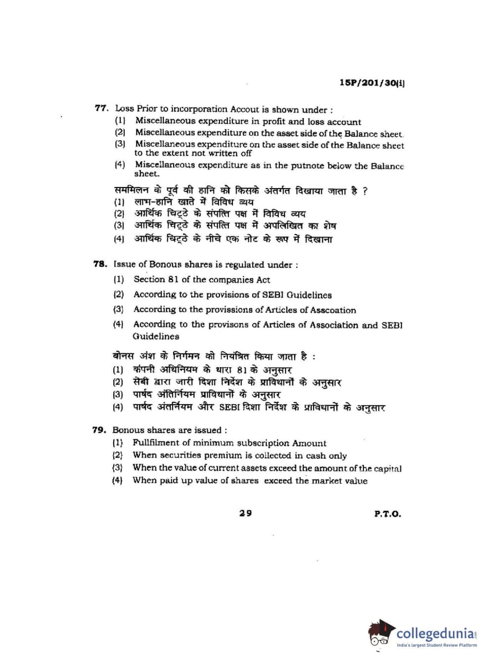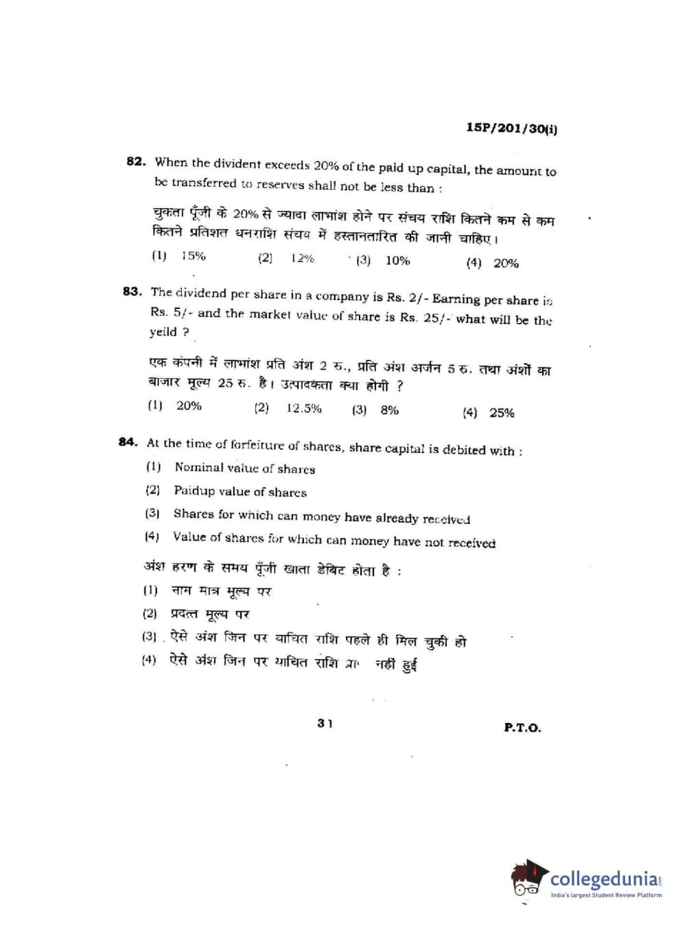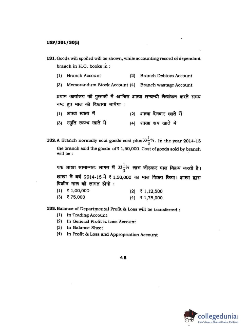 BHU PET 2015 M. com Question Paper with Answer Key PDFs