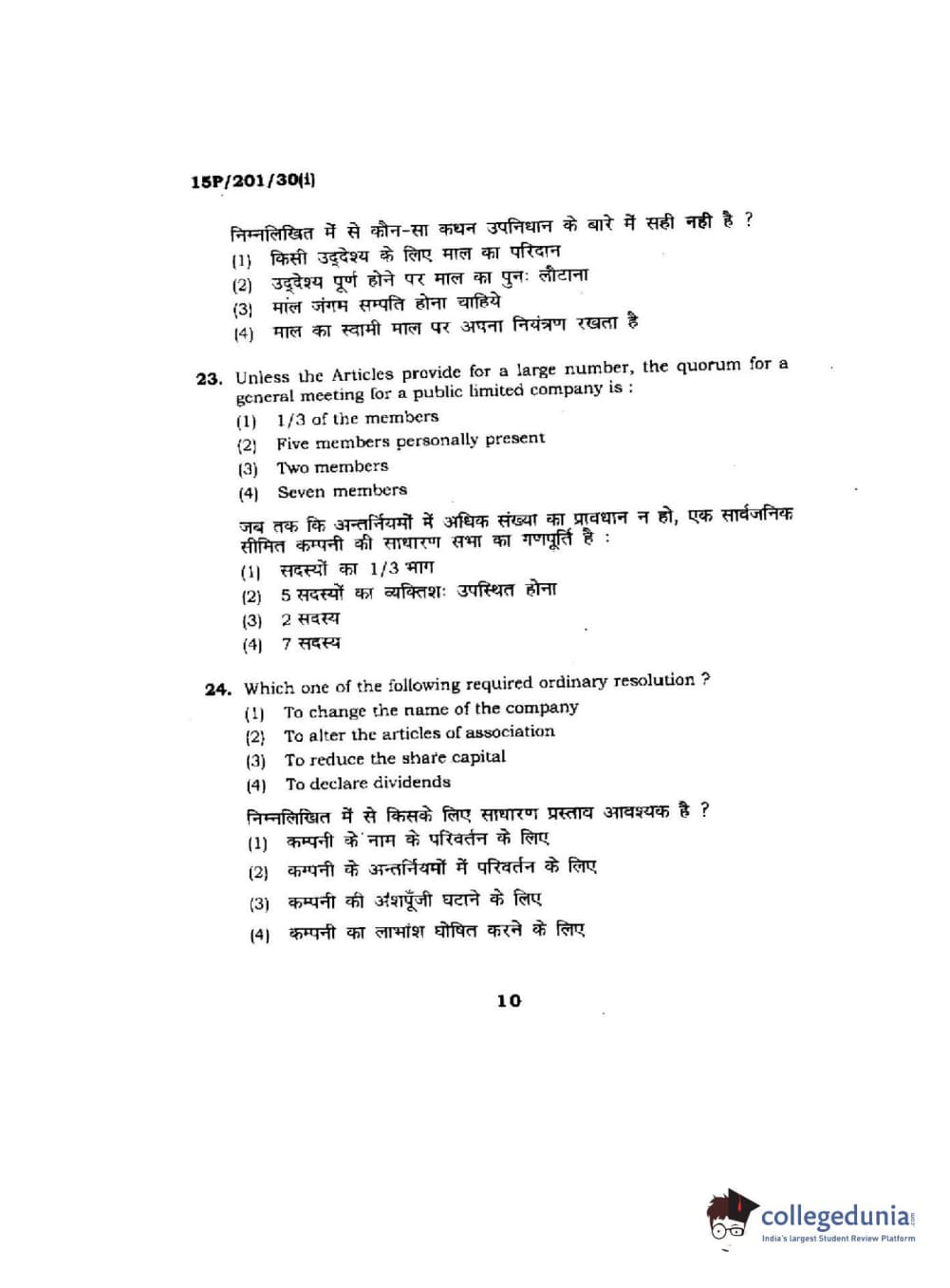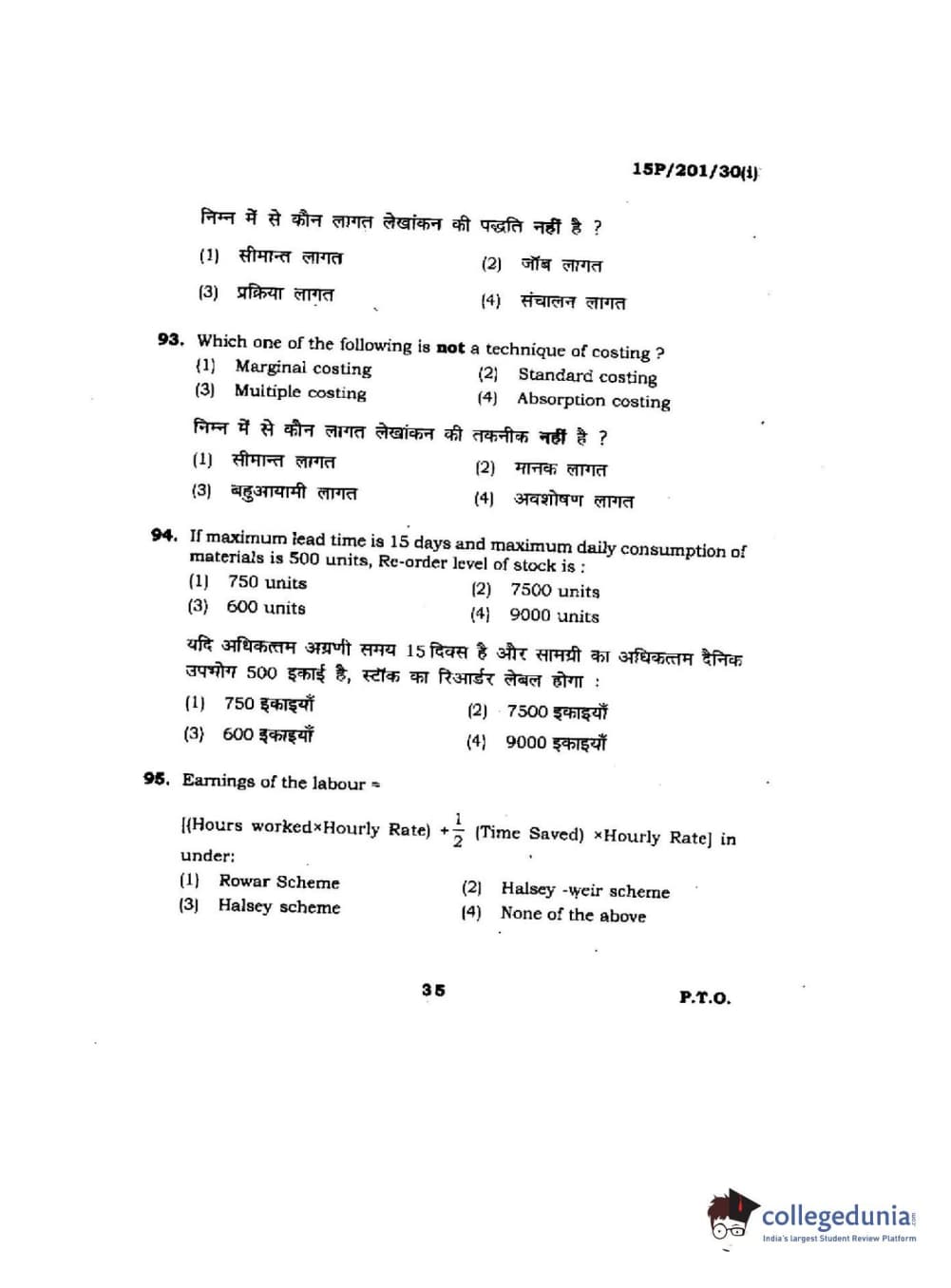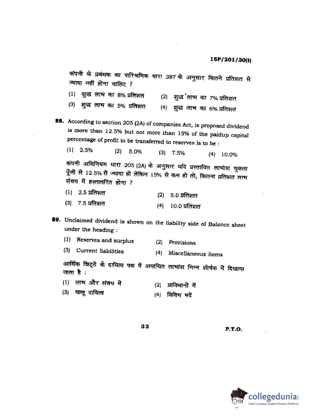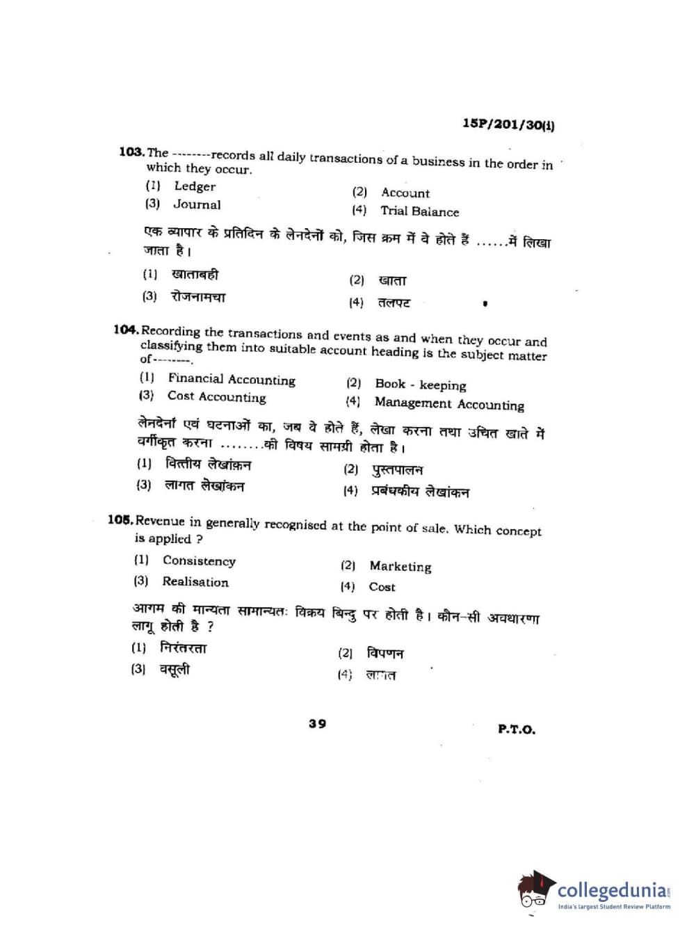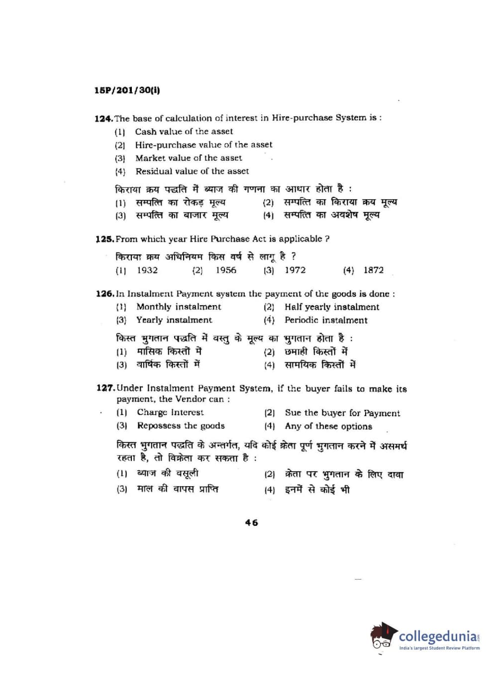 BHU PET 2015 M. com Question Paper with Answer Key PDFs