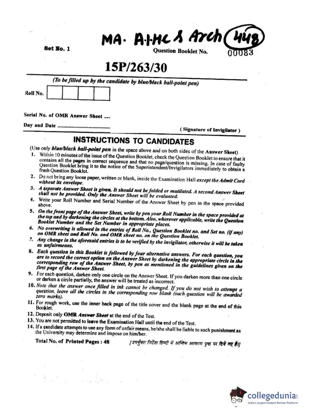 BHU PET 2015 MA. AIHC & ARCH Question paper with answer key pdf is available for download. The exam was successfully organized by Banaras Hindu University (BHU). The question paper comprised a total of 150 questions.
