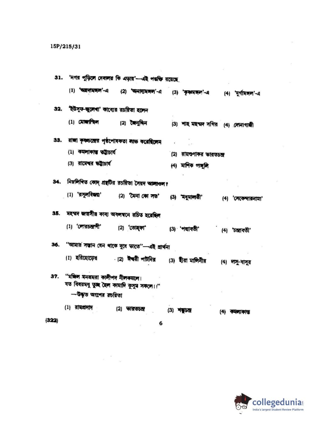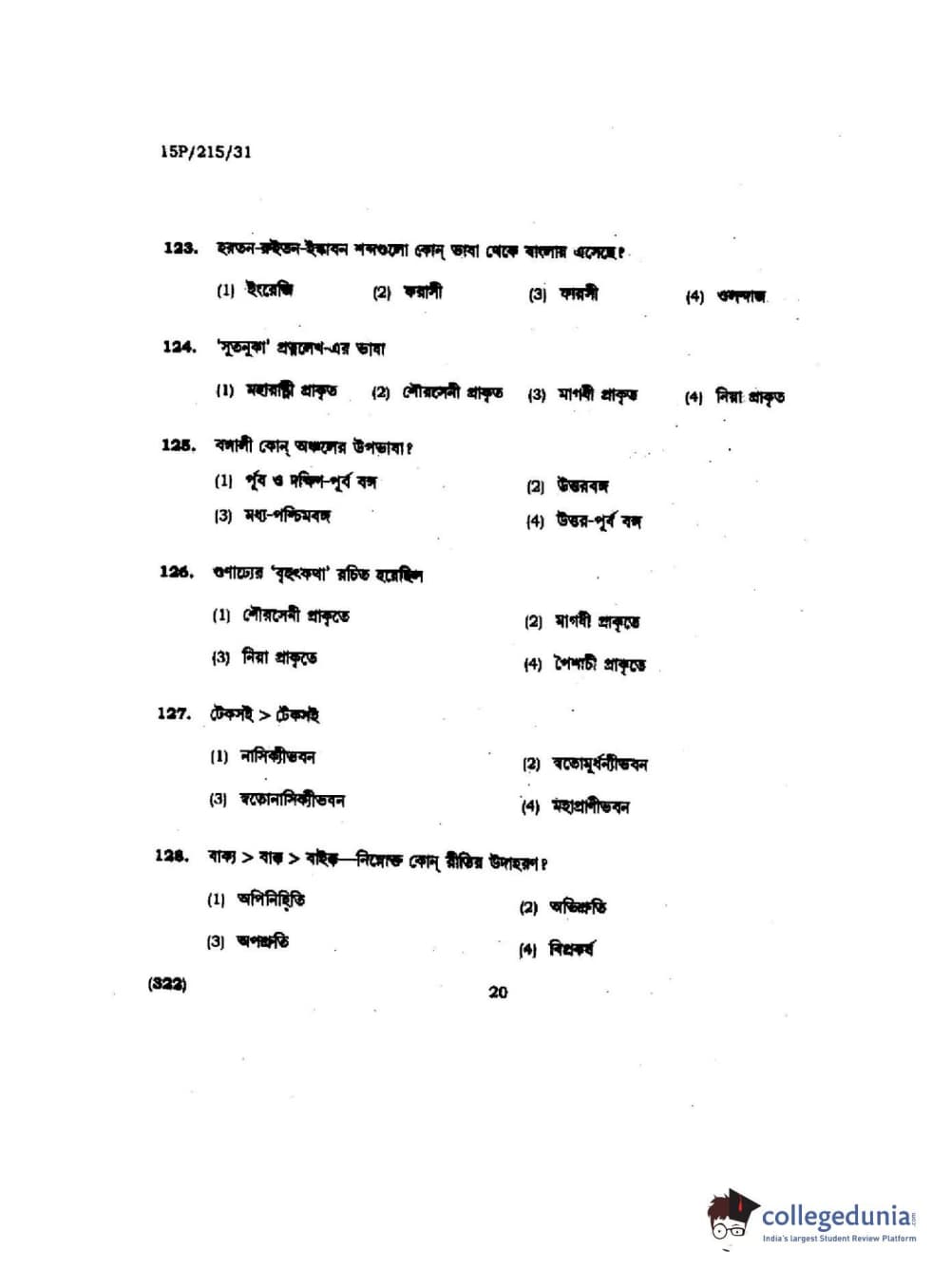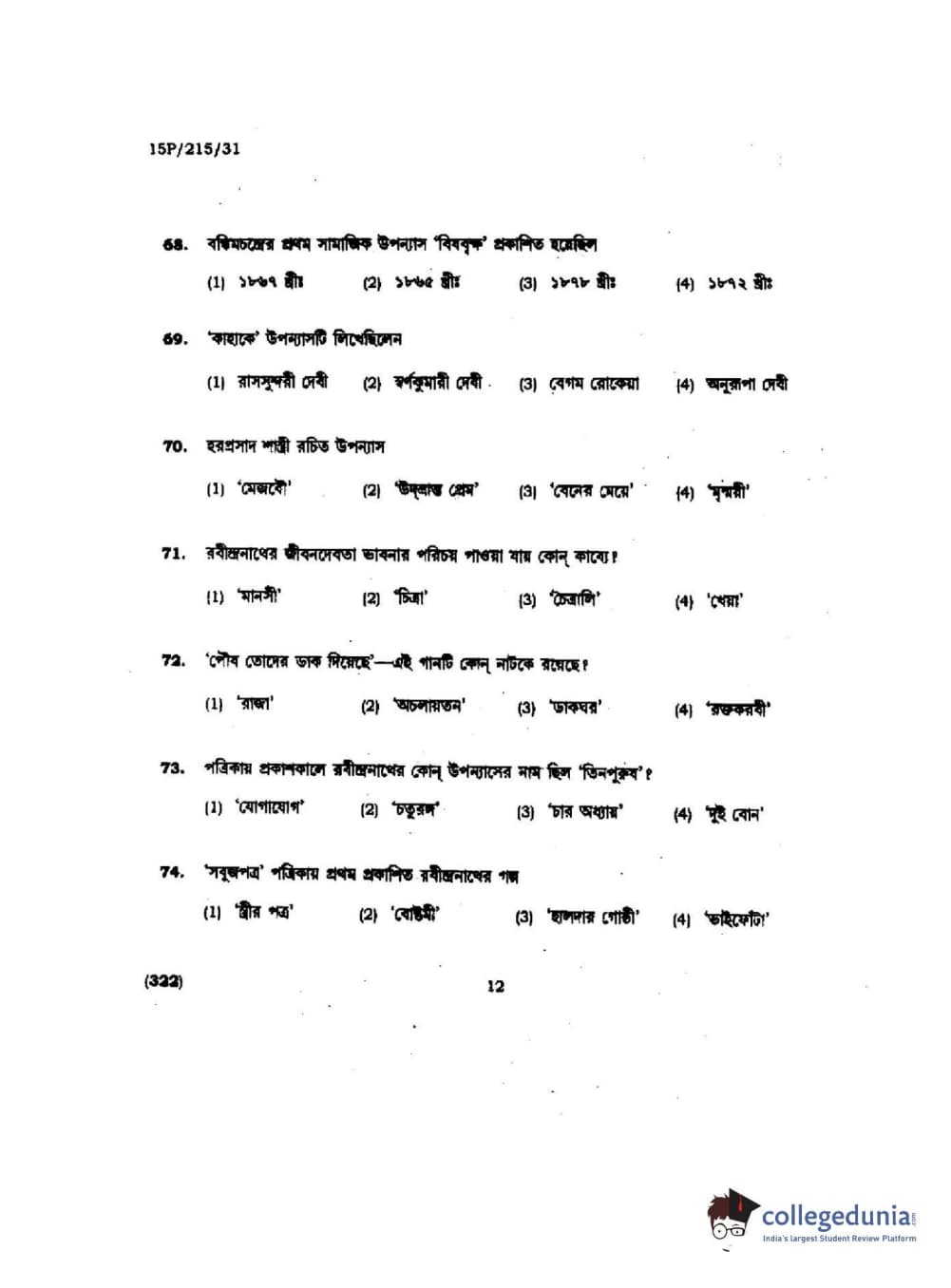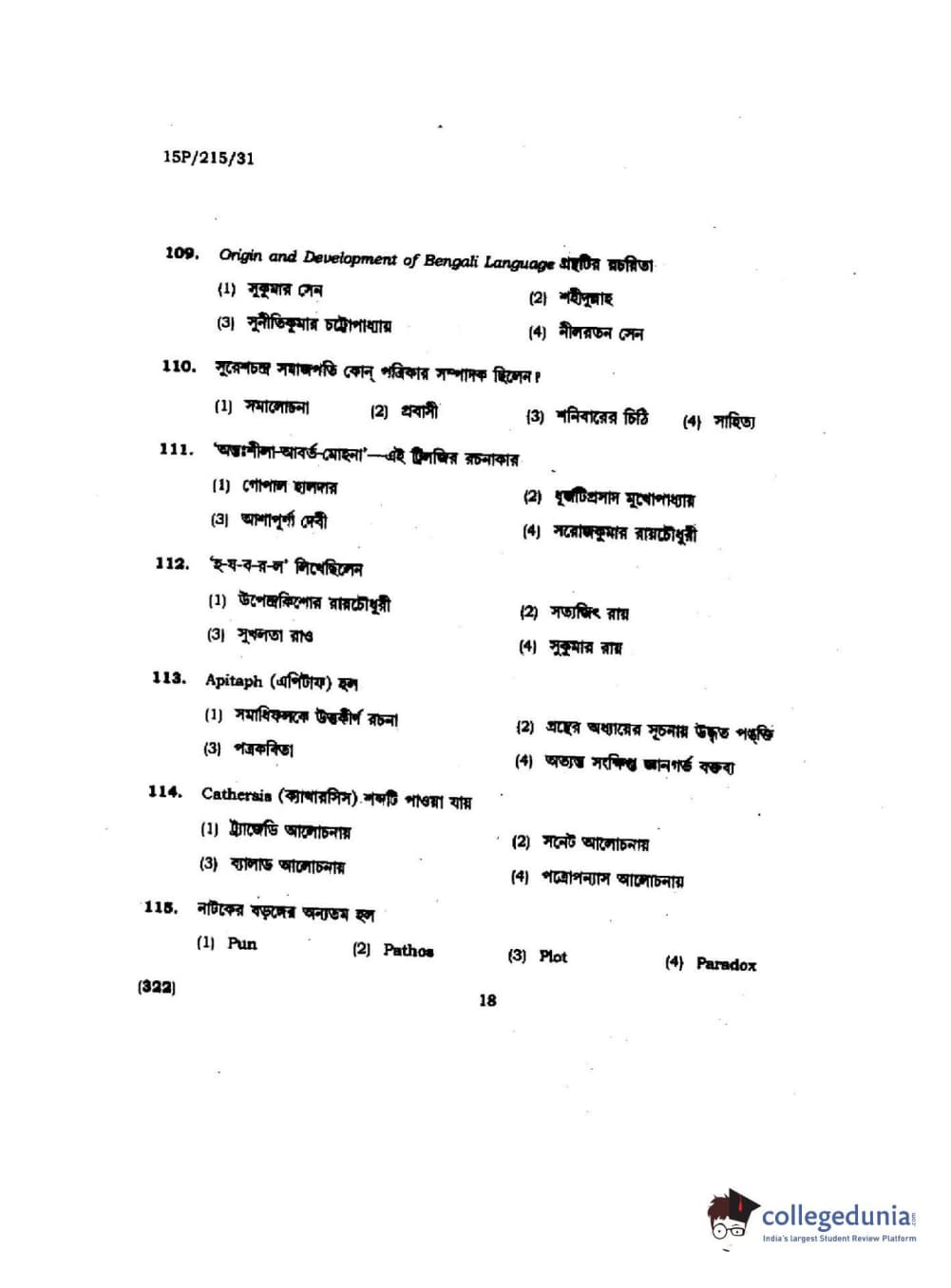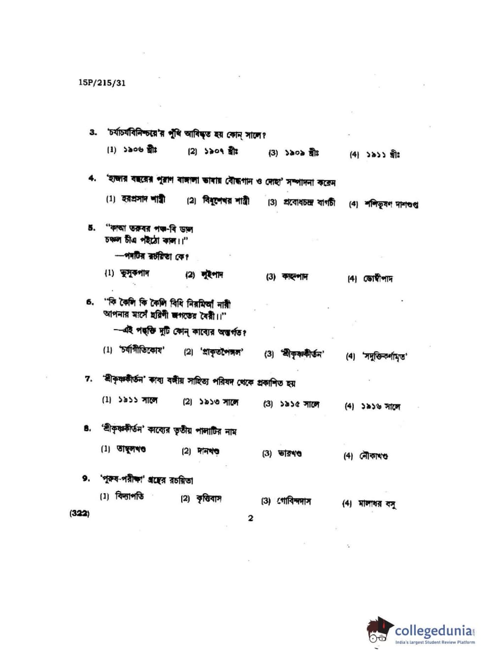 BHU PET 2015 M.A. Bengali Question Paper with Answer Key PDFs