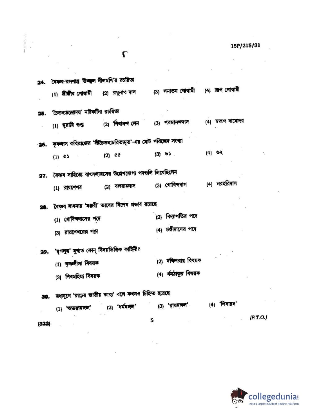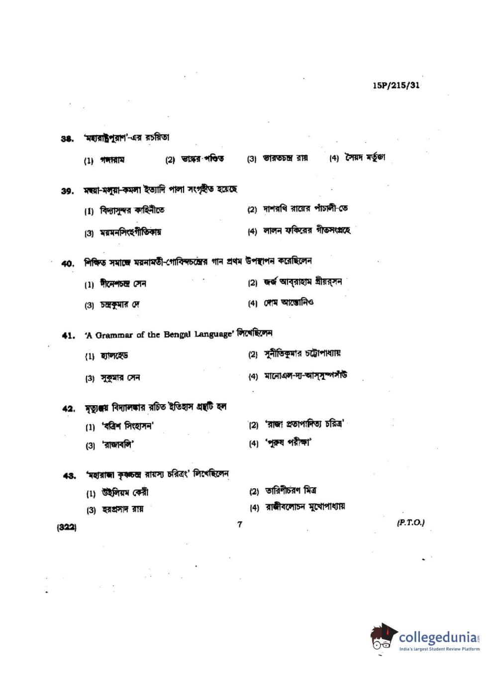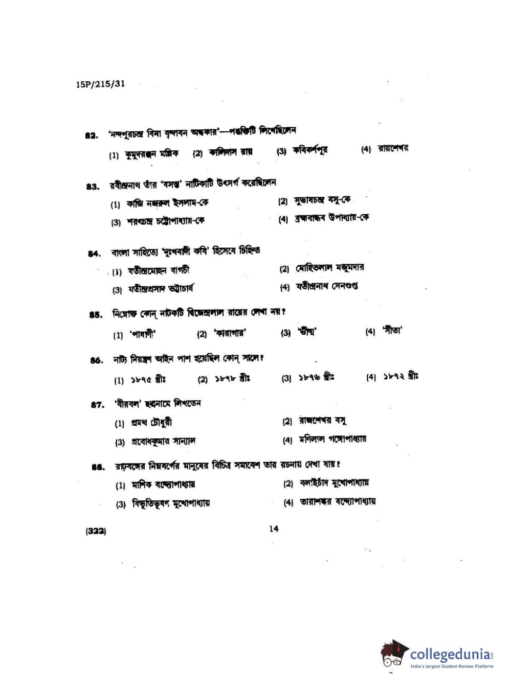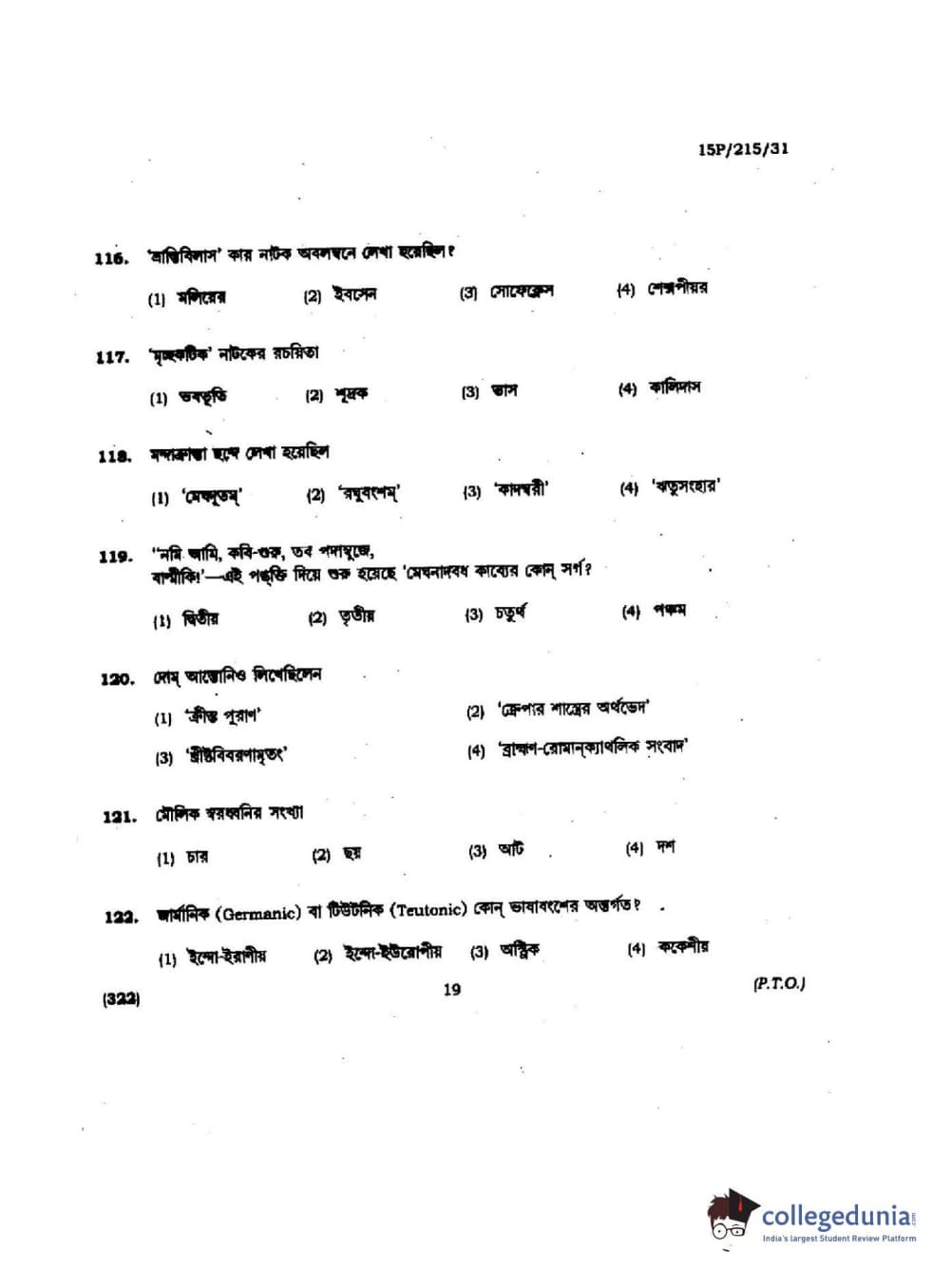 BHU PET 2015 M.A. Bengali Question Paper with Answer Key PDFs