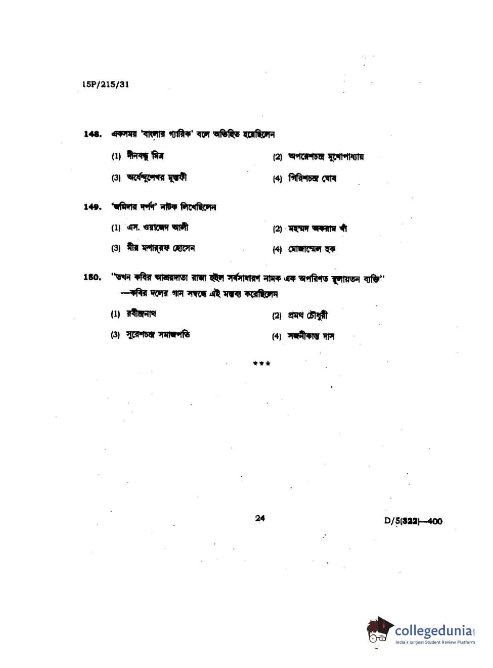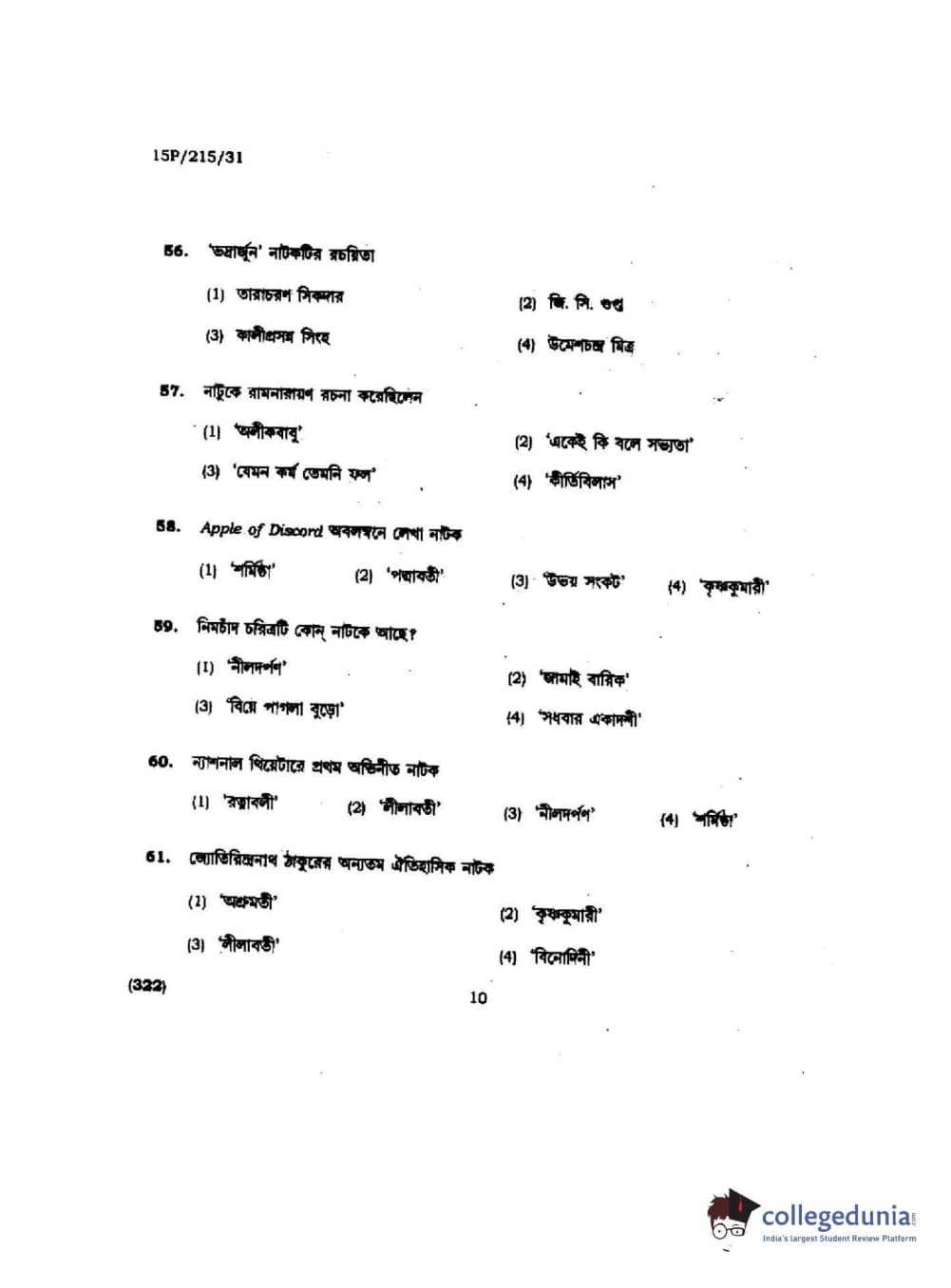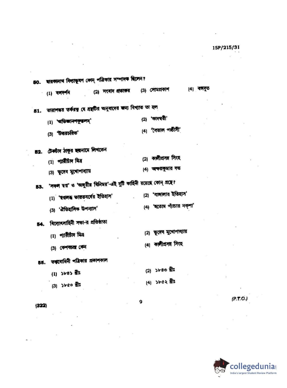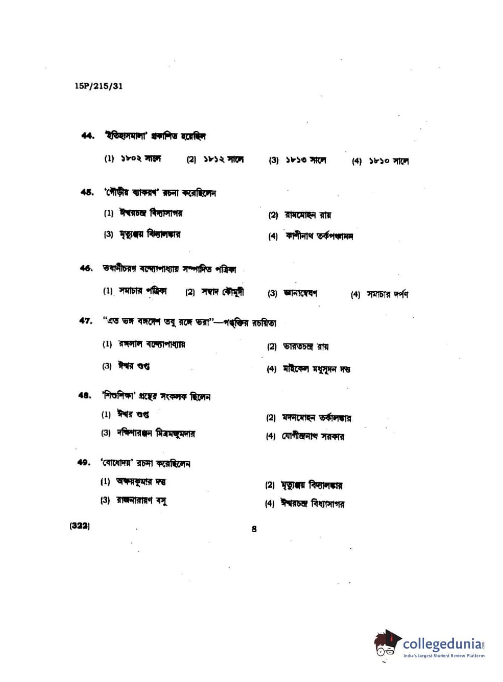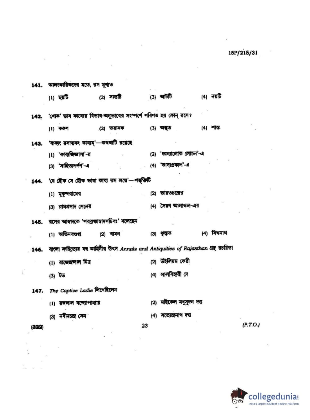 BHU PET 2015 M.A. Bengali Question Paper with Answer Key PDFs