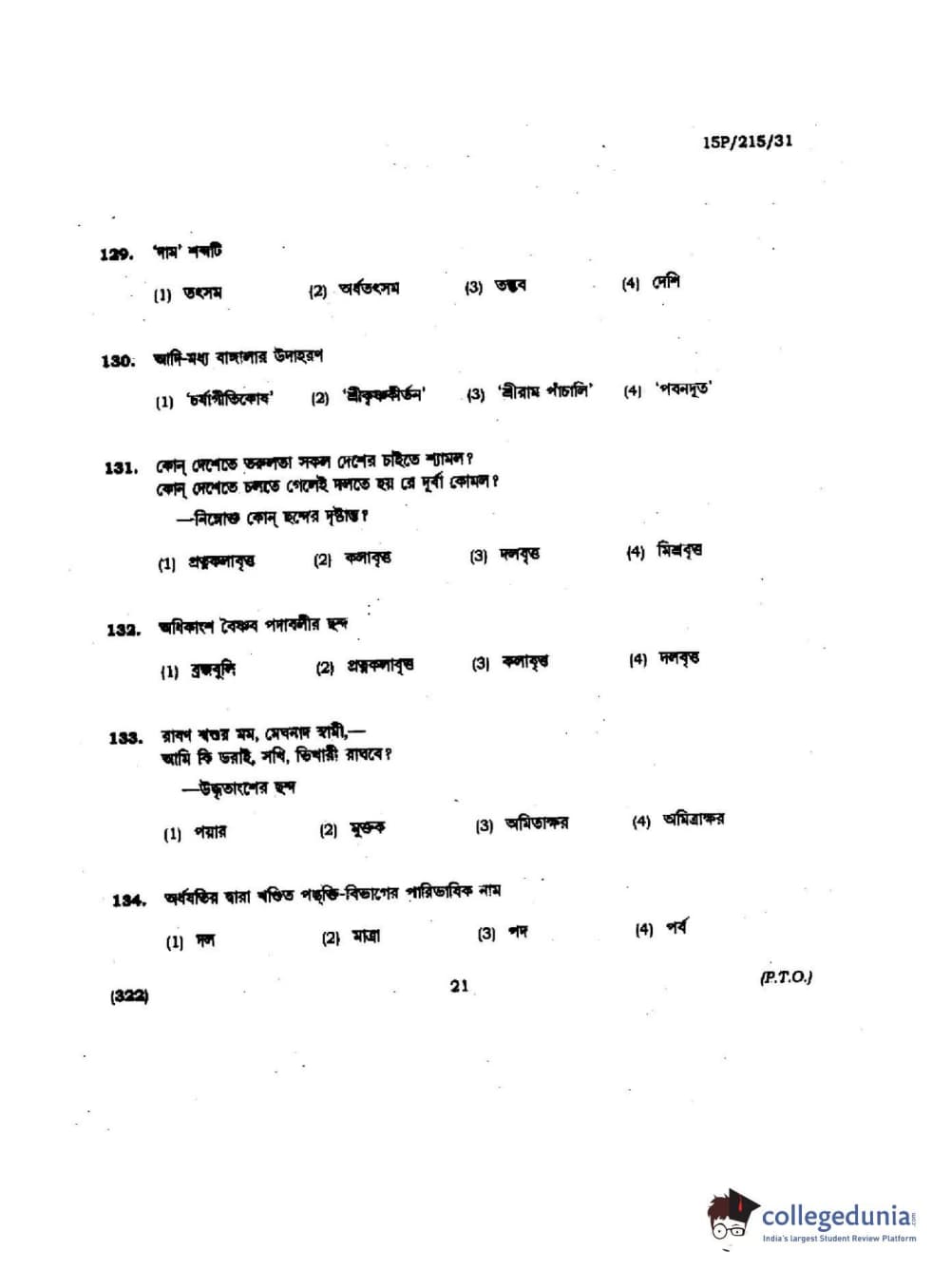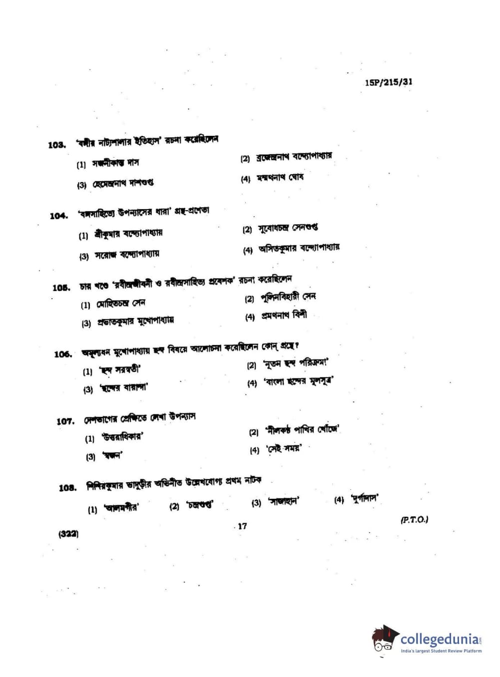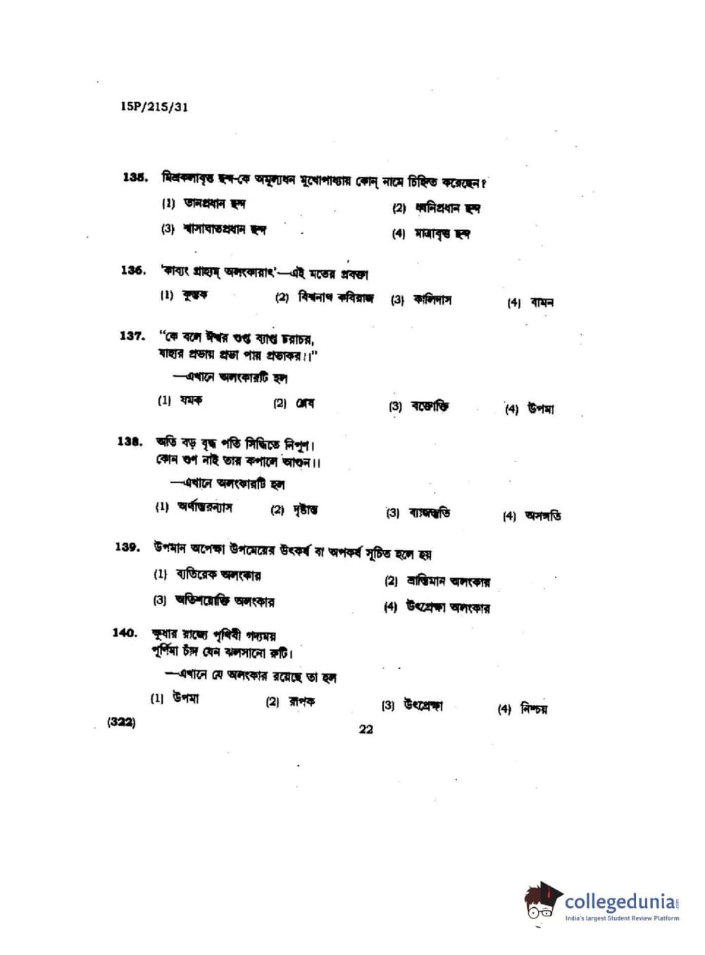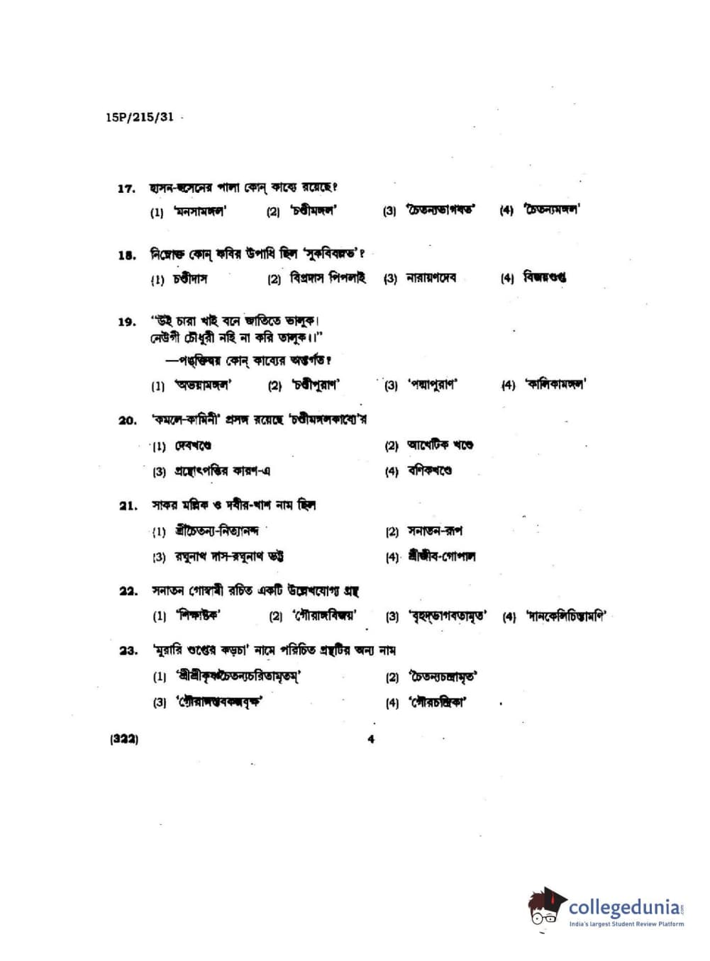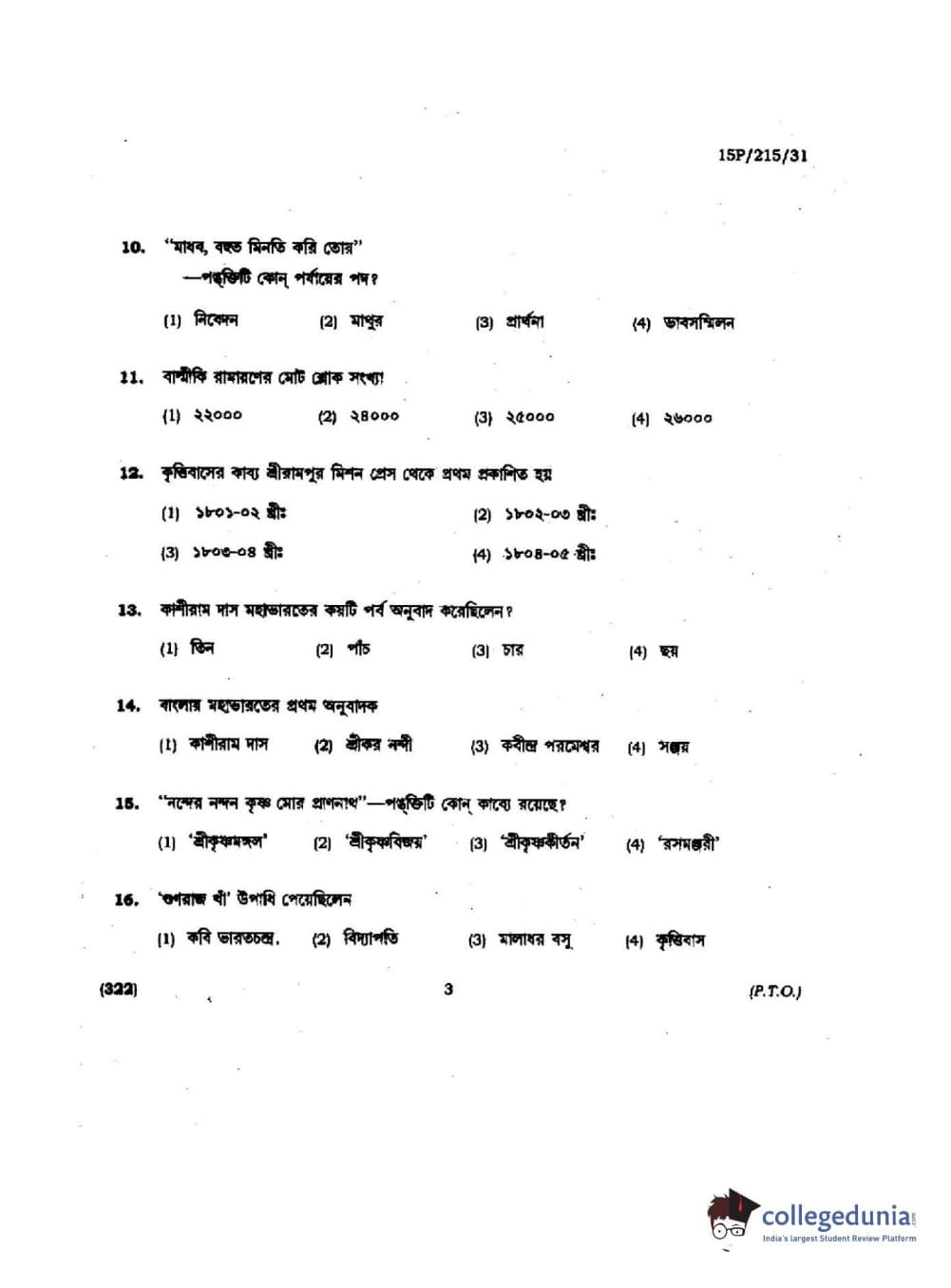 BHU PET 2015 M.A. Bengali Question Paper with Answer Key PDFs