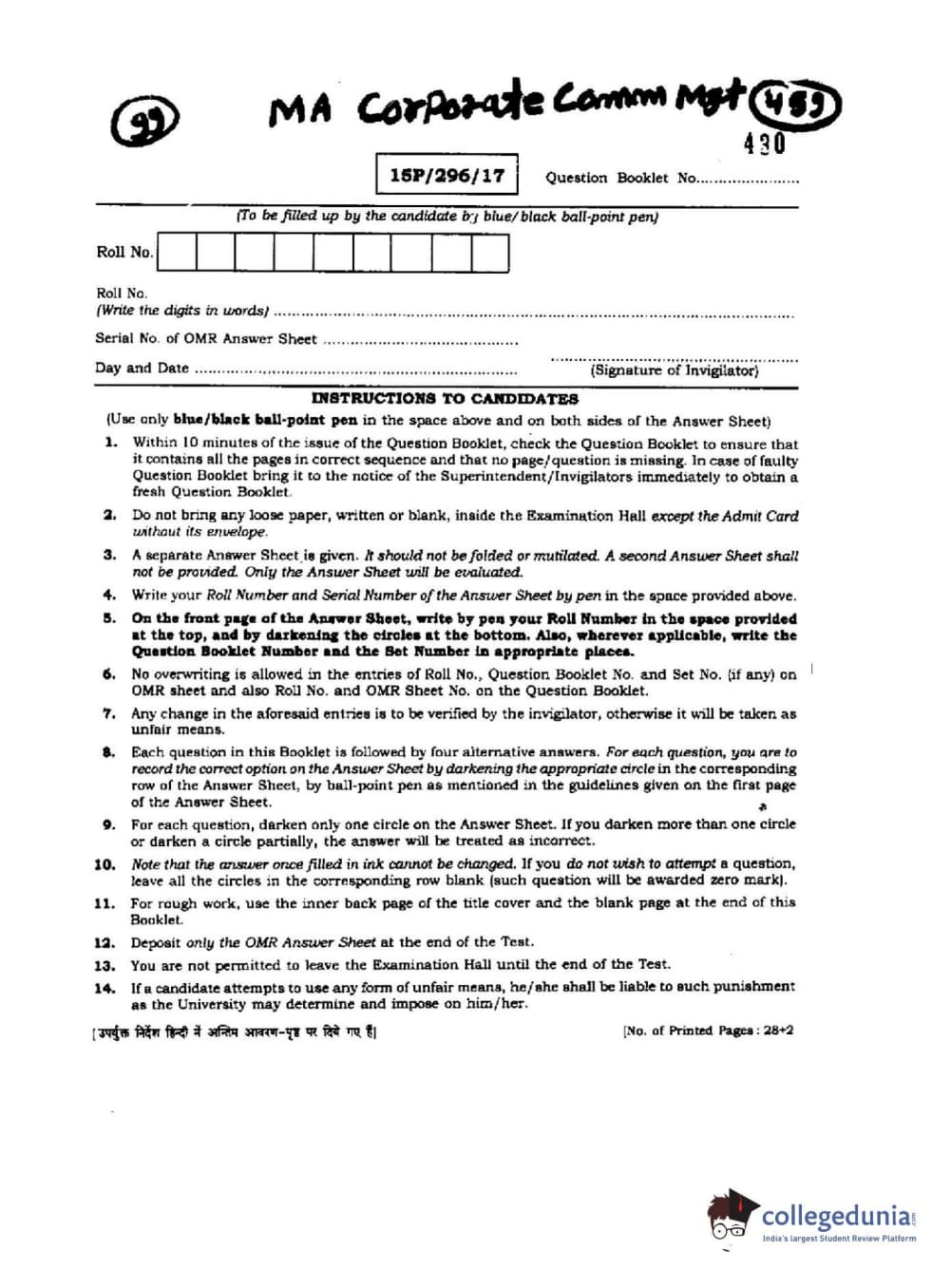 BHU PET 2015 M.A. Corporate Comm. Mgt Question paper with answer key pdf is available for download. The exam was successfully organized by Banaras Hindu University (BHU). The question paper comprised a total of 150 questions.