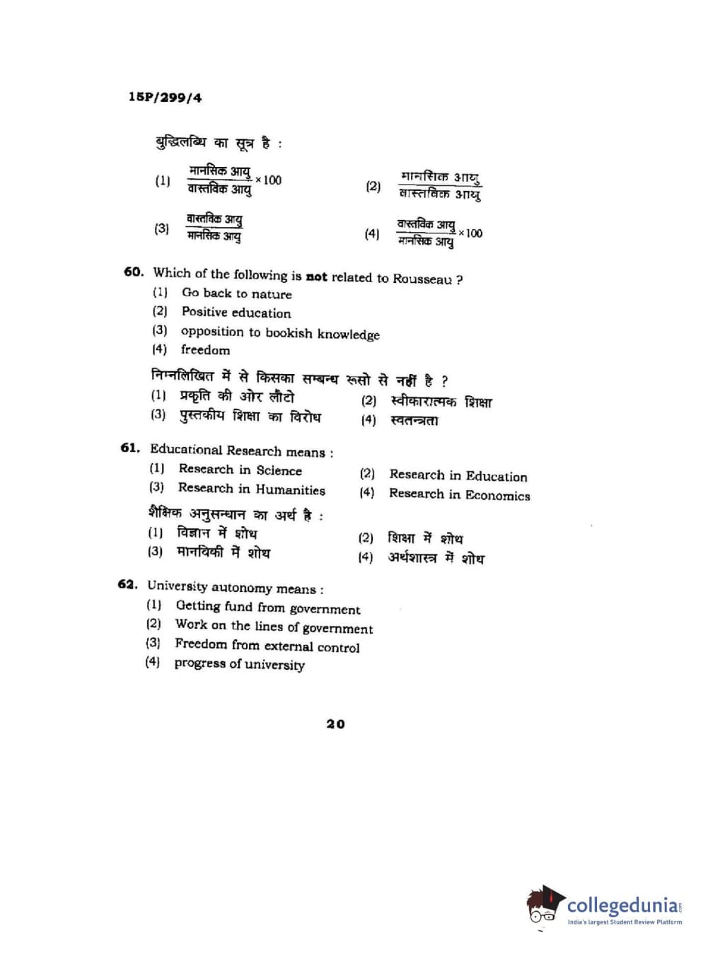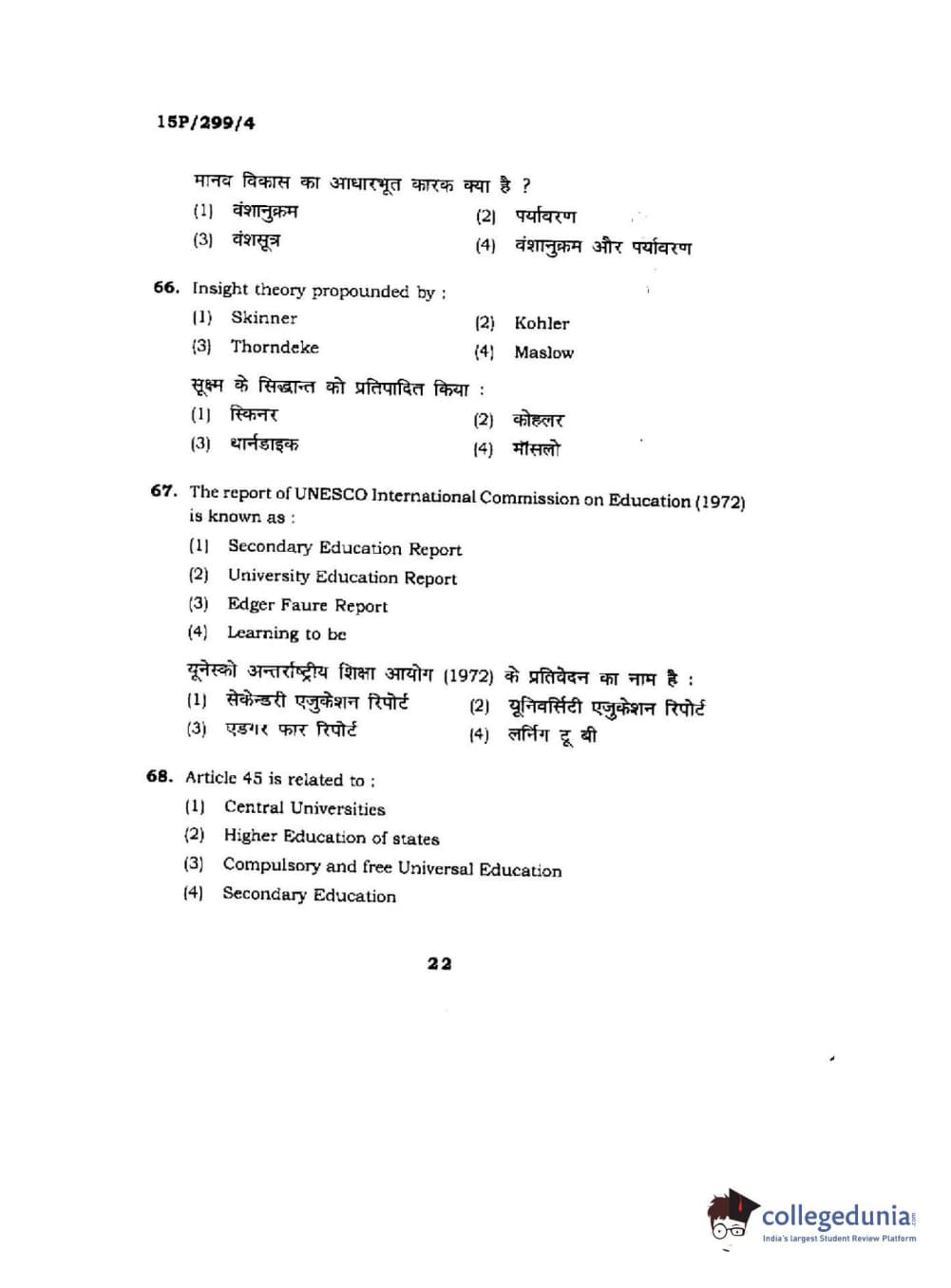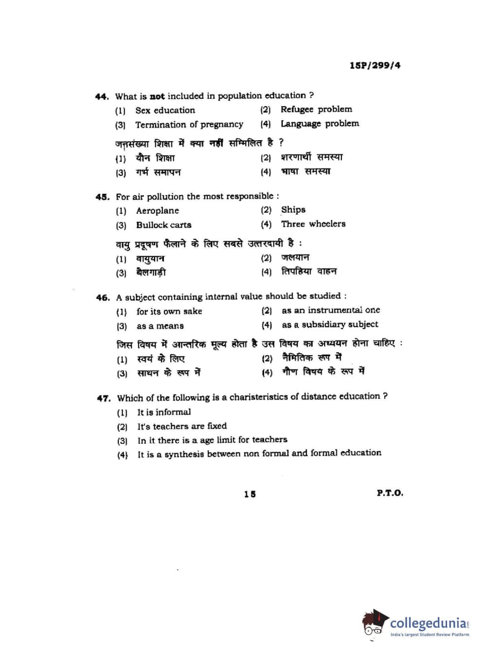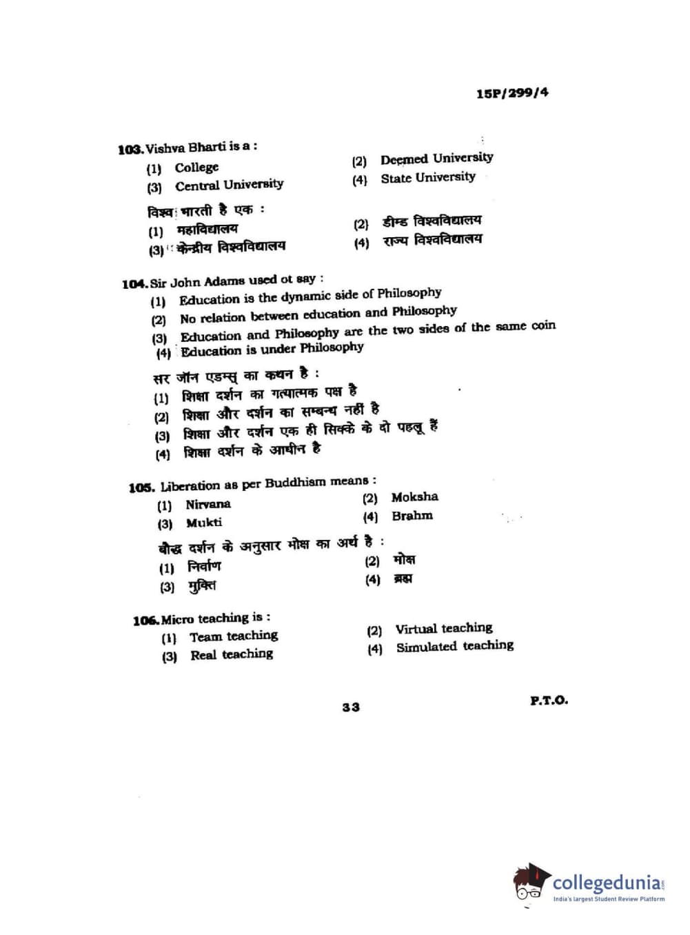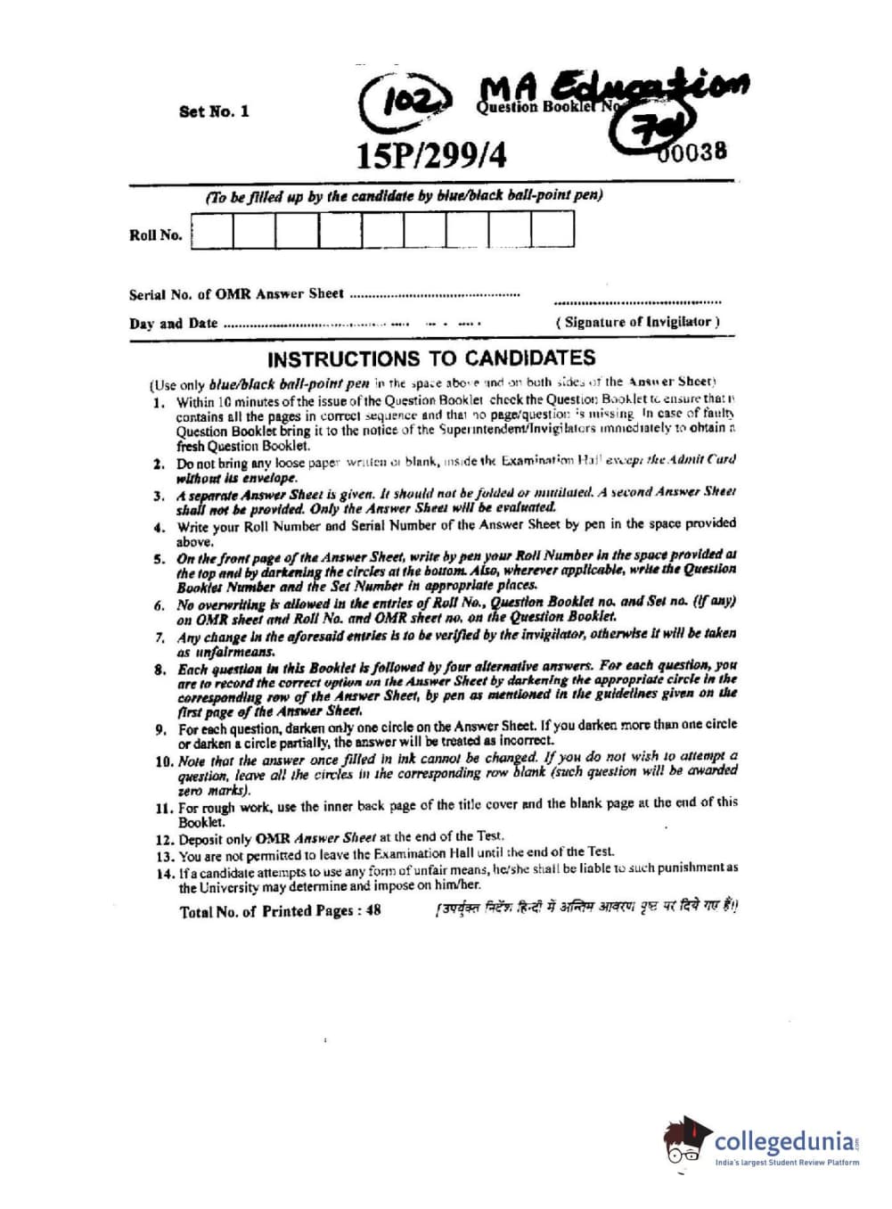 BHU PET 2015 M.A. Education Question paper with answer key pdf is available for download. The exam was successfully organized by Banaras Hindu University (BHU). The question paper comprised a total of 150 questions.