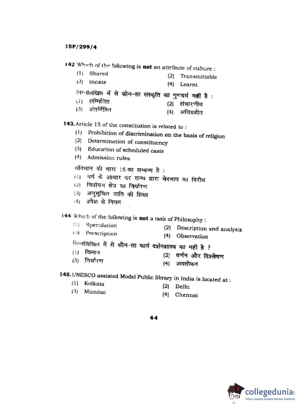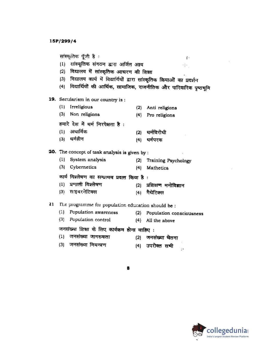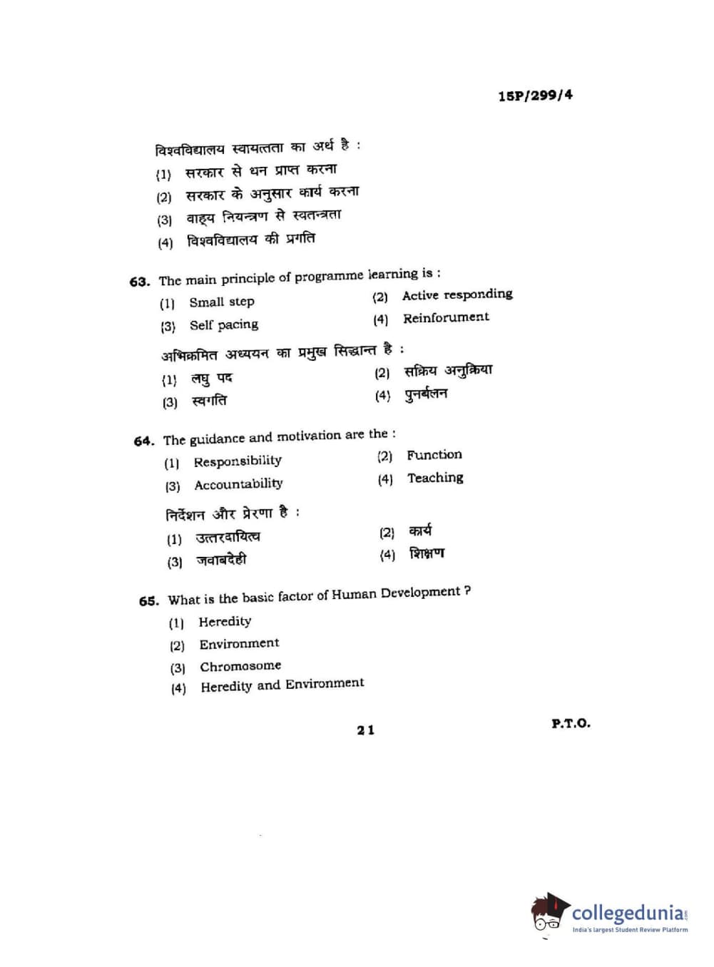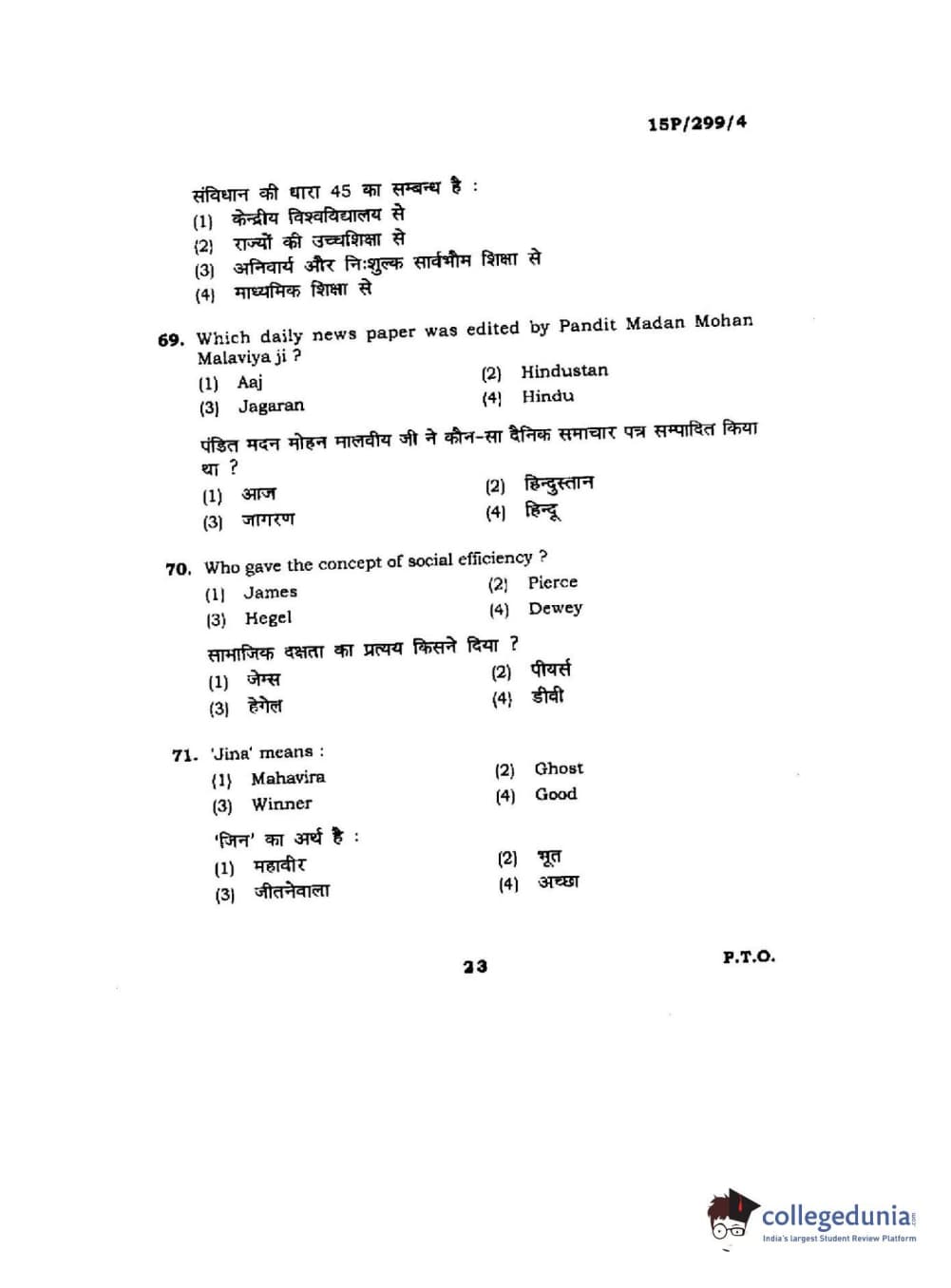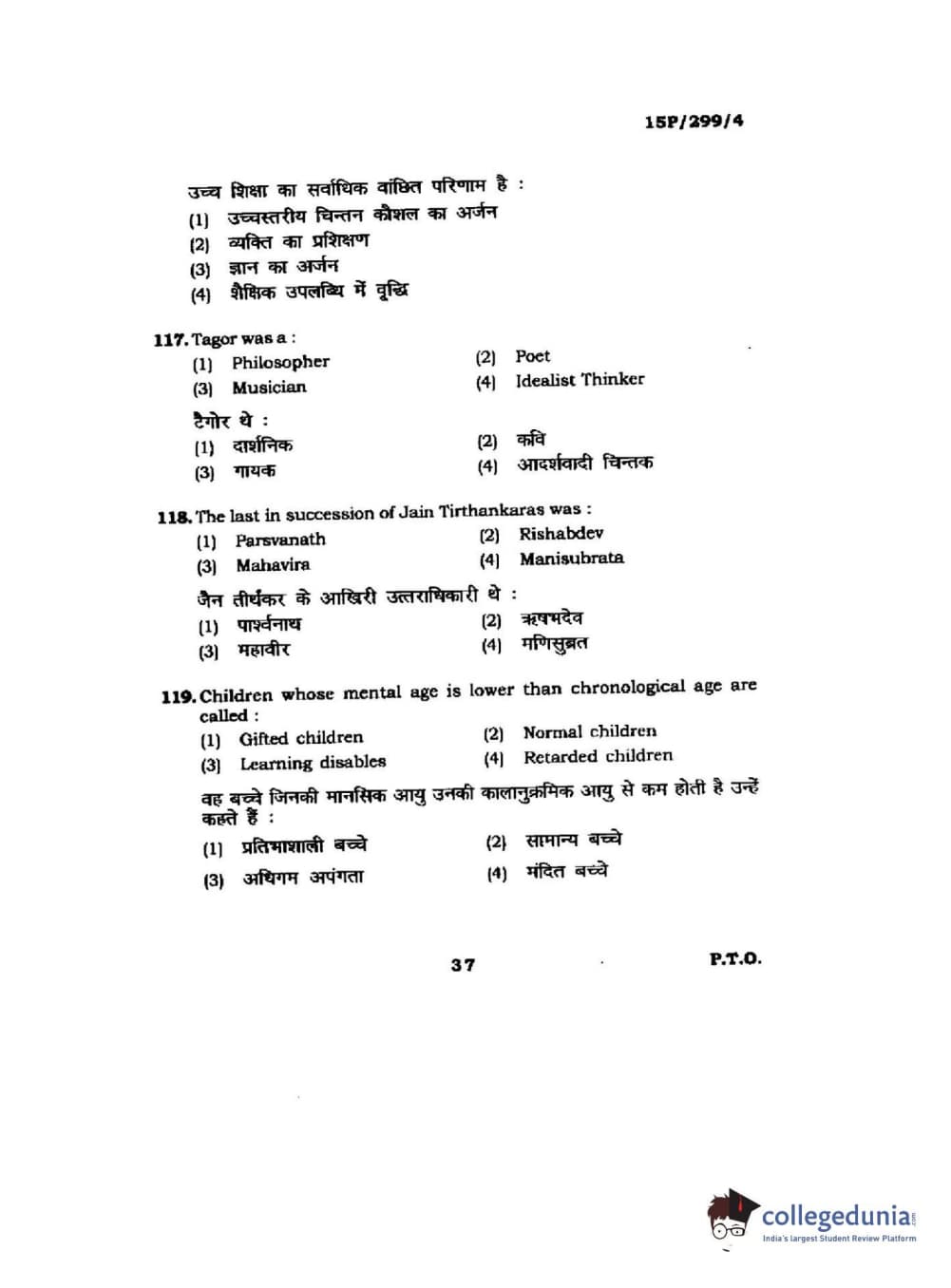 BHU PET 2015 M.A. Education Question paper with answer key pdf is available for download. The exam was successfully organized by Banaras Hindu University (BHU). The question paper comprised a total of 150 questions.