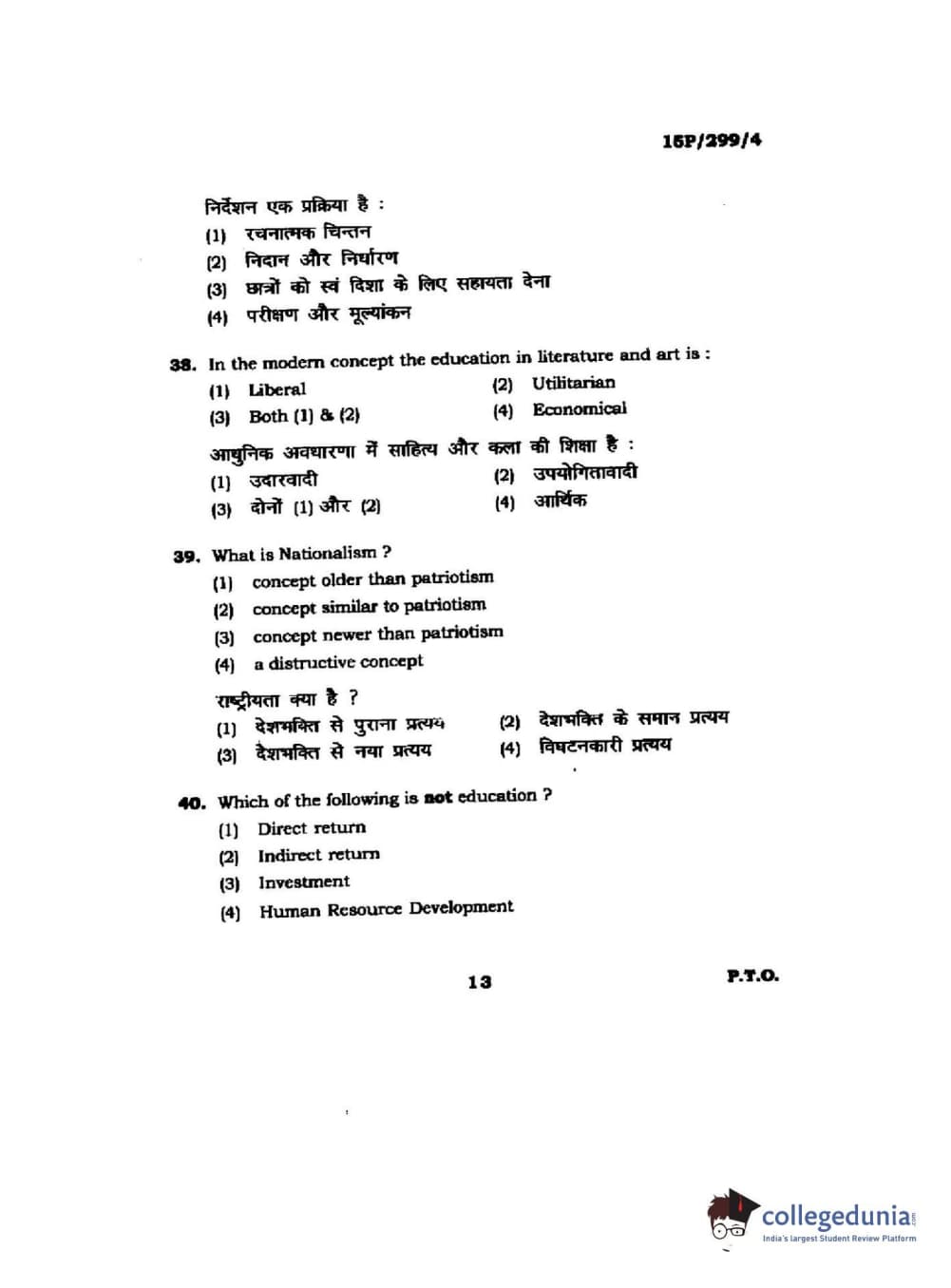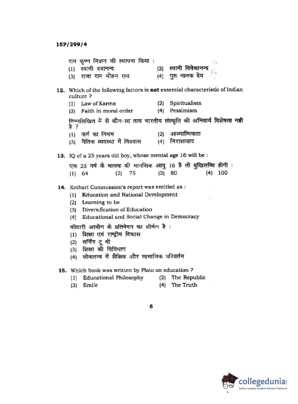 BHU PET 2015 M.A. Education Question Paper with Answer Key PDFs