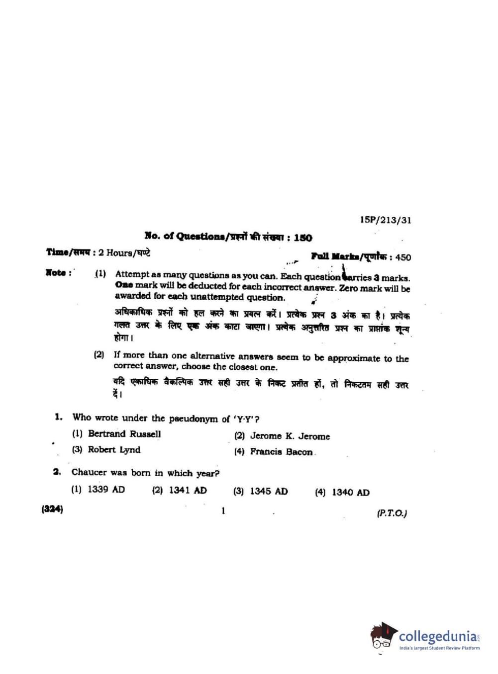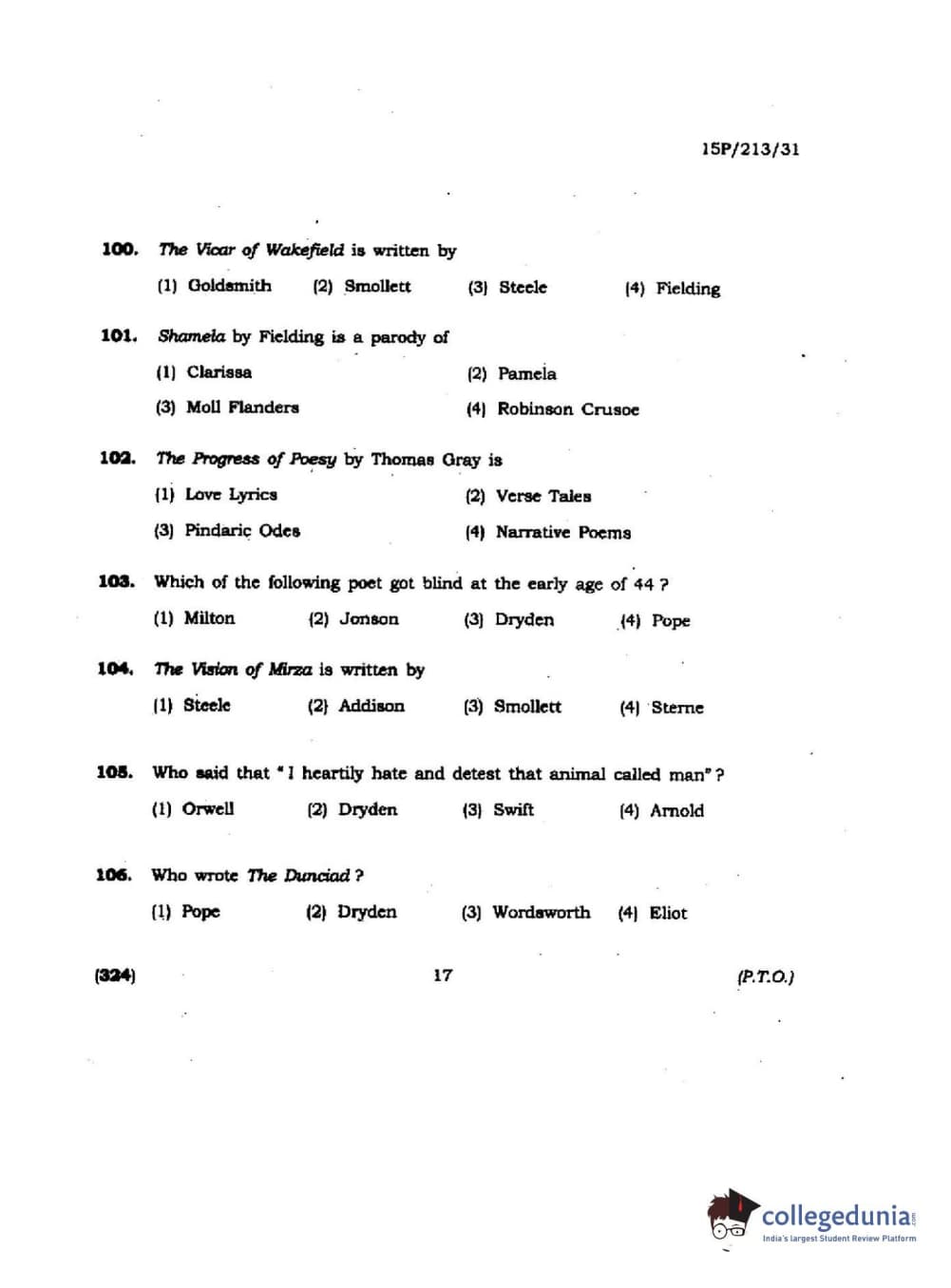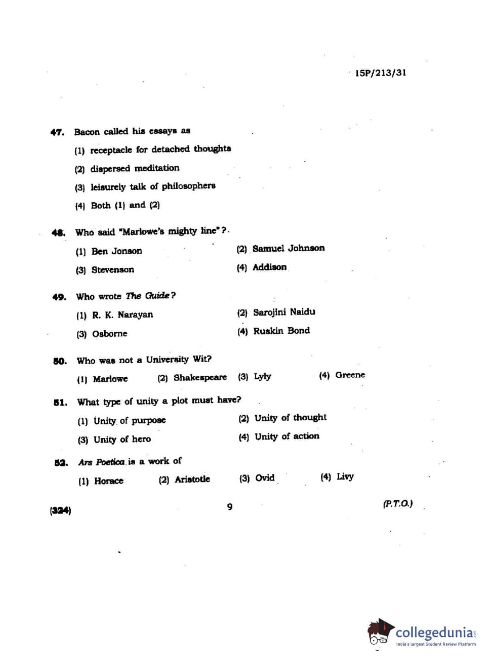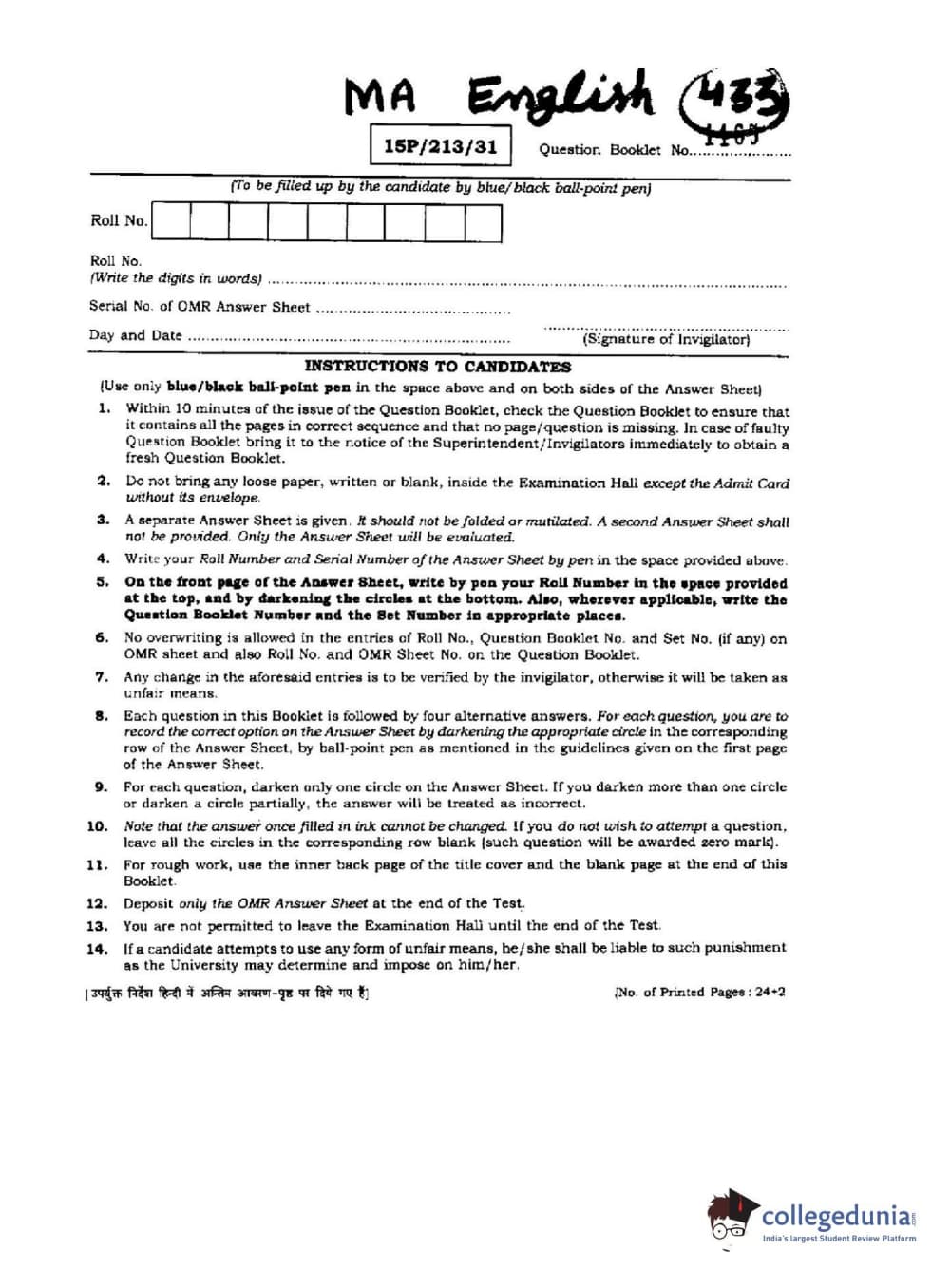 BHU PET 2015 M.A. English Question paper with answer key pdf is available for download. The exam was successfully organized by Banaras Hindu University (BHU). The question paper comprised a total of 150 questions.