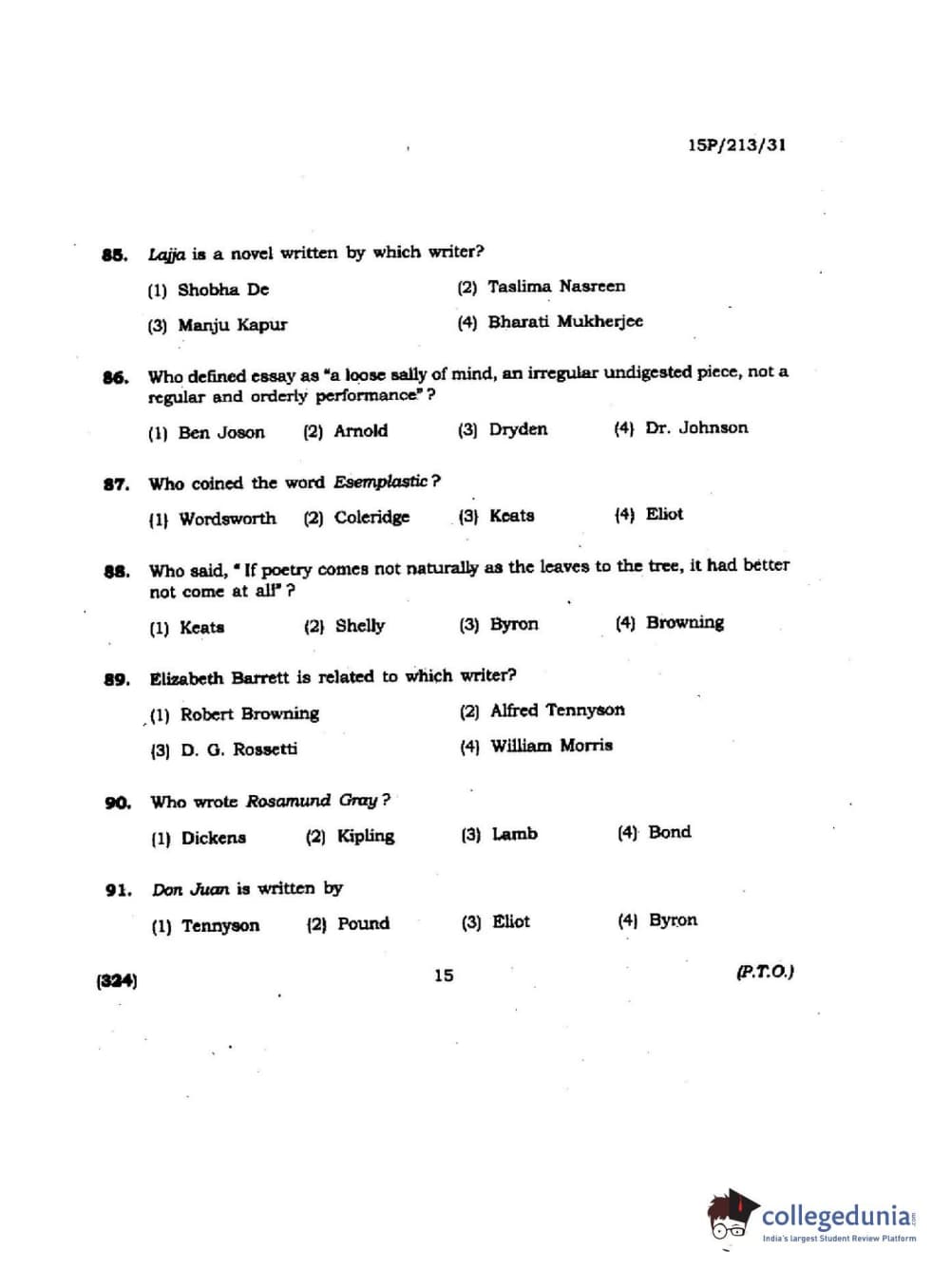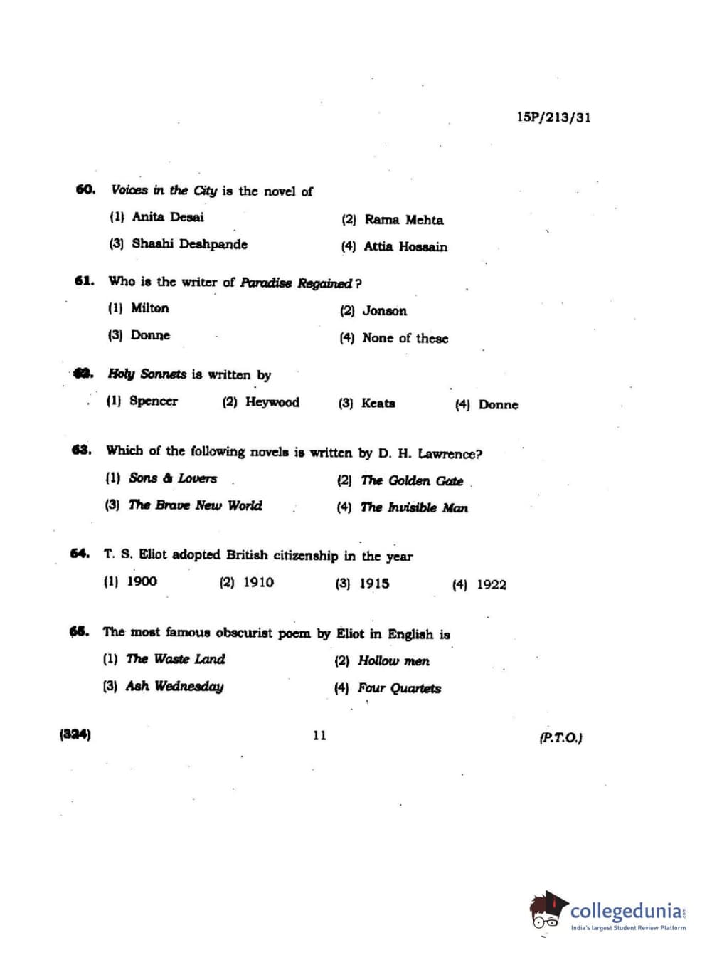 | BHU PET 2015 M.A. English Question Paper PDF | BHU PET 2015 M.A. English Answer Key PDF |