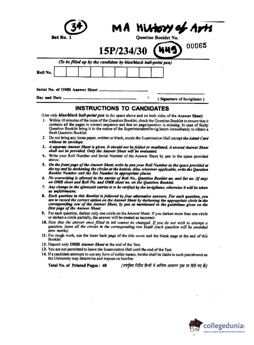 BHU PET 2015 M.A. History Of Arts Question paper with answer key pdf is available for download. The exam was successfully organized by Banaras Hindu University (BHU). The question paper comprised a total of 150 questions.
