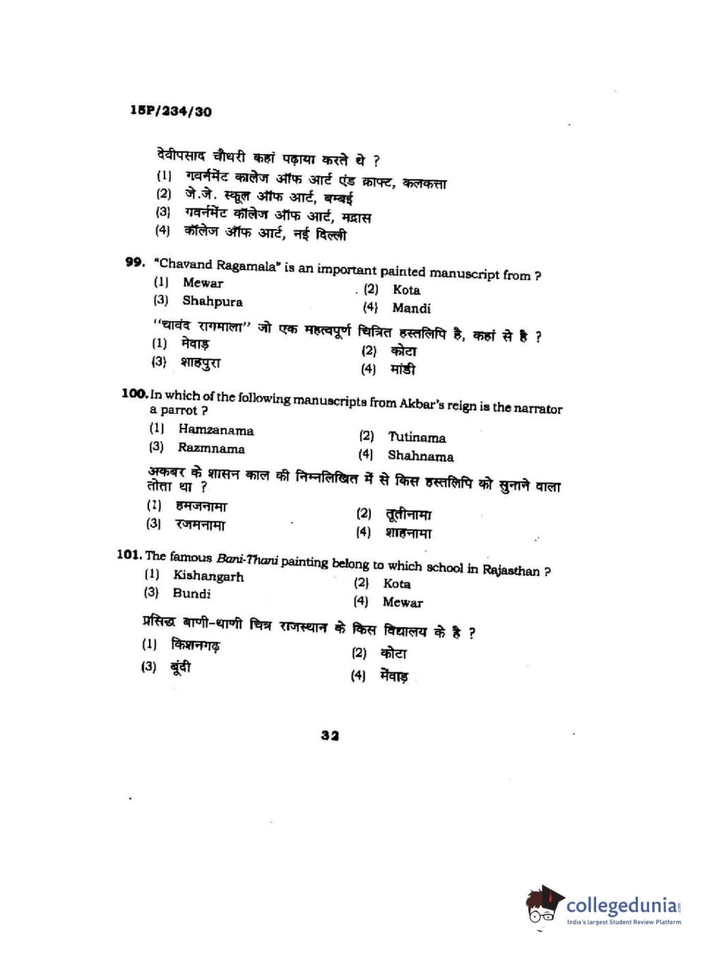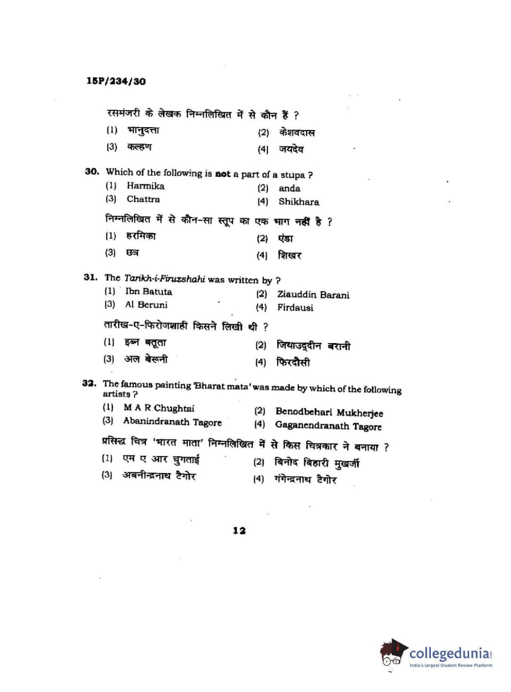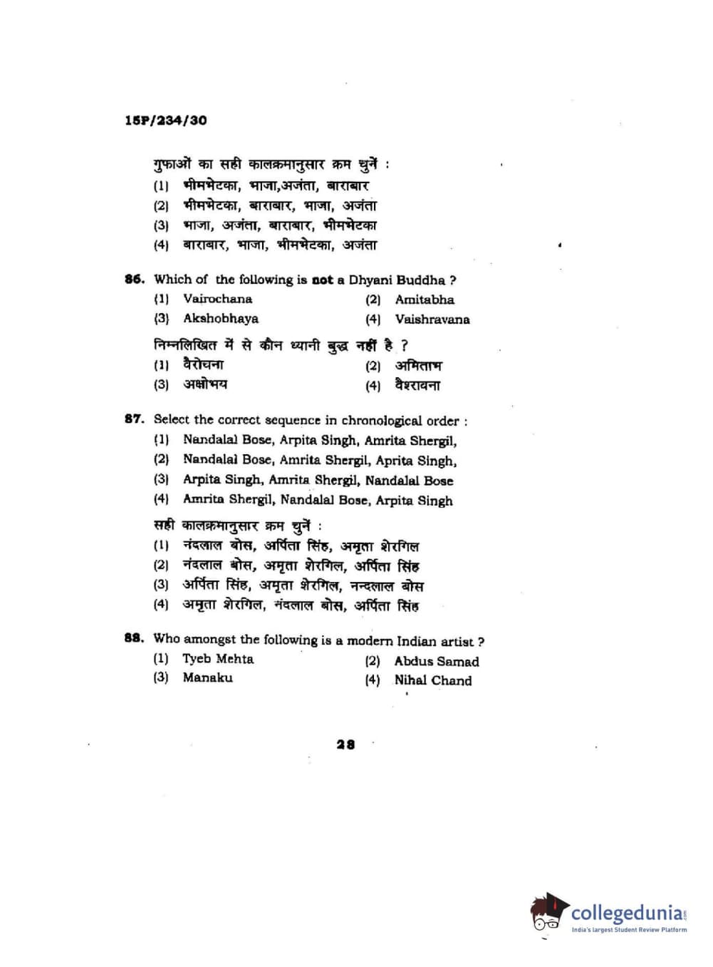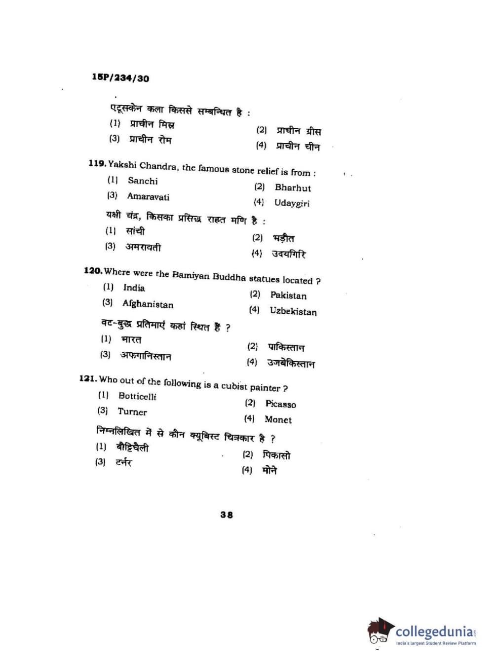 BHU PET 2015 M.A. History Of Arts Question Paper with Answer Key PDFs
