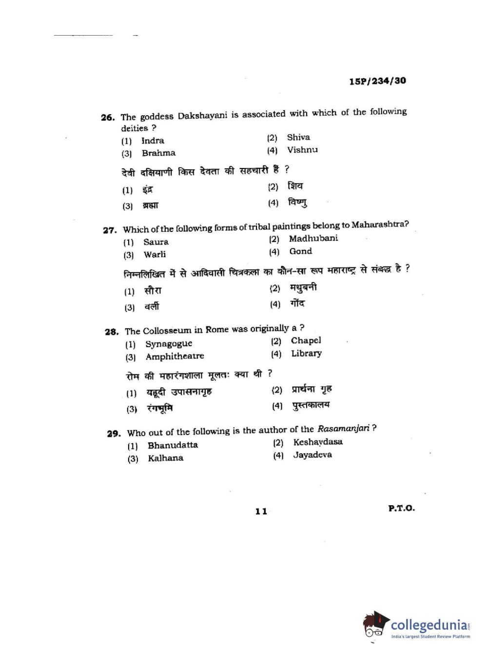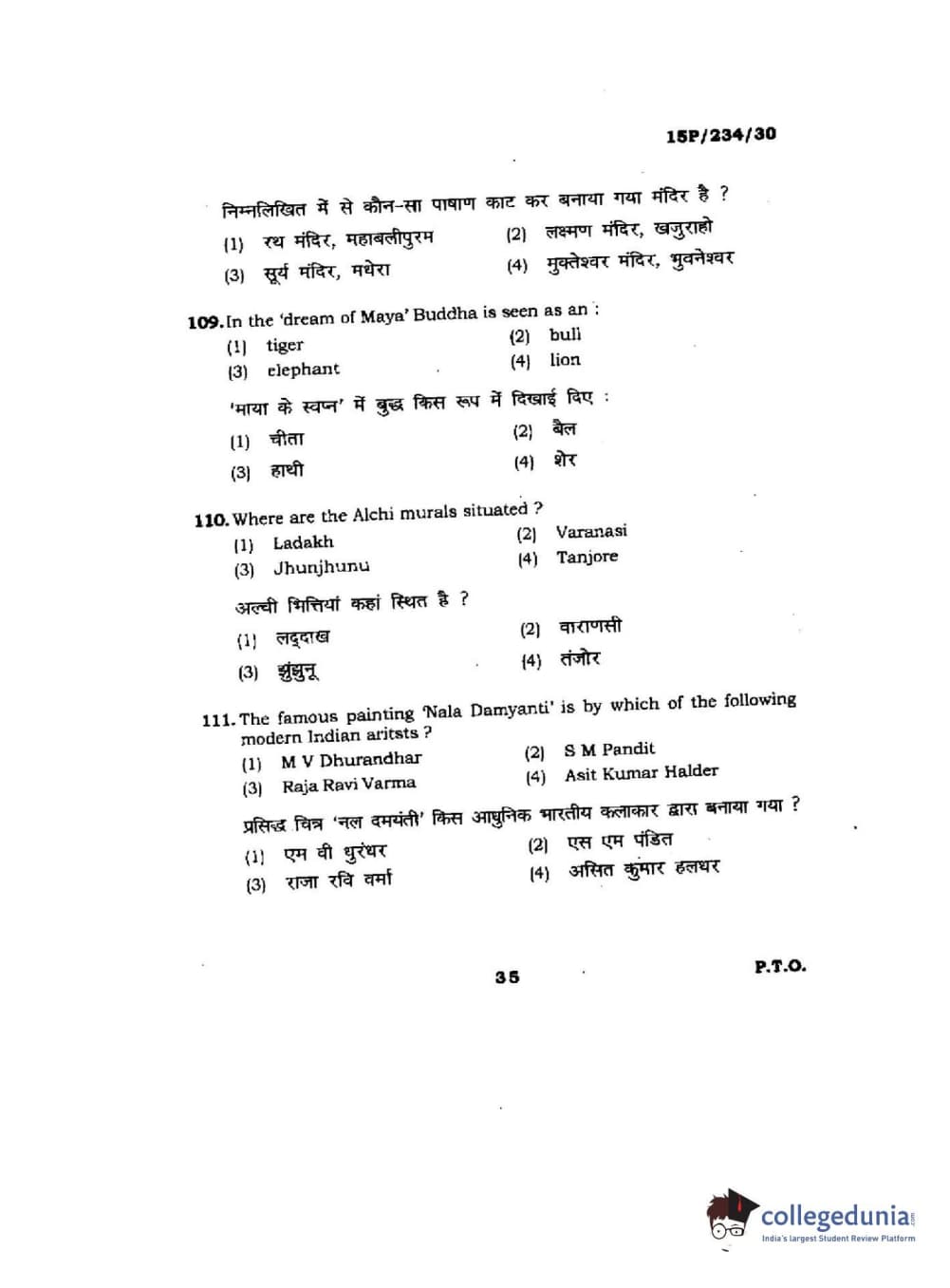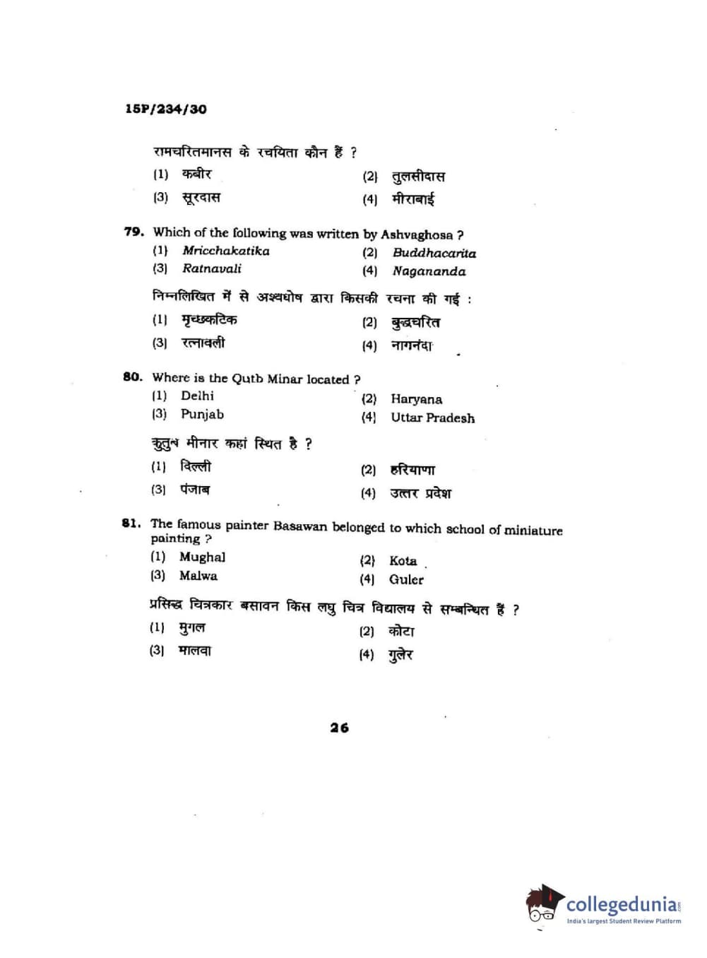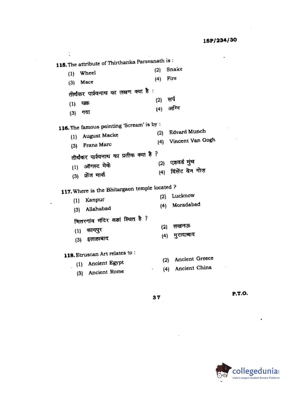 BHU PET 2015 M.A. History Of Arts Question Paper with Answer Key PDFs