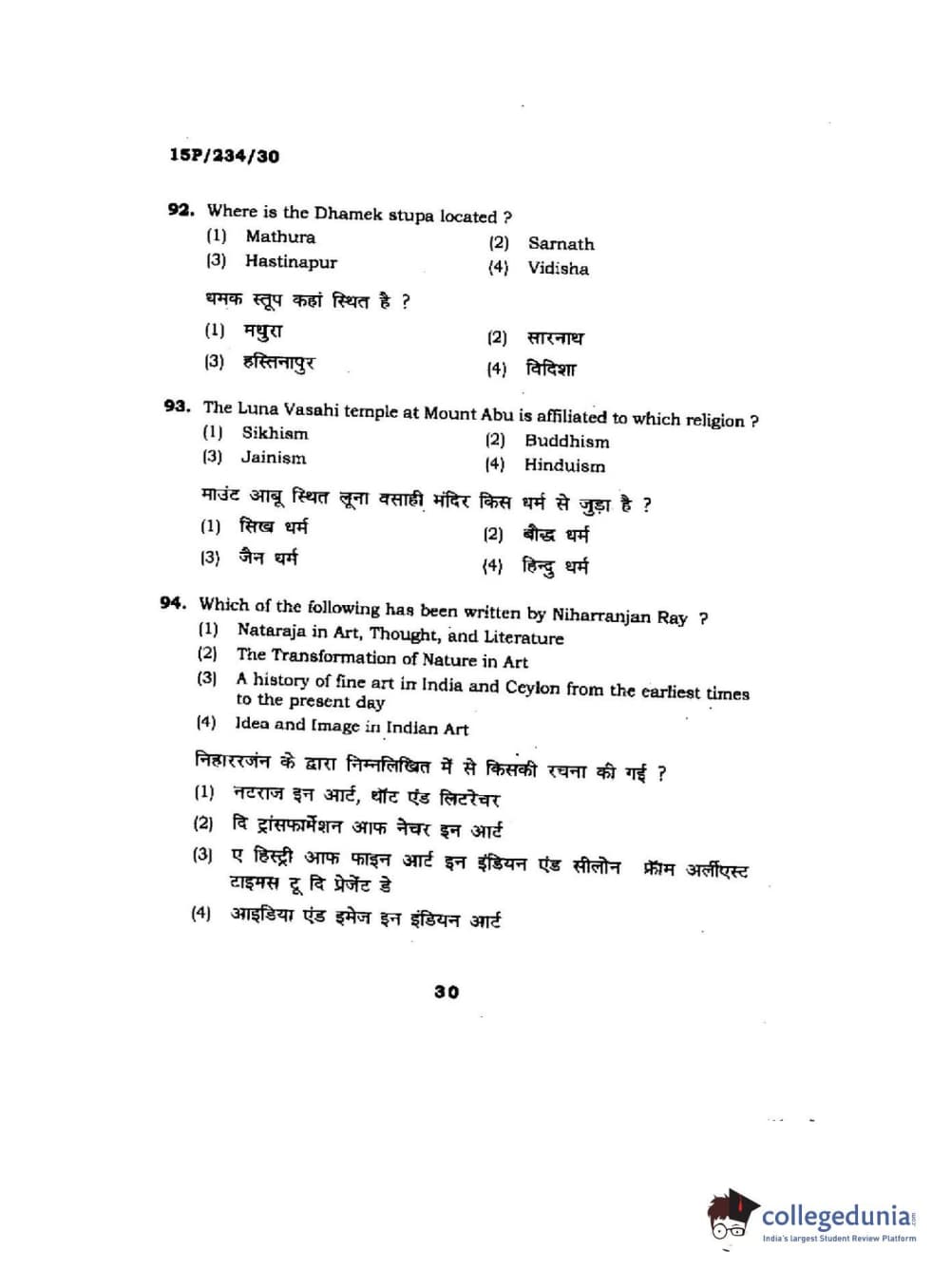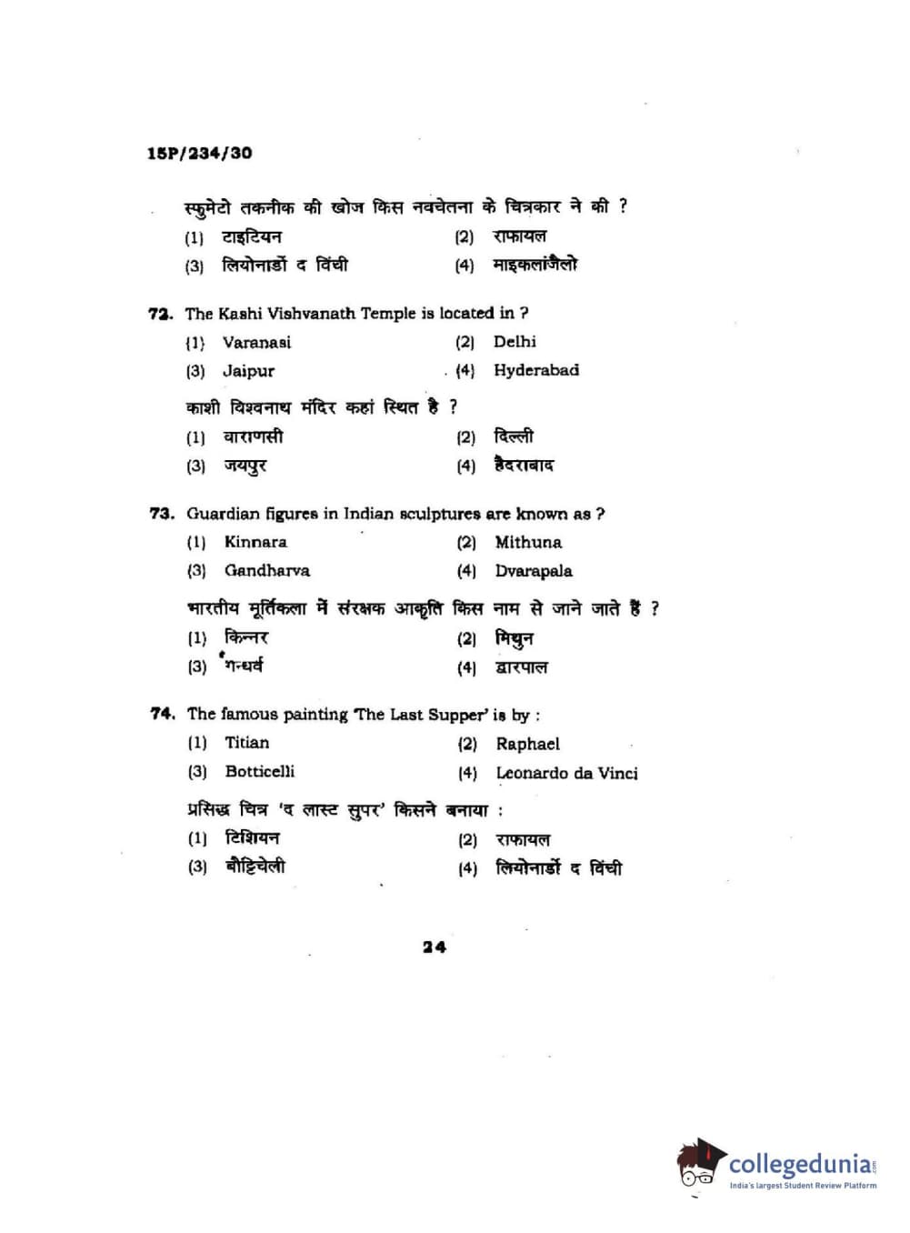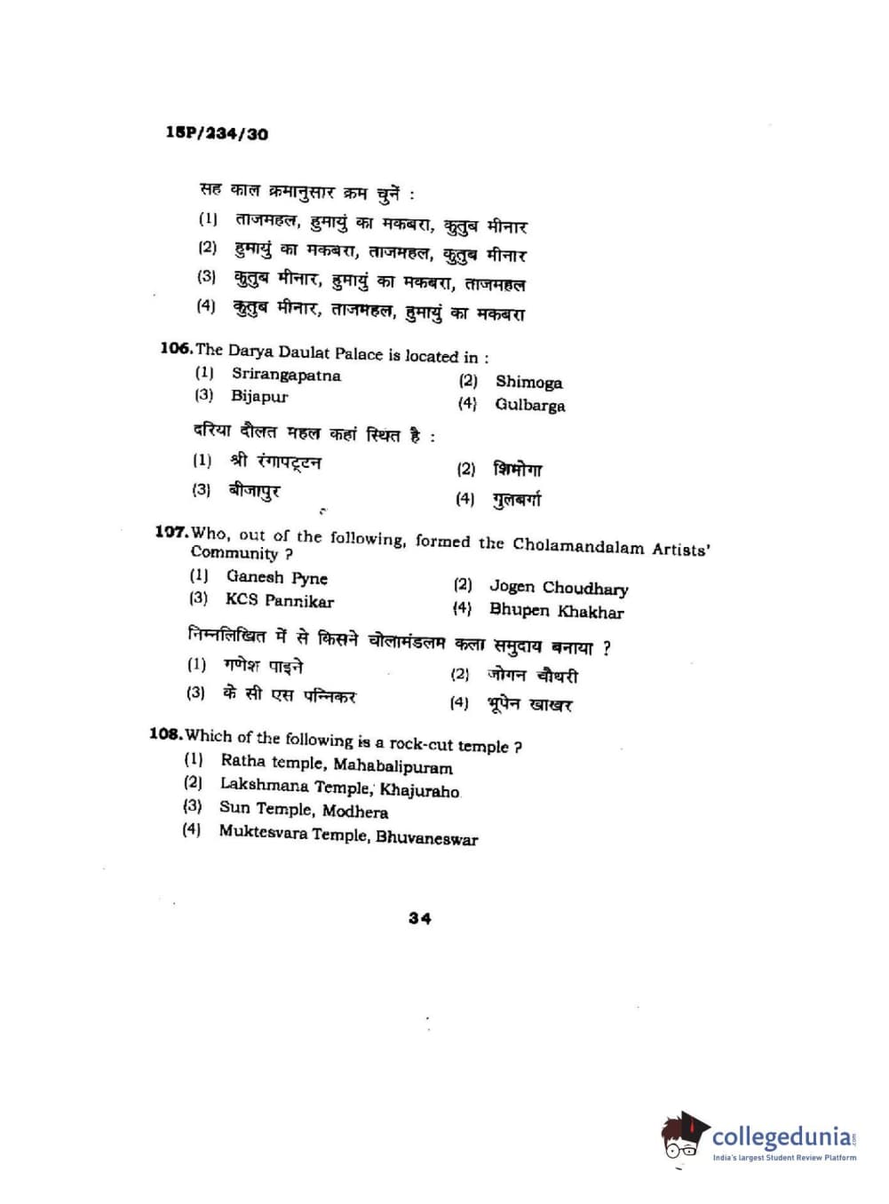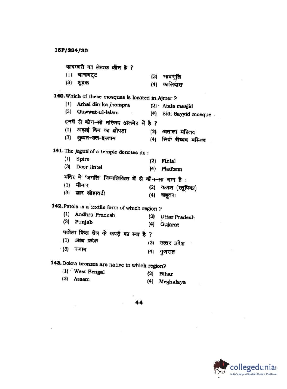 BHU PET 2015 M.A. History Of Arts Question Paper with Answer Key PDFs