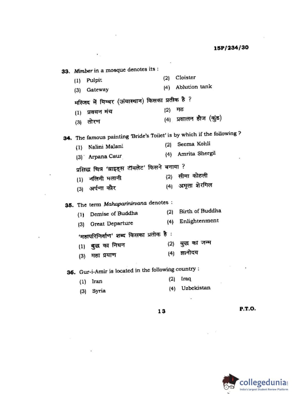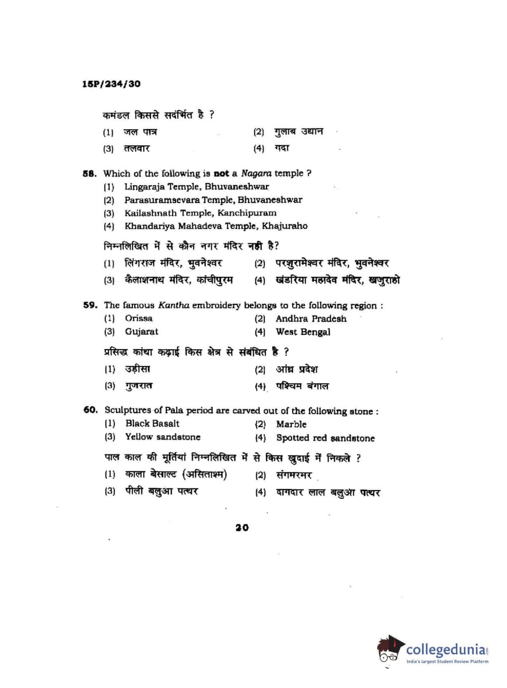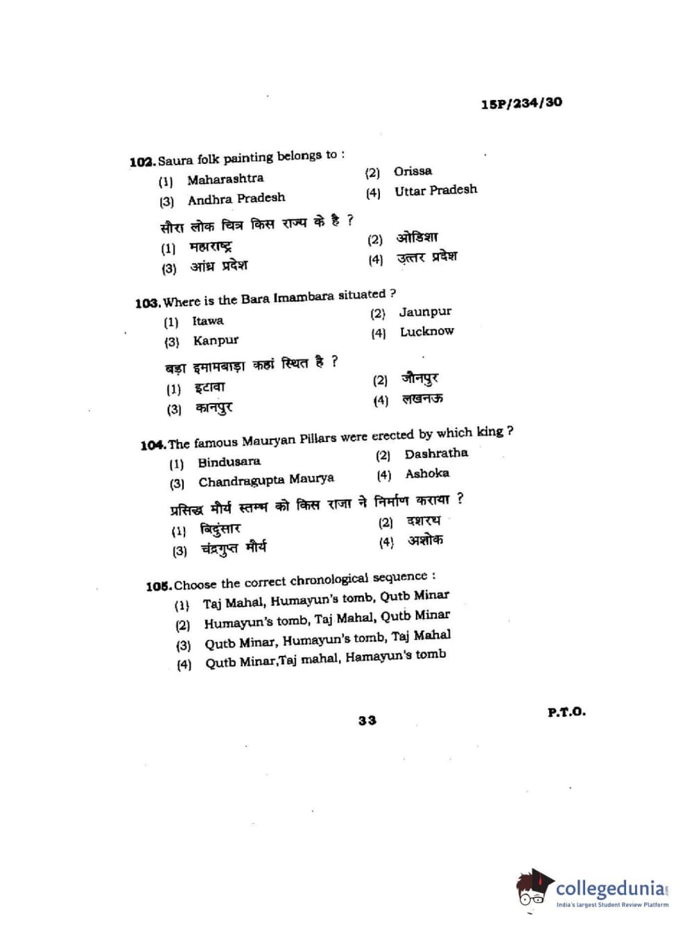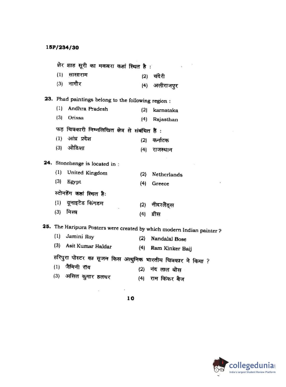 BHU PET 2015 M.A. History Of Arts Question Paper with Answer Key PDFs