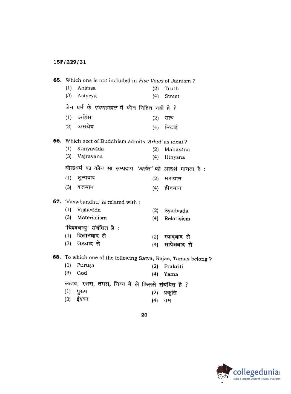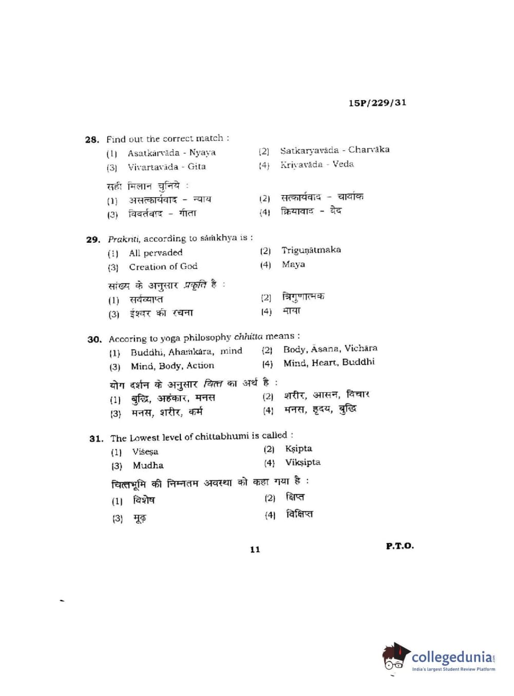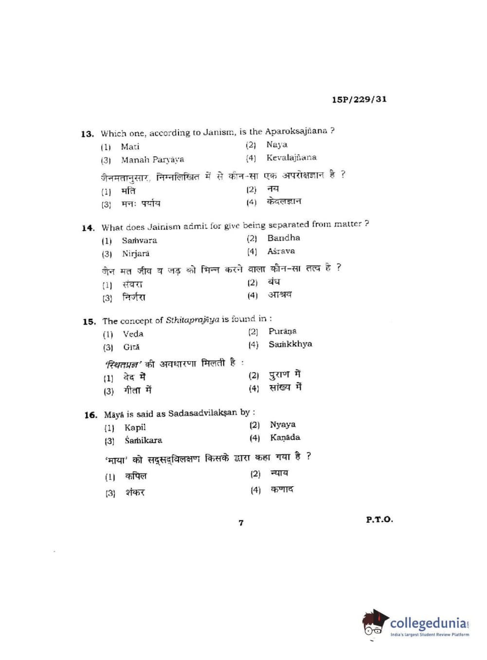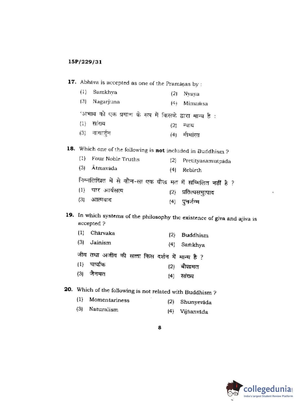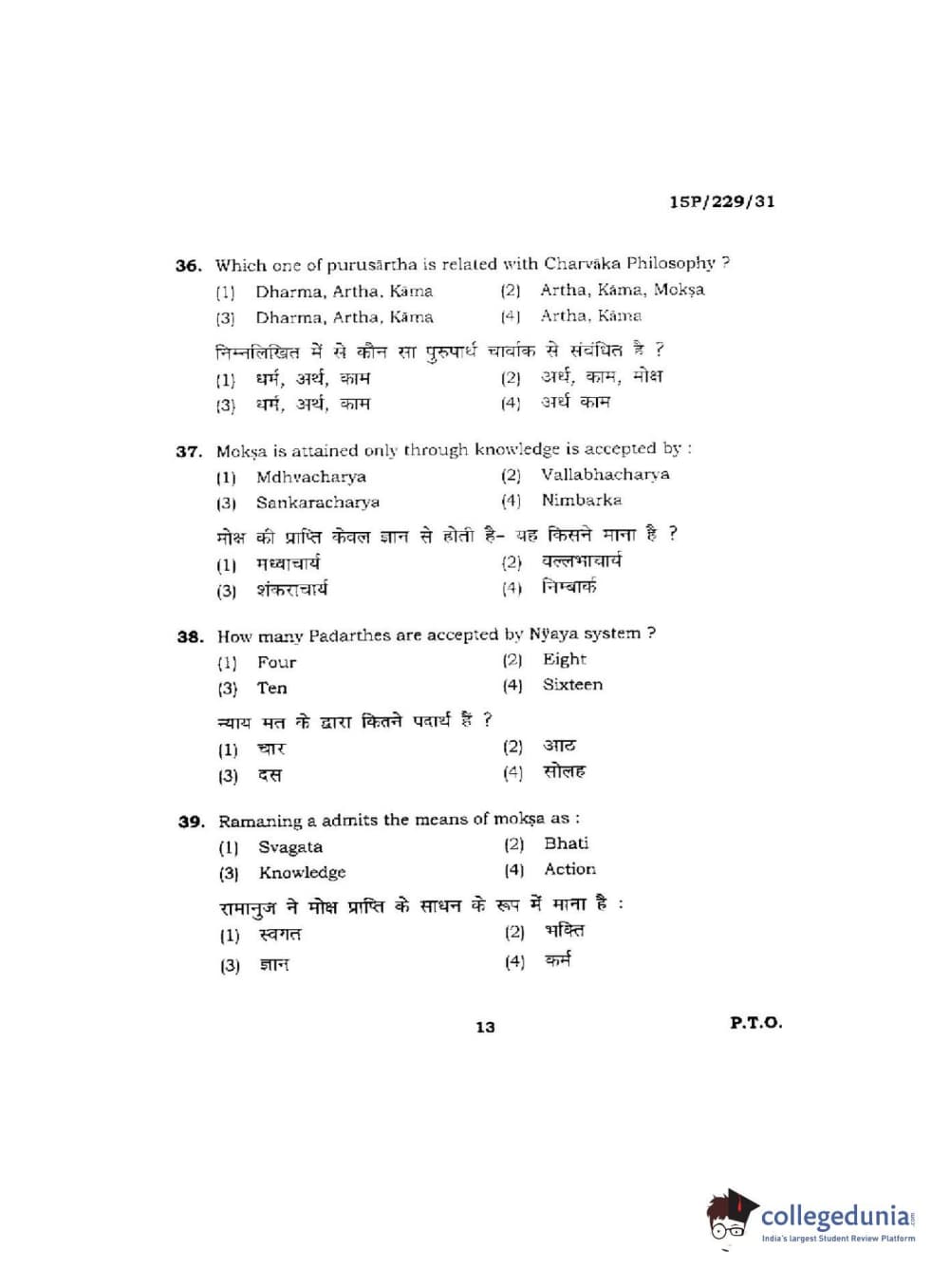 BHU PET 2015 M.A Indian Philosophy & Religion Question Paper with Answer Key PDFs