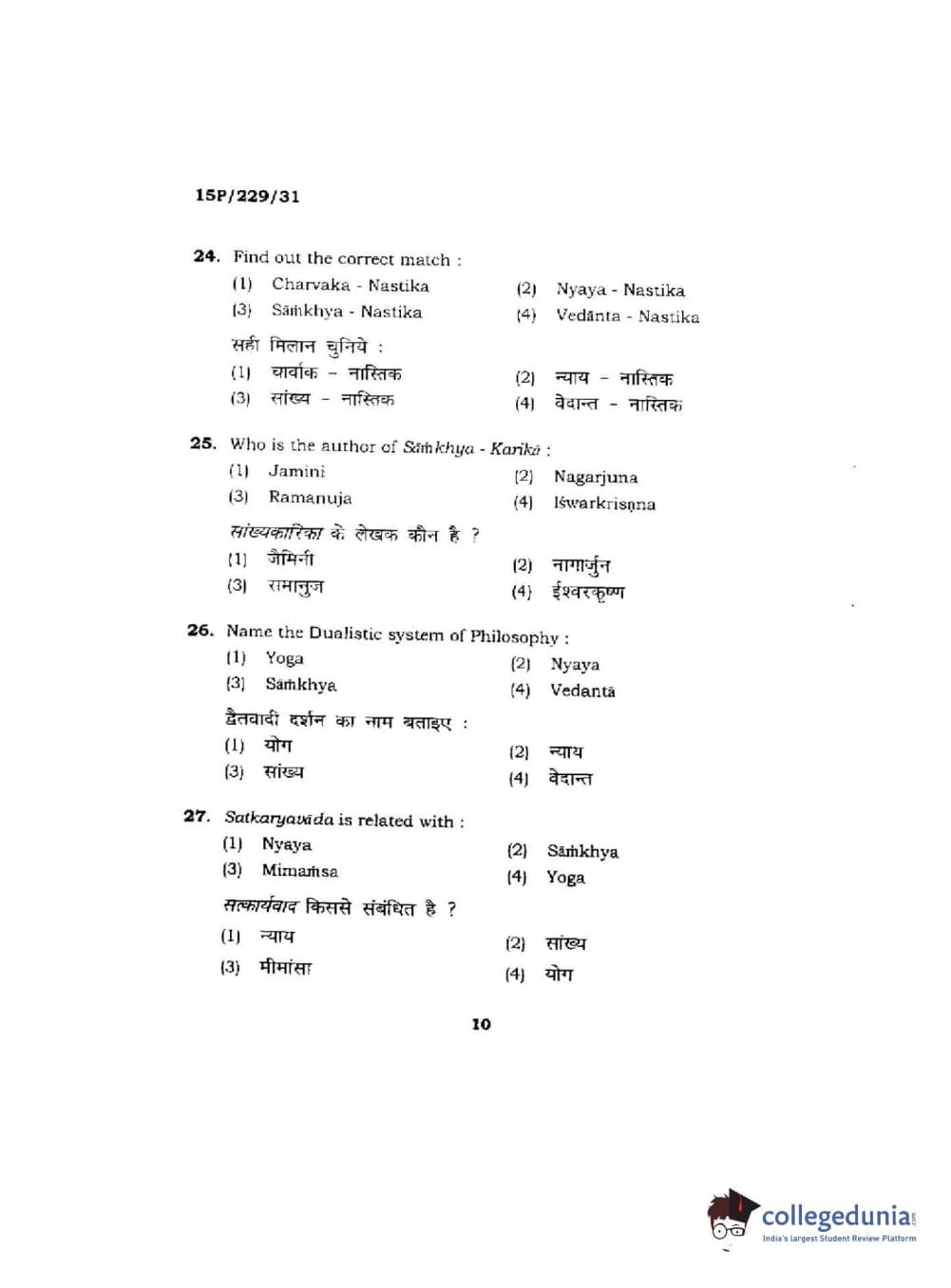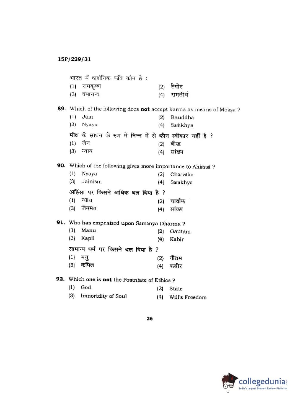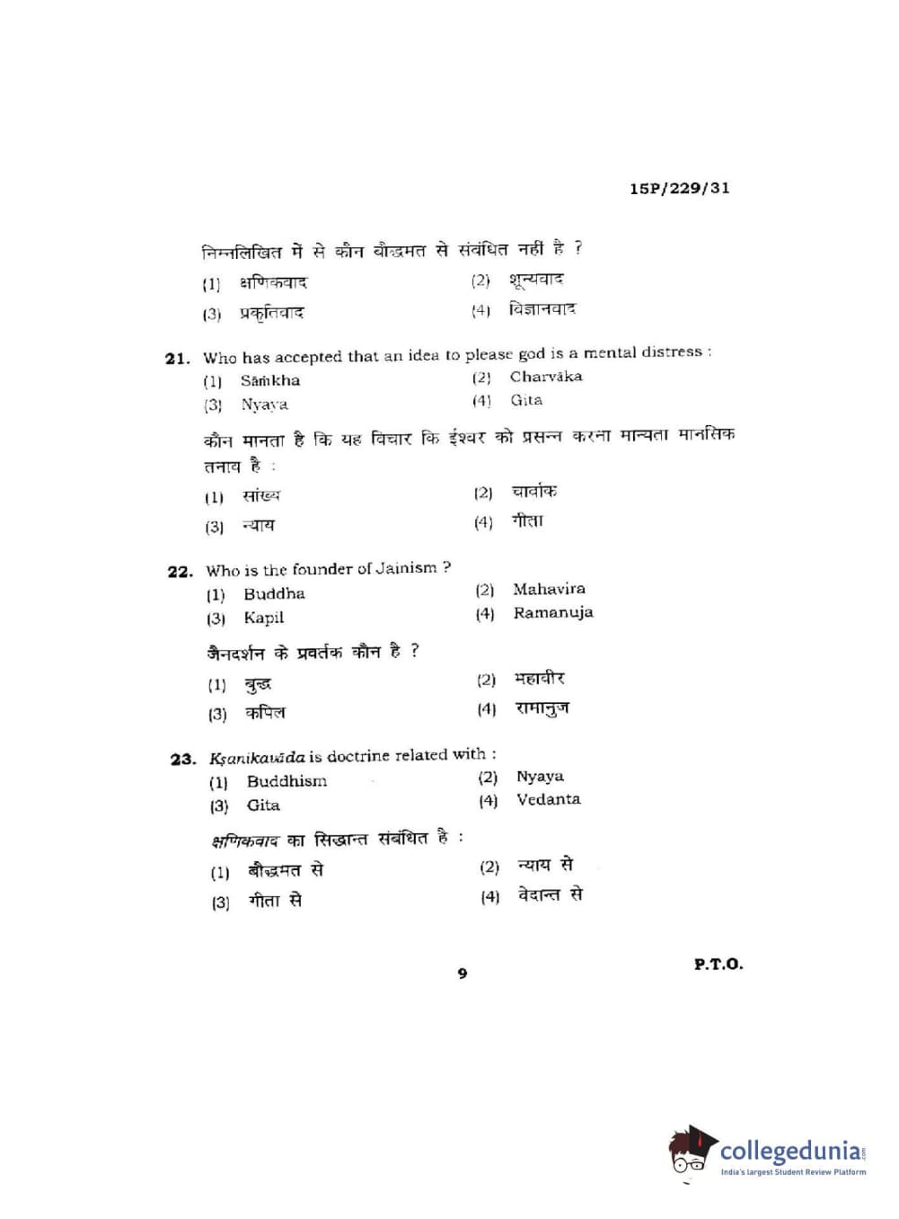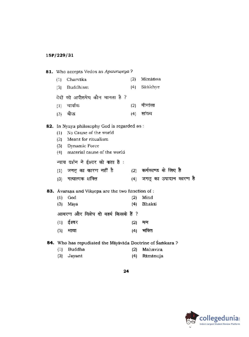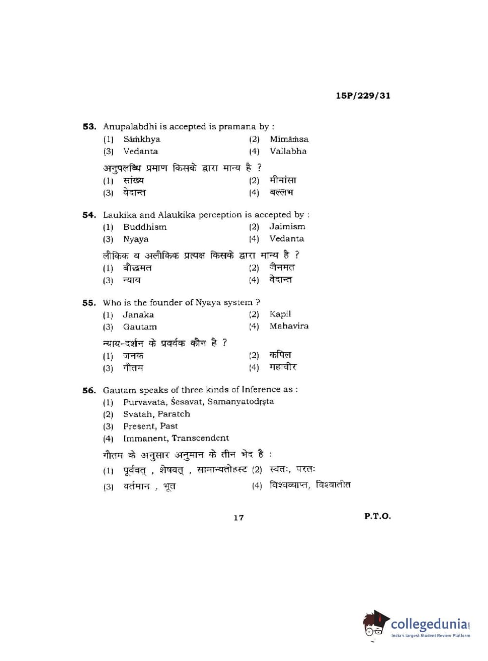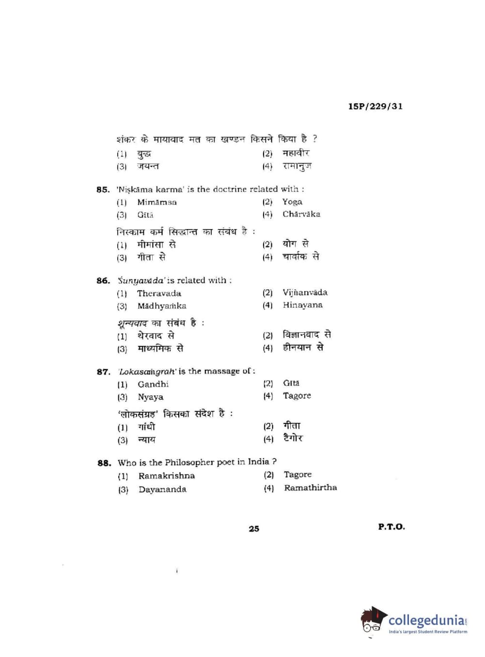 BHU PET 2015 M.A Indian Philosophy & Religion Question Paper with Answer Key PDFs