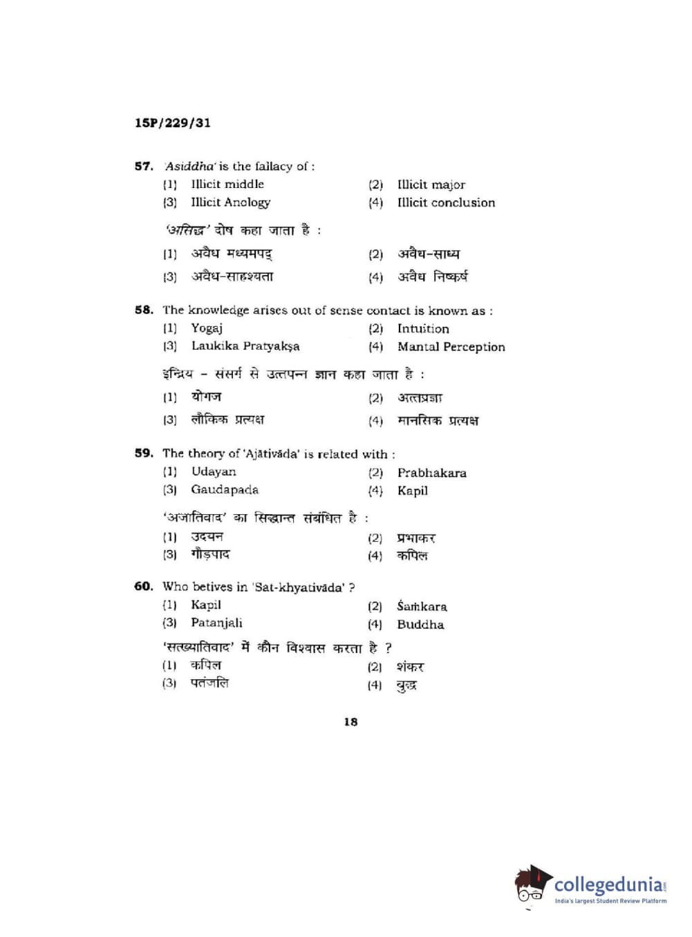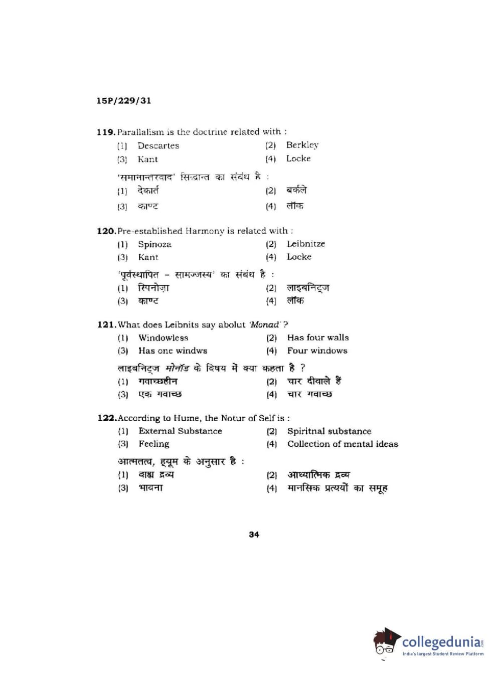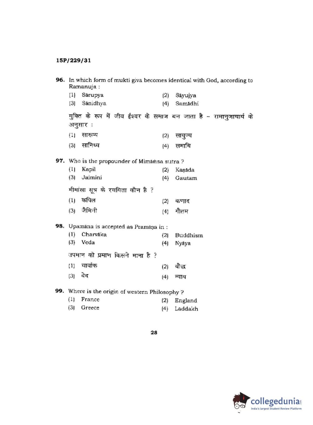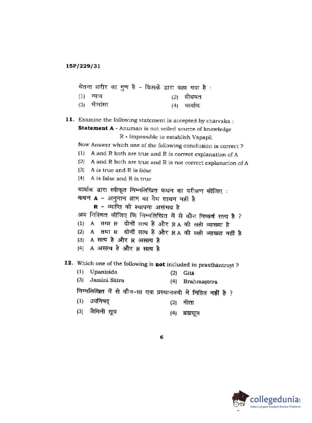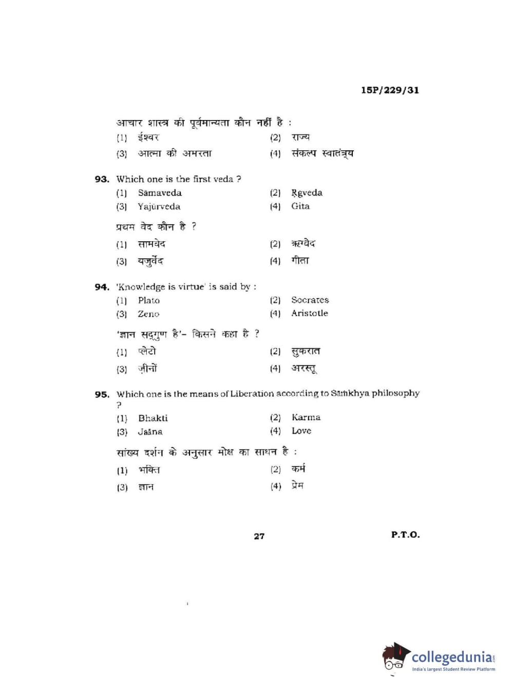 BHU PET 2015 M.A Indian Philosophy & Religion Question Paper with Answer Key PDFs