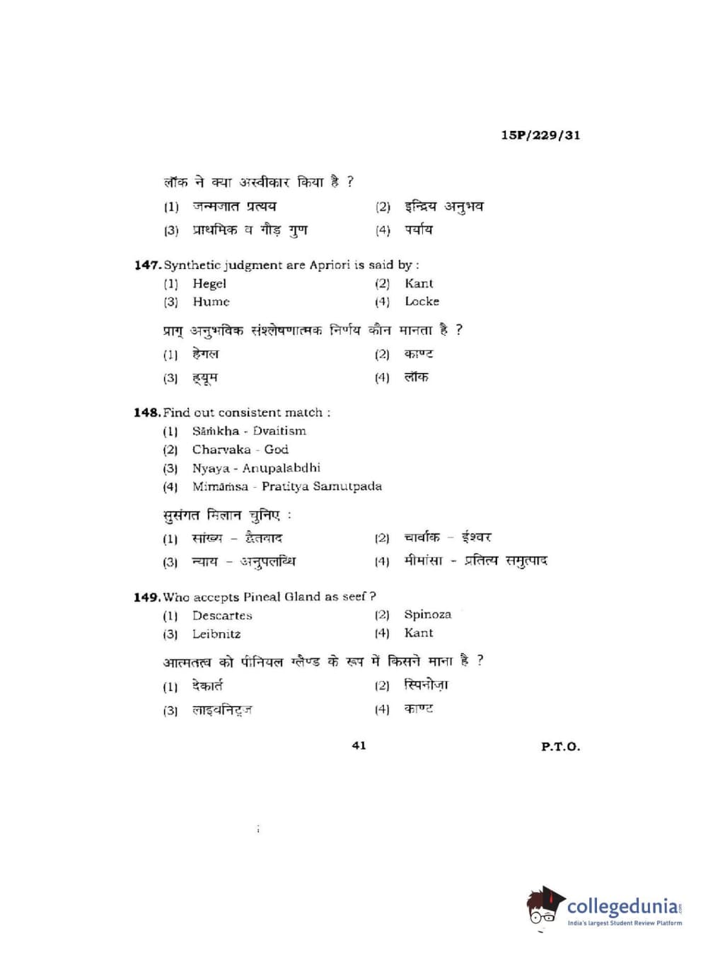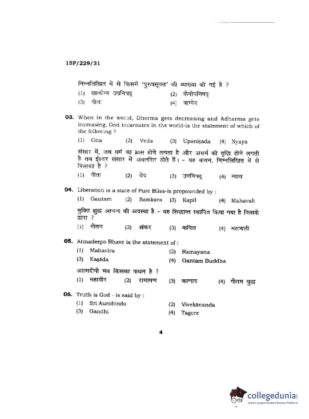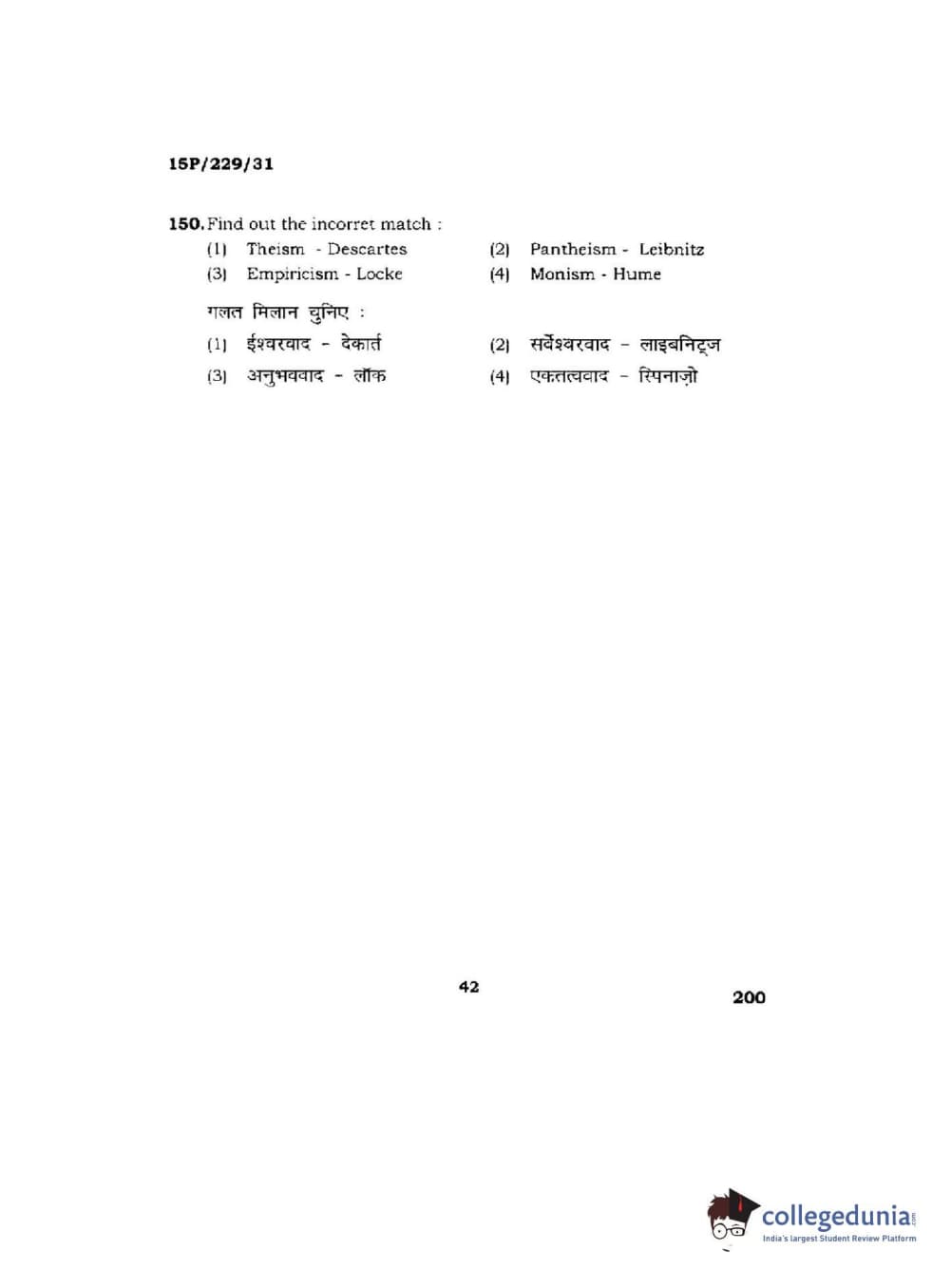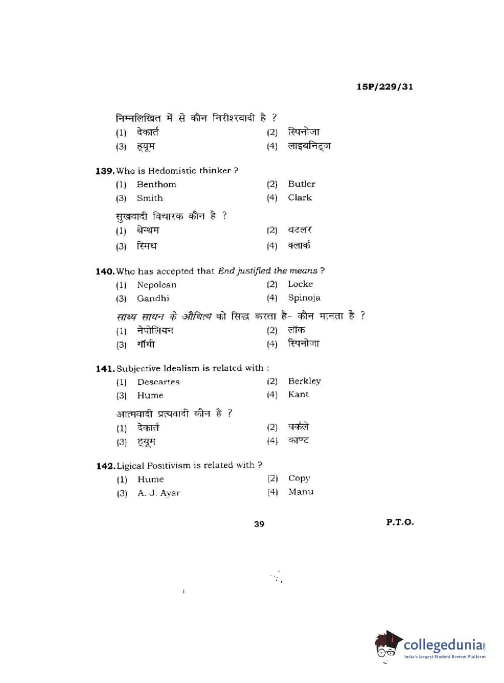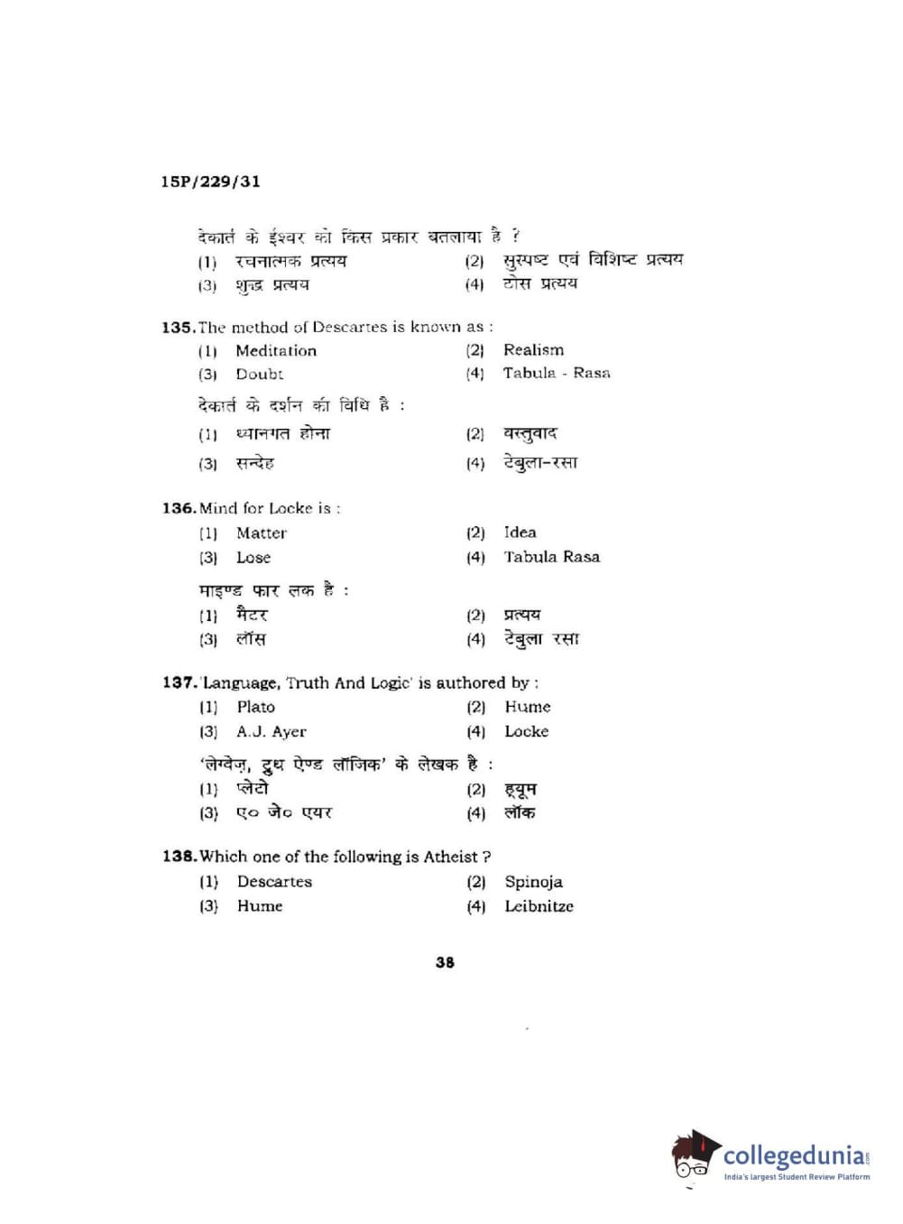 BHU PET 2015 M.A Indian Philosophy & Religion Question Paper with Answer Key PDFs