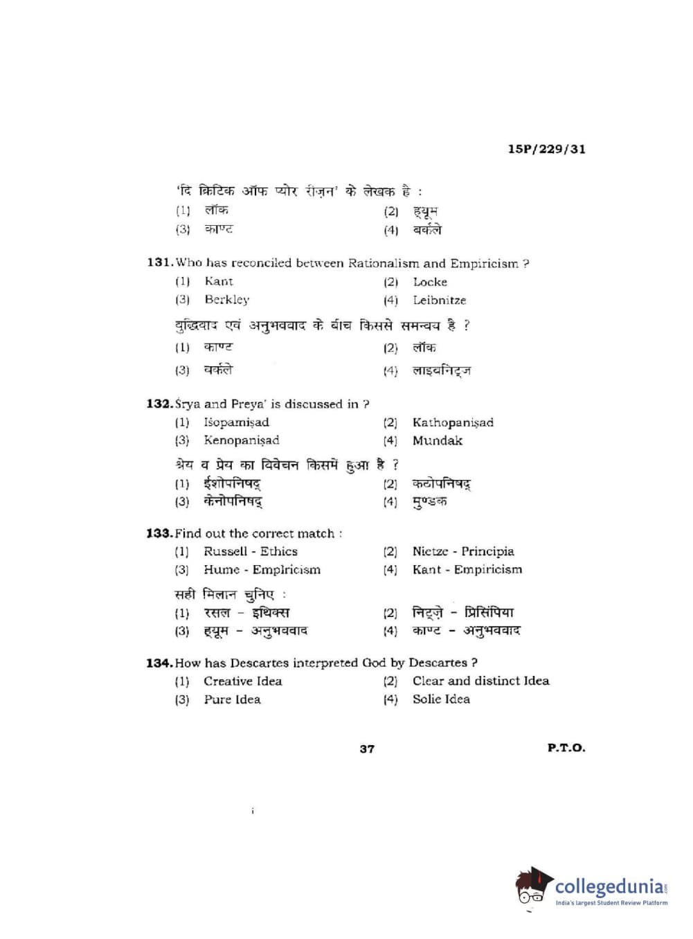 | BHU PET 2015 M.A Indian Philosophy & Religion Question Paper PDF | BHU PET 2015 M.A Indian Philosophy & Religion Answer Key PDF |