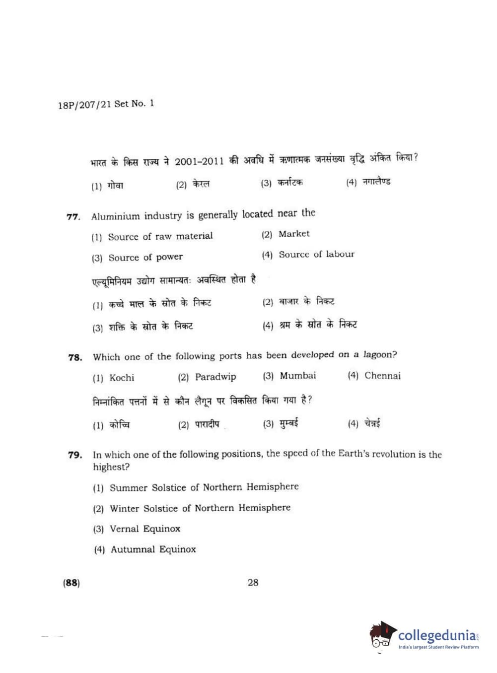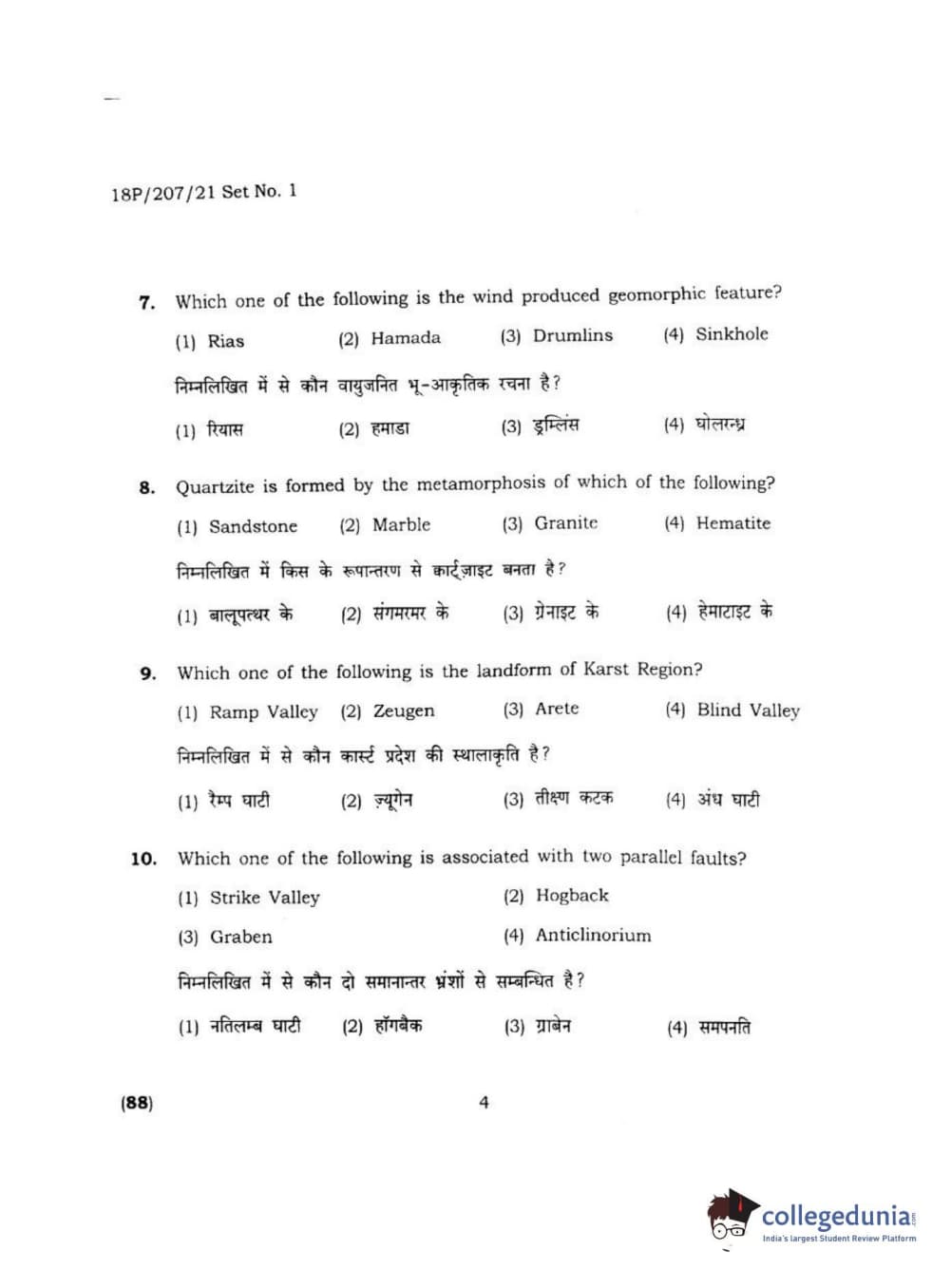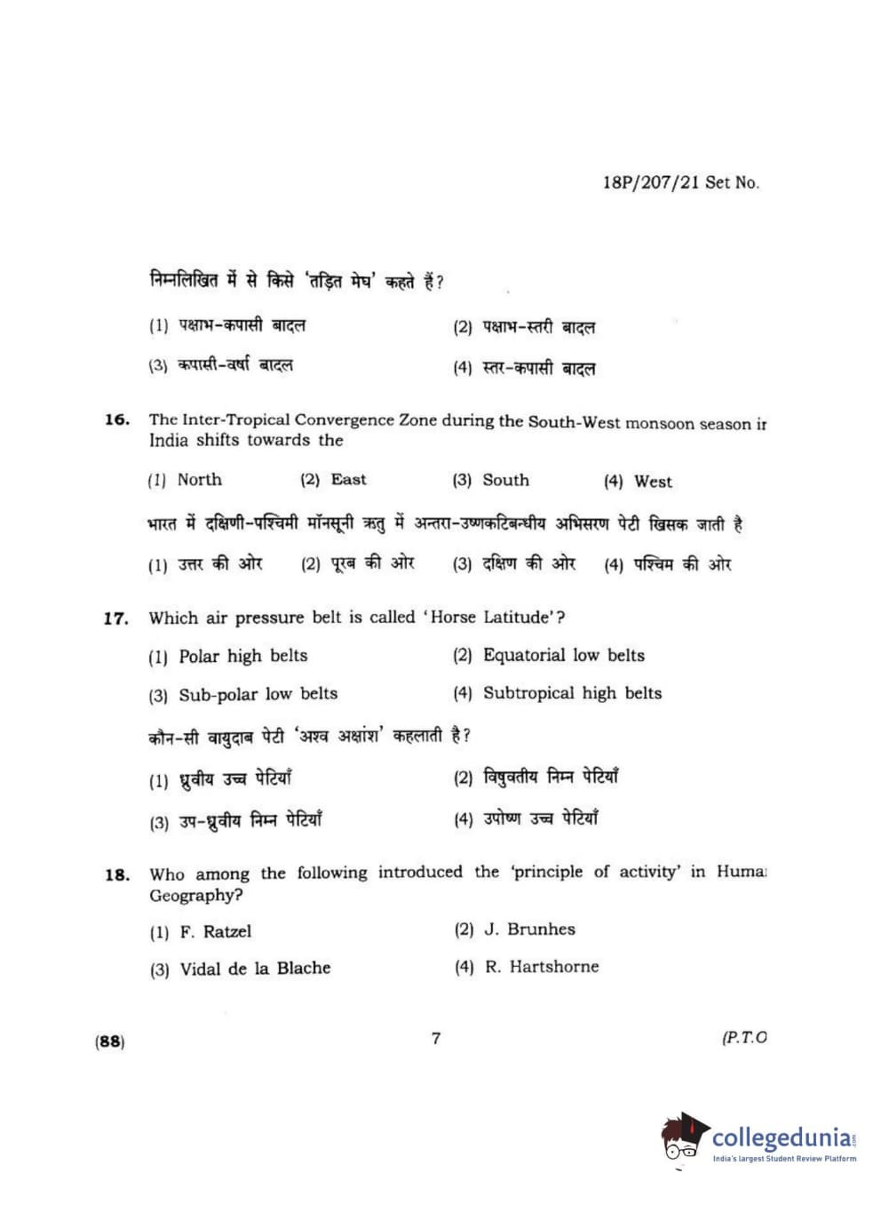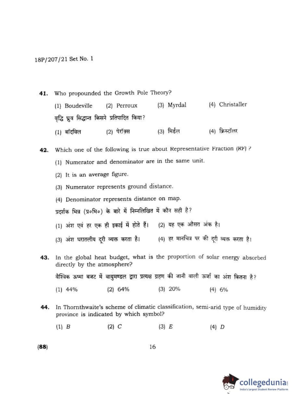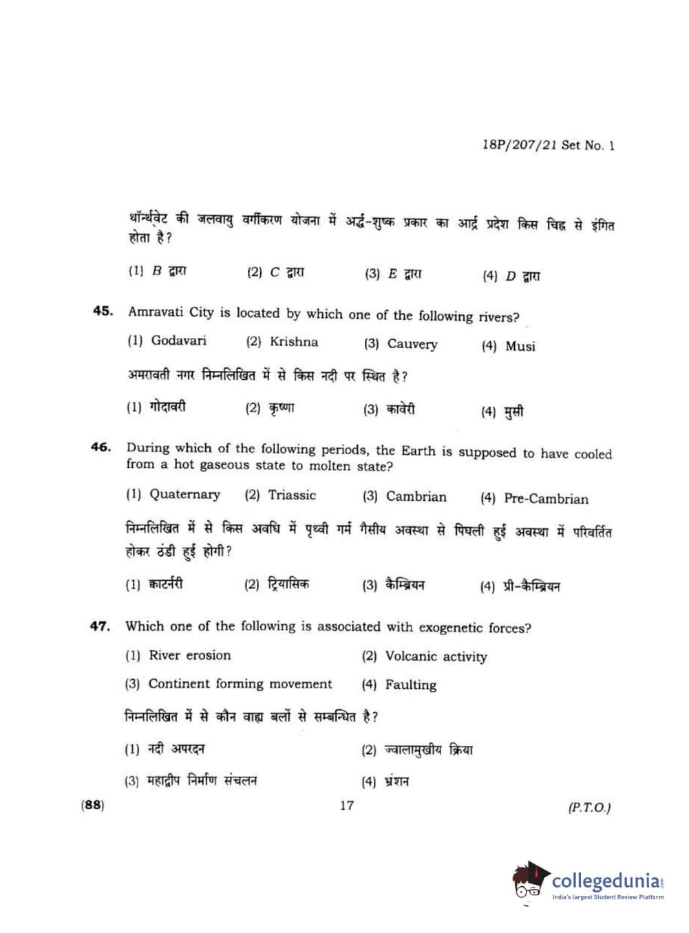 BHU PET 2015 M.A., M.Sc. Geography Question Paper with Answer Key PDFs