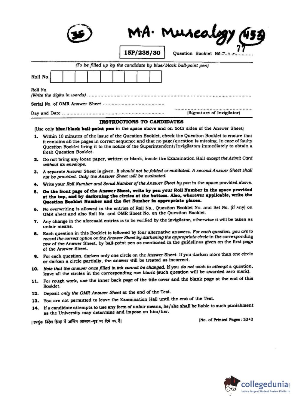 | BHU PET 2015 M.A. Muscology Question Paper PDF | BHU PET 2015 M.A. Muscology Answer Key PDF |